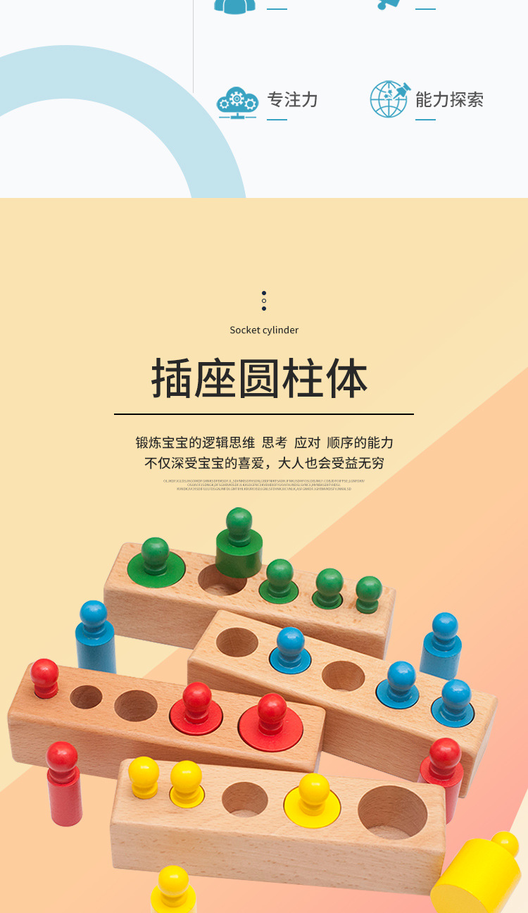 Ayudas didácticas Montessori color cognitivo socket cilindro niños educación temprana ayudas educativas Montessori juguetes de madera