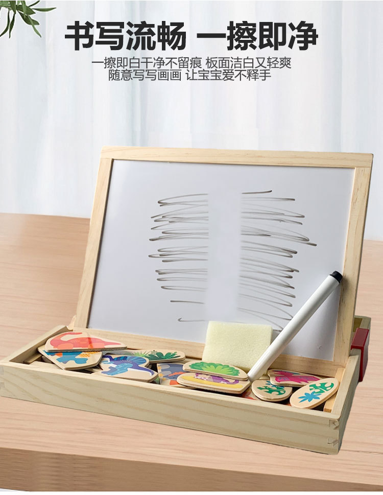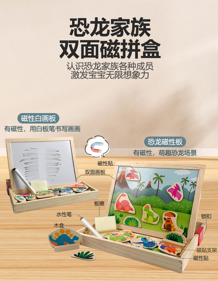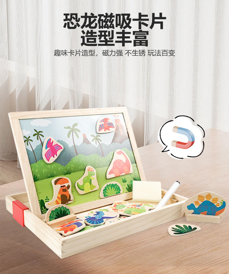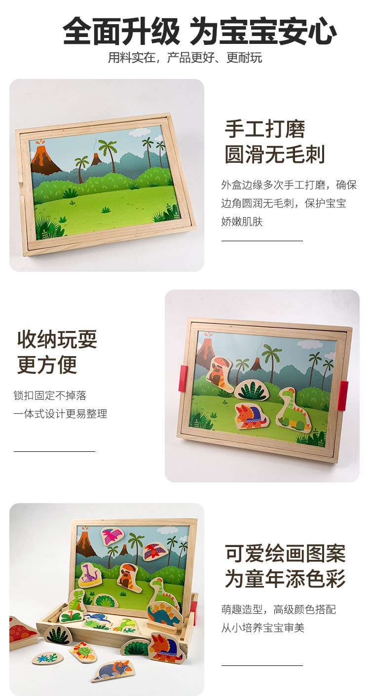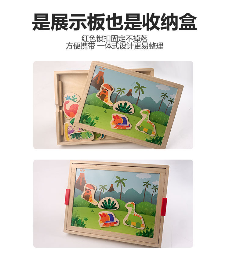 Dinosaurio magnético niño bebé rompecabezas de juguete de madera caja de almacenamiento de uno o dos años y medio de edad juguete niño rompecabezas grande