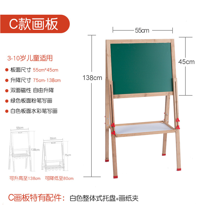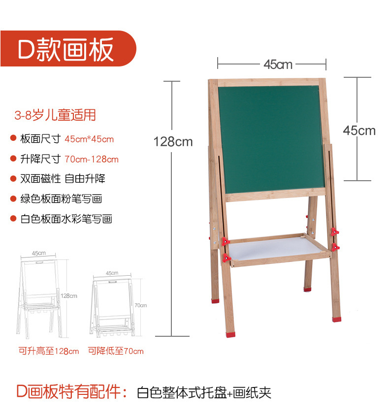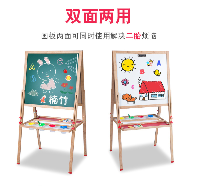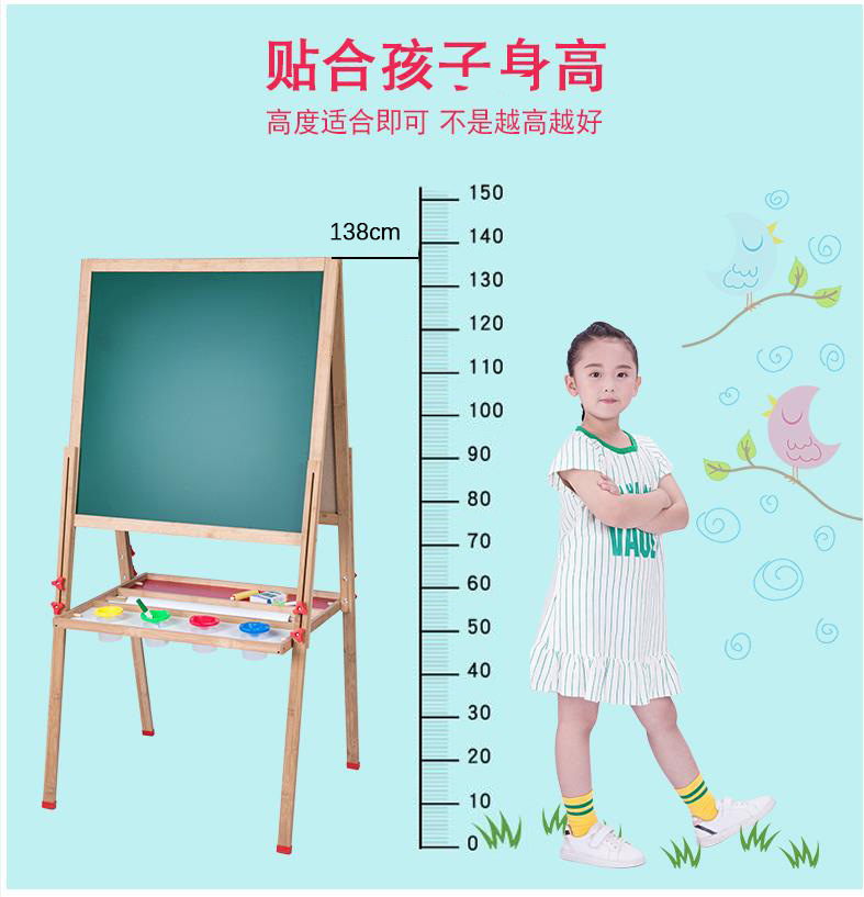 Pizarra pequeña Tablero de escritura de educación temprana para niños Tablero de dibujo de tiza para estudiantes de primaria Soporte de madera maciza roble caballete de doble cara