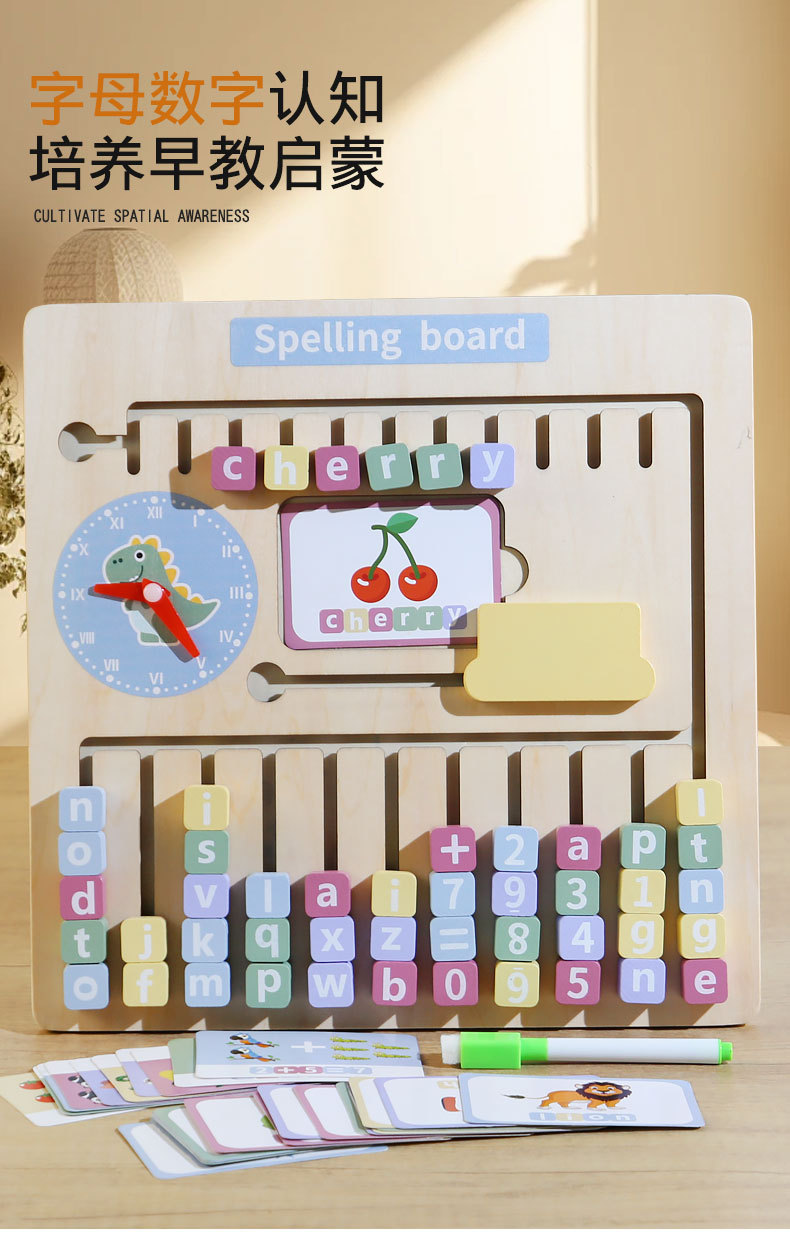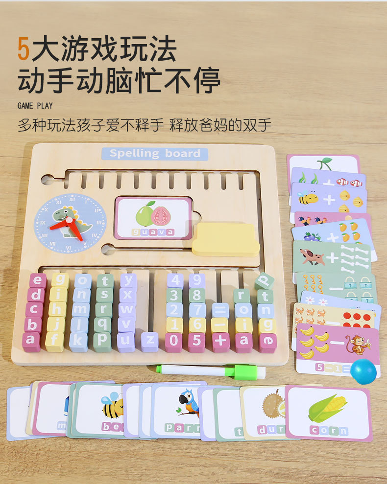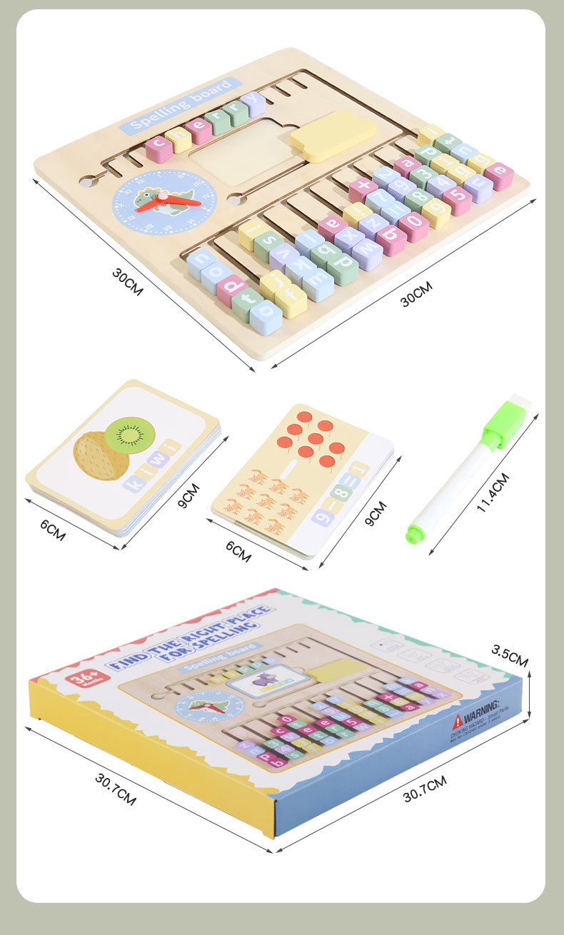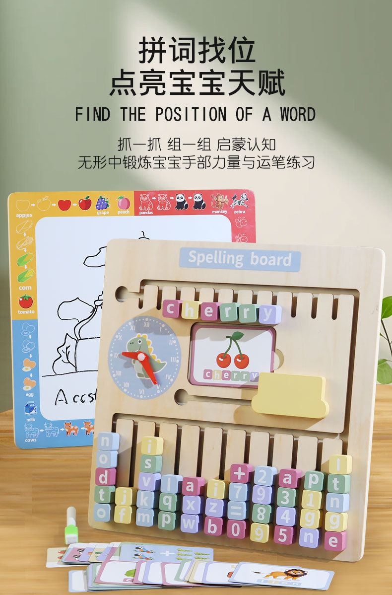 Nuevos juguetes de ortografía de madera para encontrar posiciones, bloques de construcción alfanuméricos con tarjetas ricas para ayudar a los niños a aprender