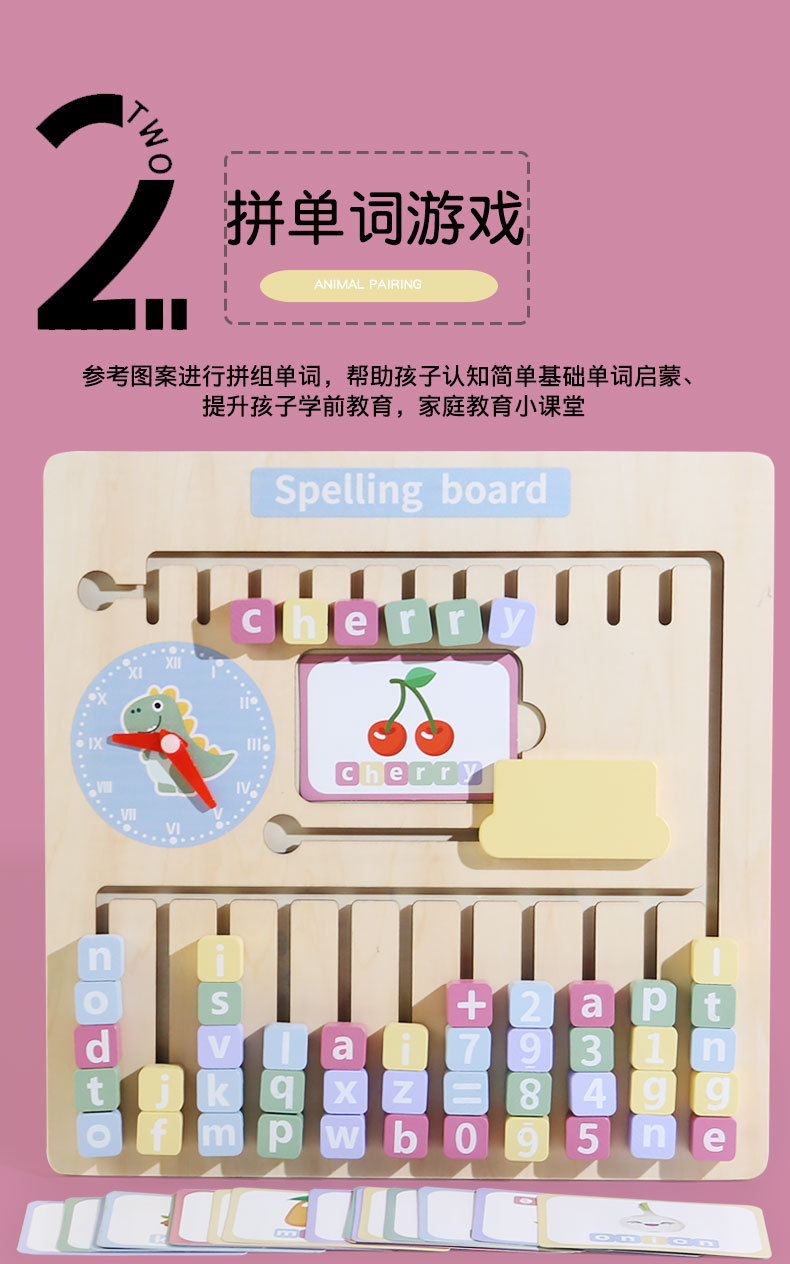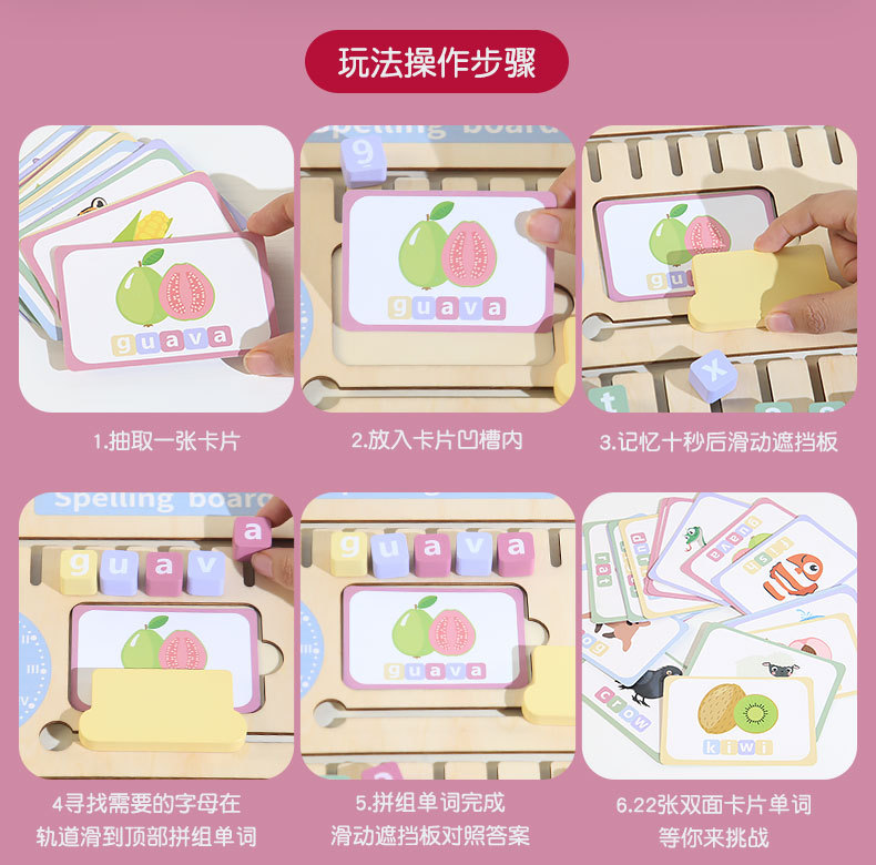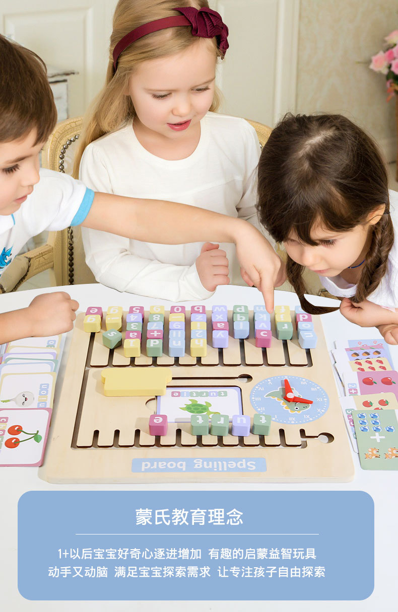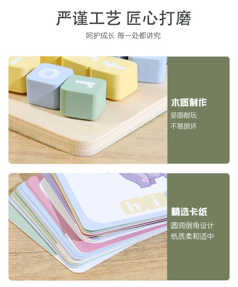Nuevos juguetes de ortografía de madera para encontrar posiciones, bloques de construcción alfanuméricos con tarjetas ricas para ayudar a los niños a aprender