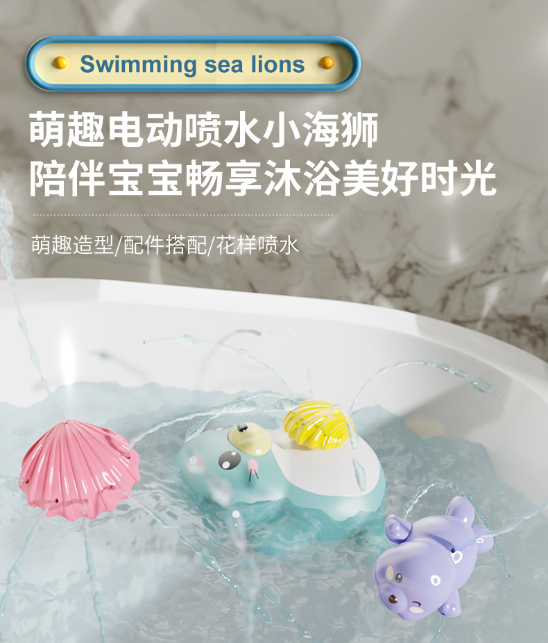 Spray eléctrico para niños transfronterizos, ducha de león marino giratoria, juguete de agua para bebés, baño de bebés, juguete de baño de agua