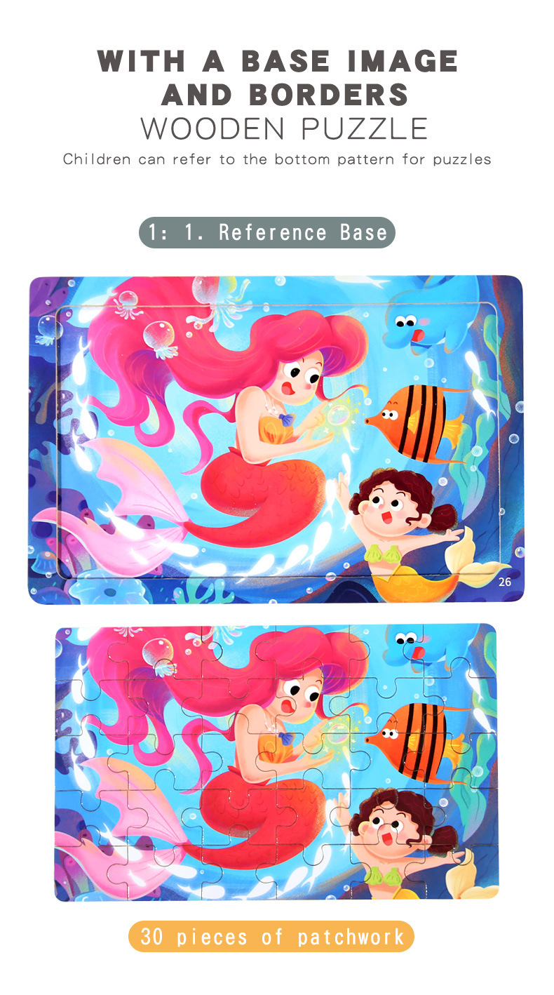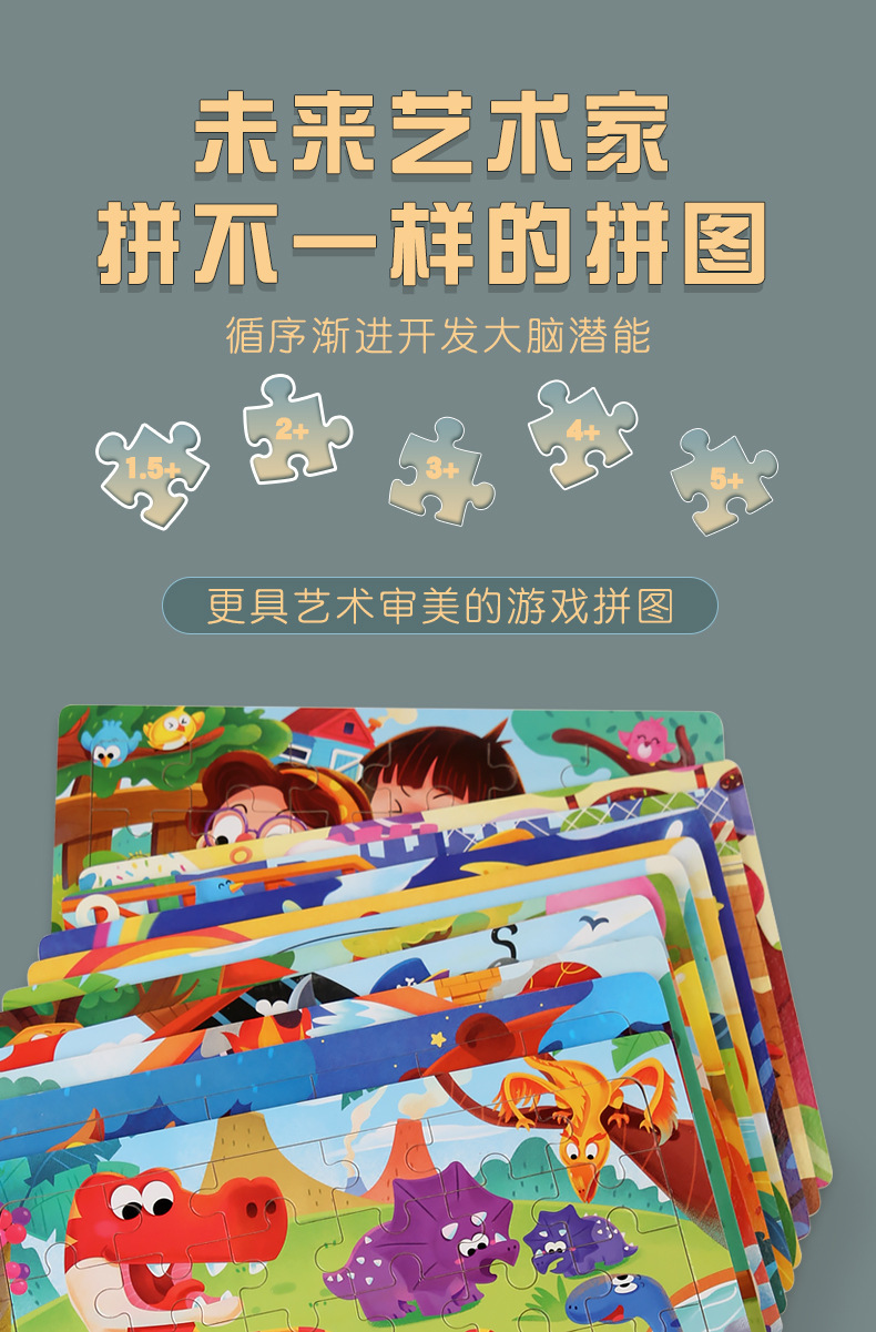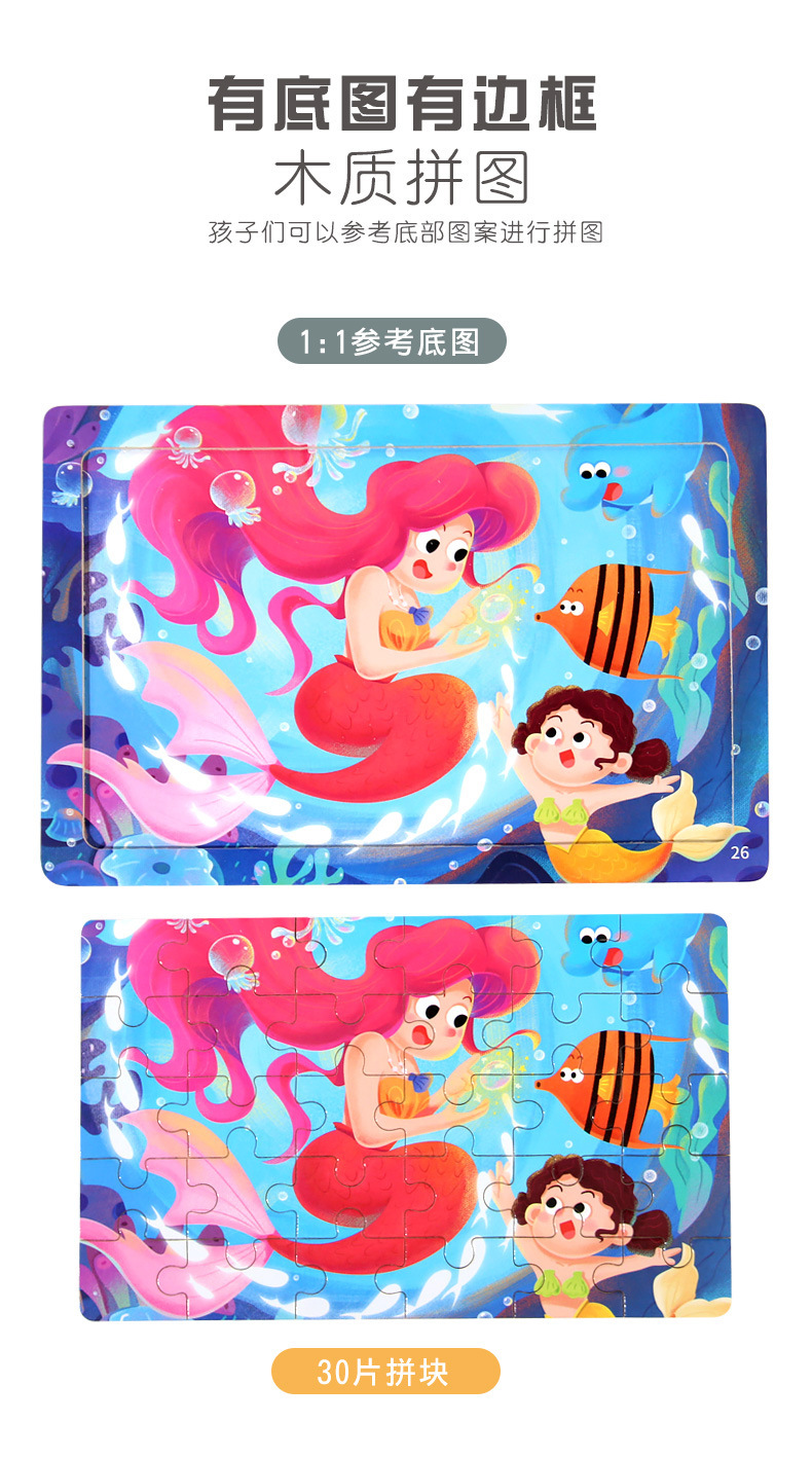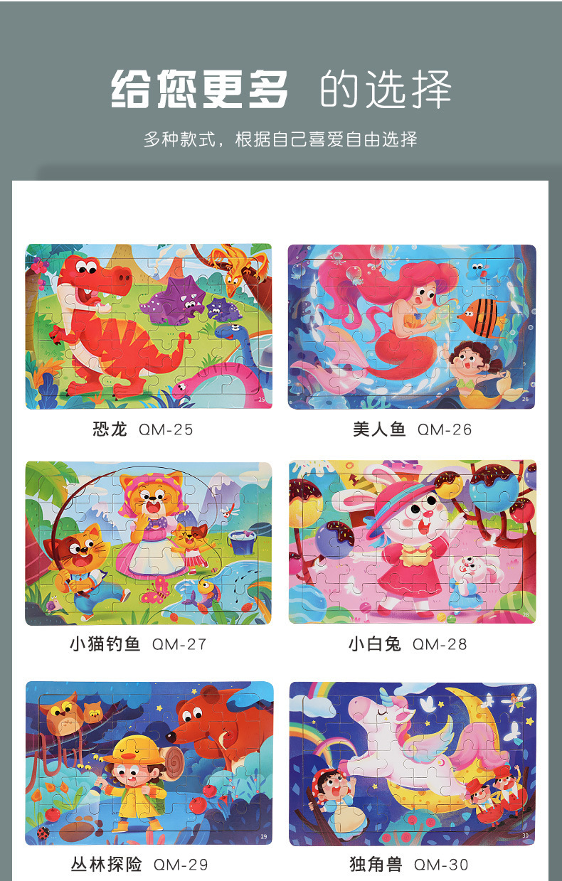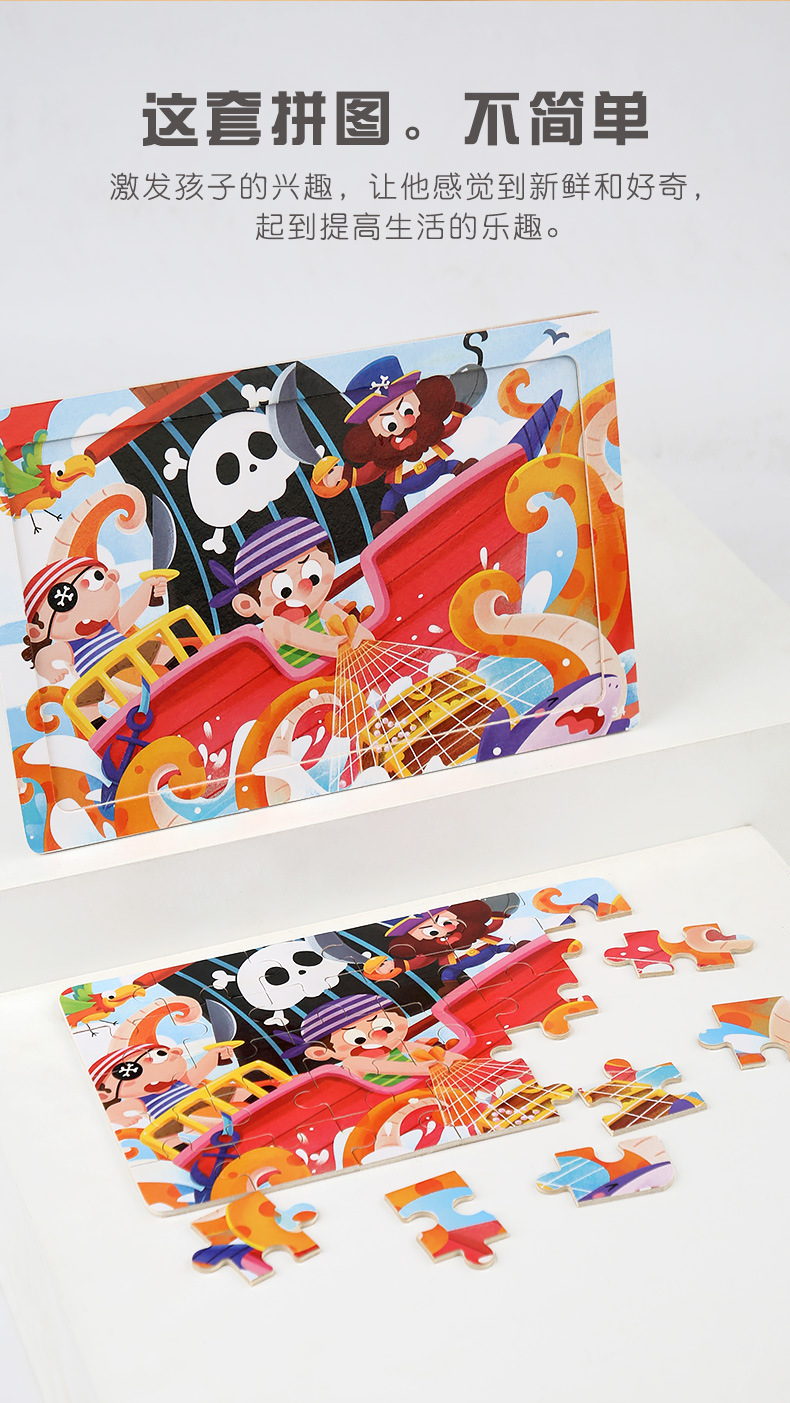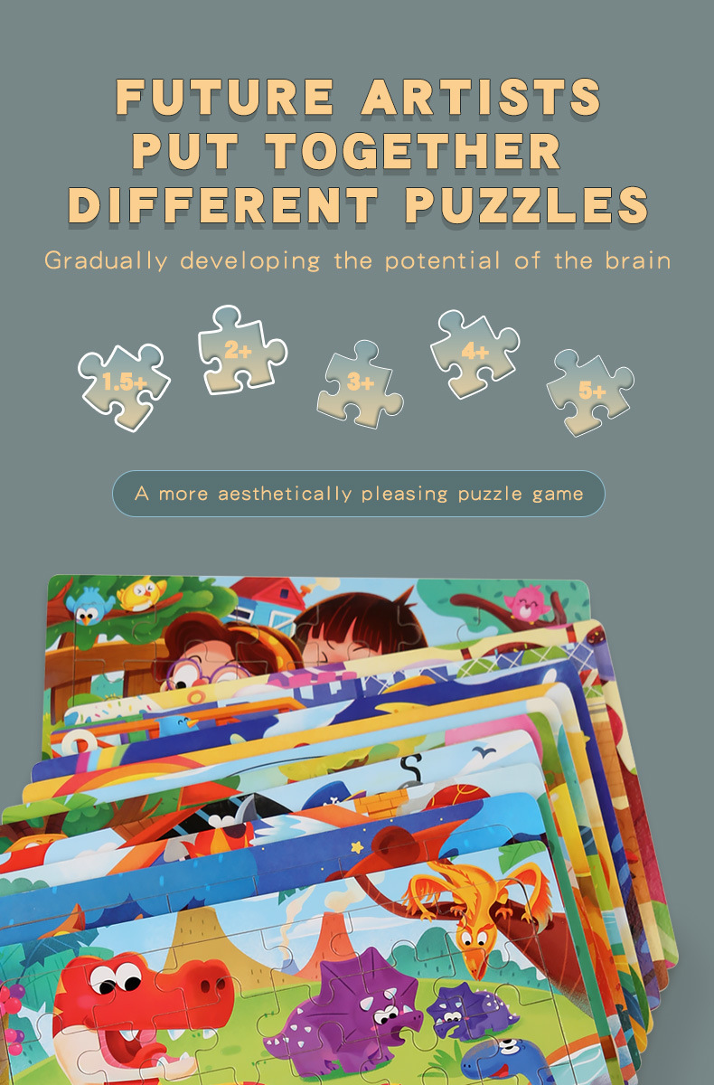 Weiwei Tiger Children 3 ~ 5 años de madera 30 piezas de educación temprana dinosaurio animal dibujos animados rompecabezas plano de madera juguetes transfronterizos
