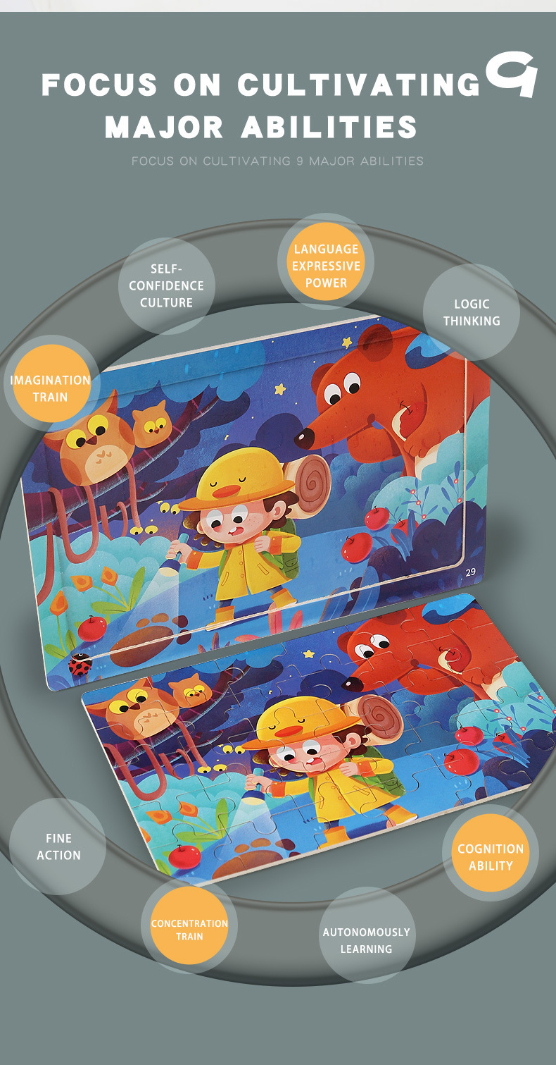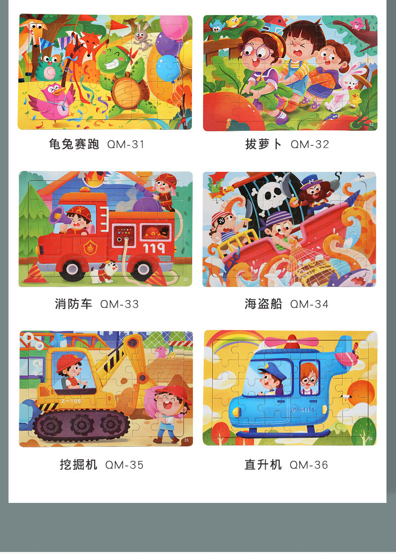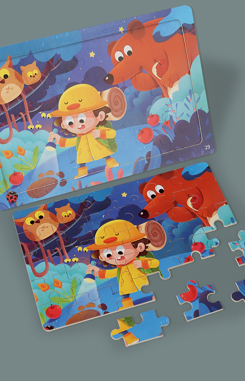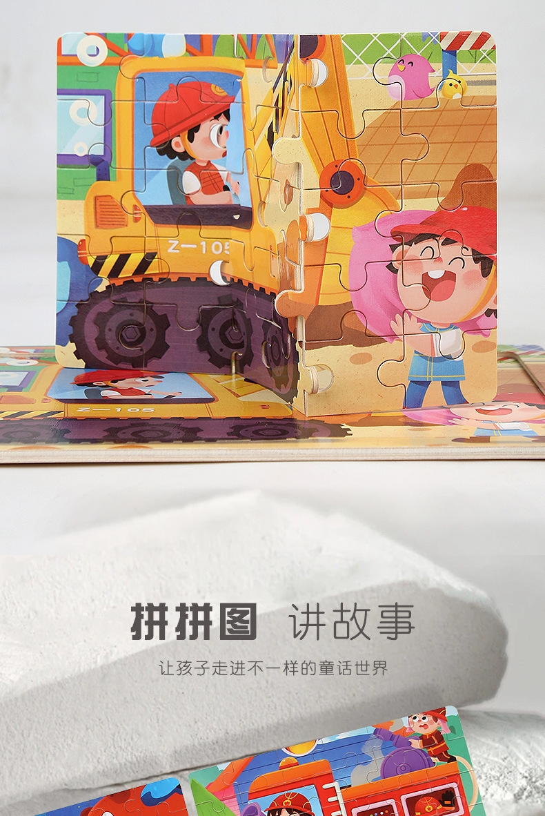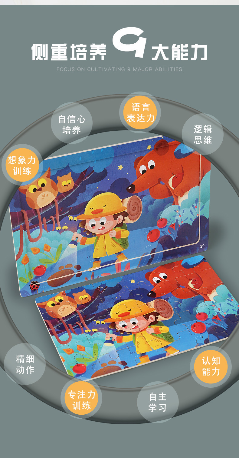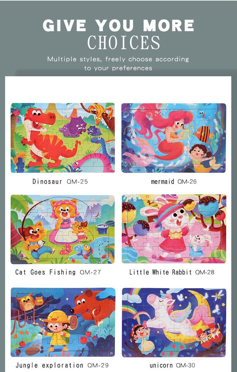 Weiwei Tiger Children 3 ~ 5 años de madera 30 piezas de educación temprana dinosaurio animal dibujos animados rompecabezas plano de madera juguetes transfronterizos