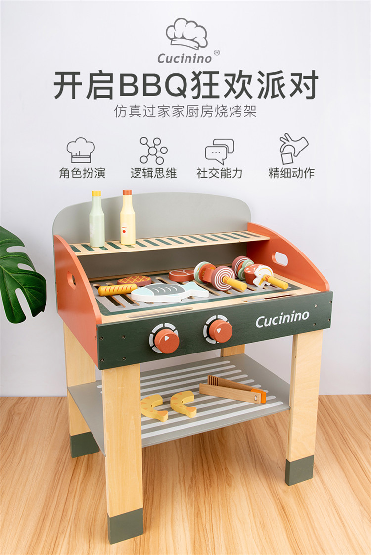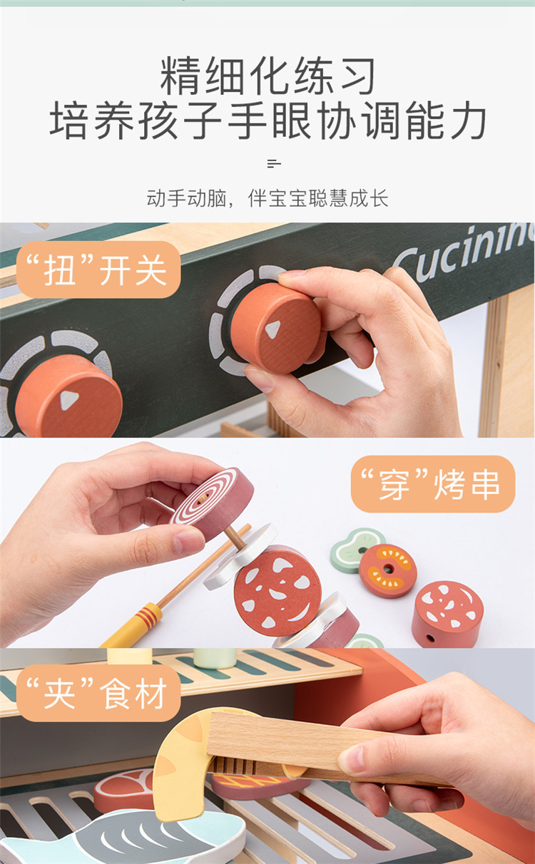 Simulación de madera para niños barbacoa parrilla barbacoa puesto niños y niñas jugar casa alimentos cognición corte música traje Juguetes