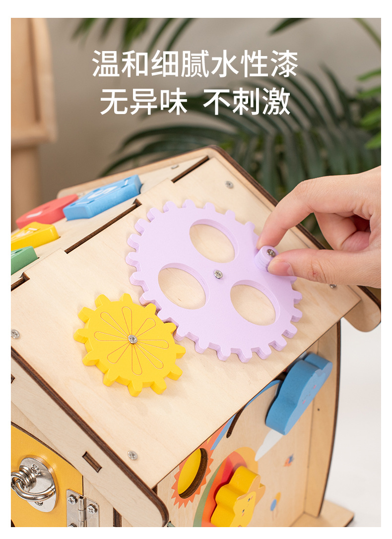 De madera Montessori niños multi-funcional casa ocupada caja del Tesoro de seis lados bebé educación temprana iluminación juguetes educativos