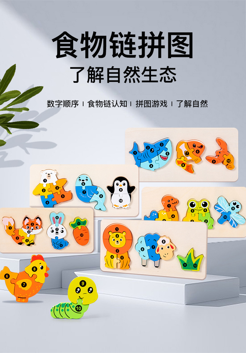 Niños transfronterizos, animales, verduras, frutas, cadenas alimentarias, rompecabezas tridimensional, rompecabezas para bebés, rompecabezas de combinación, juguetes de madera