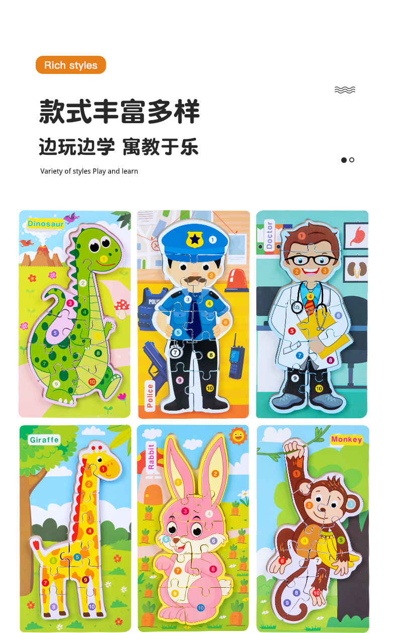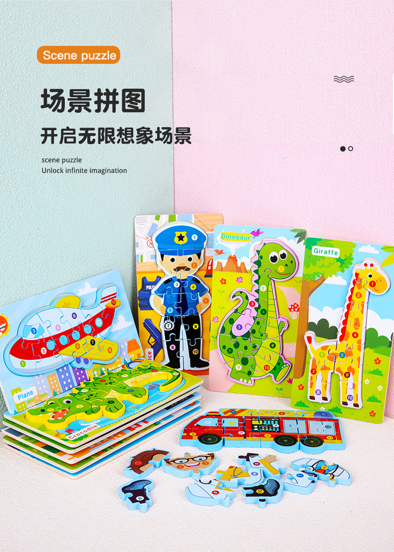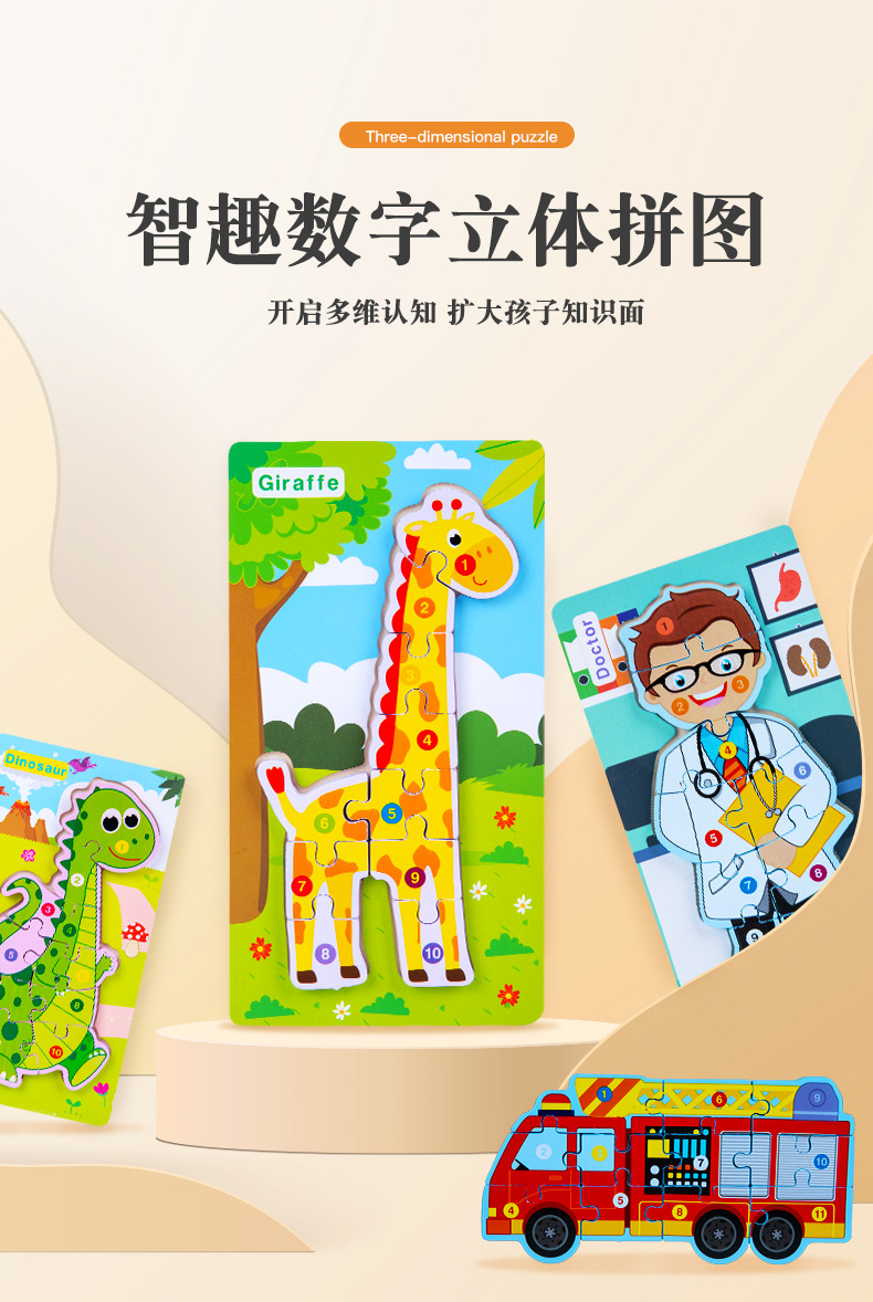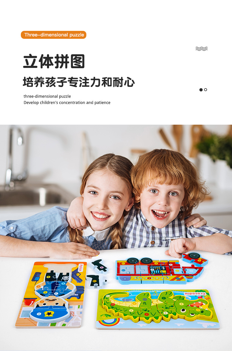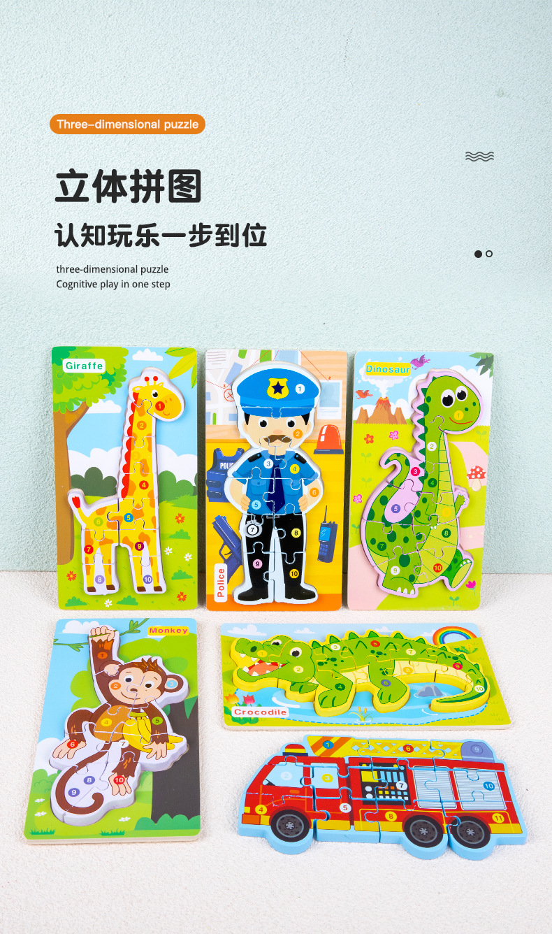 Madera 3D figura 3D tráfico animal educación temprana rompecabezas cognitivo juguete educativo niños ensamblando bloques de construcción de juguete