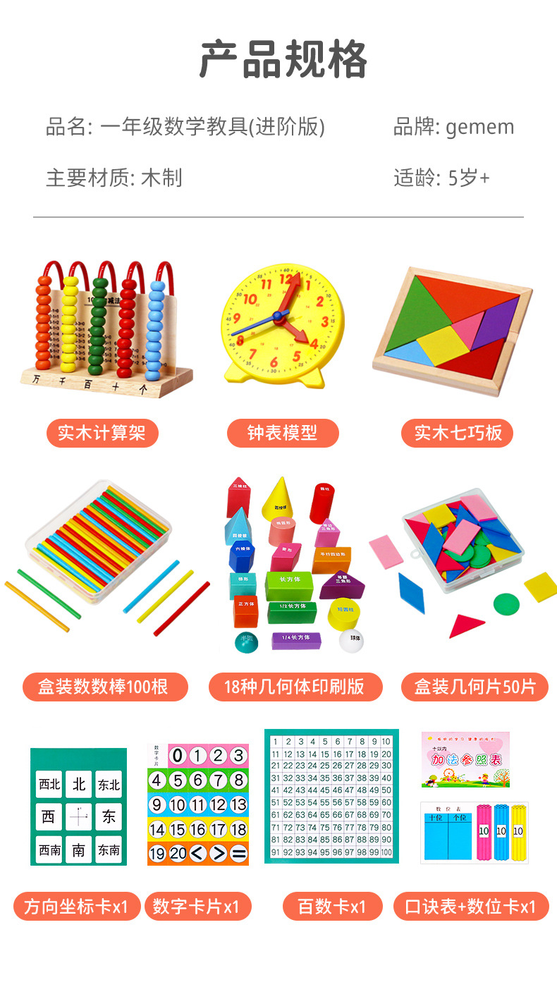 Escuela primaria primer grado primer volumen segundo volumen matemáticas aprendizaje kit traje figura geométrica contador enseñanza ayudas conjunto completo de útiles escolares