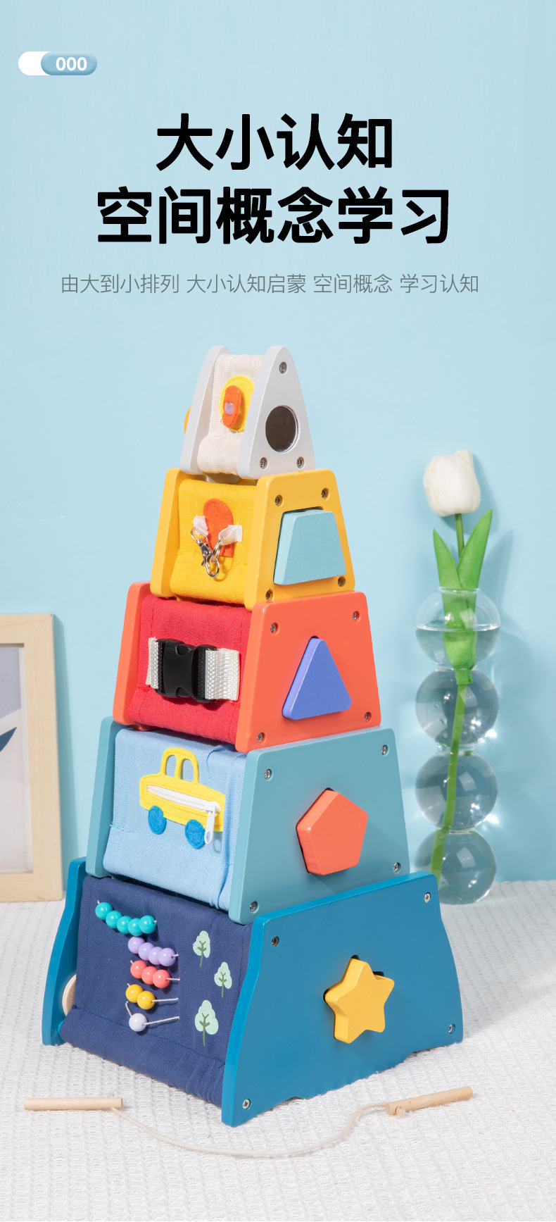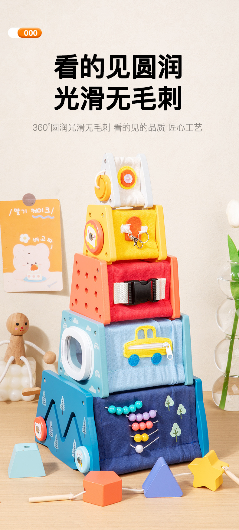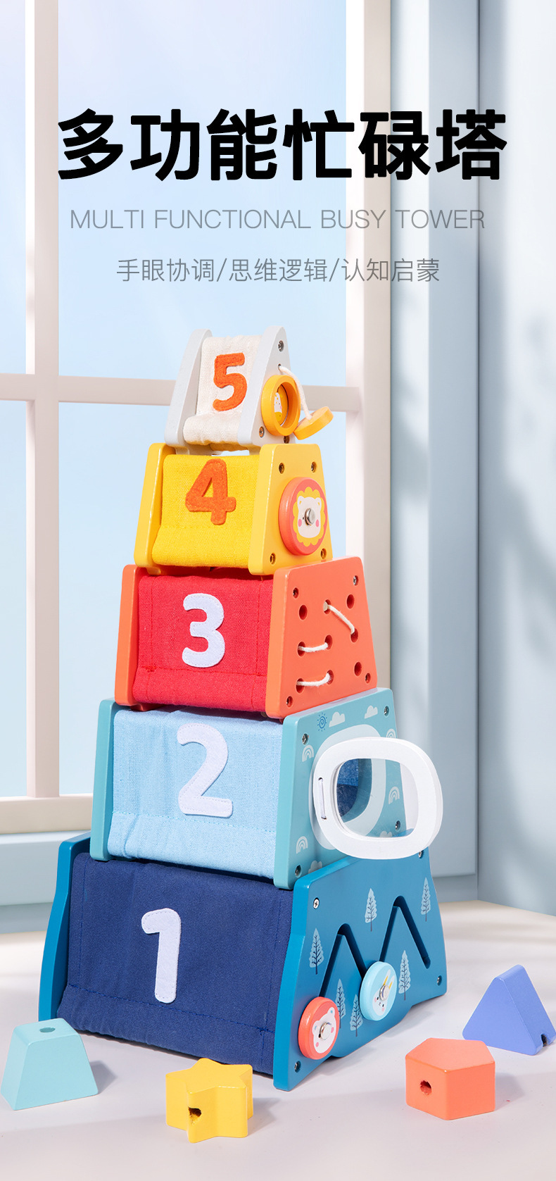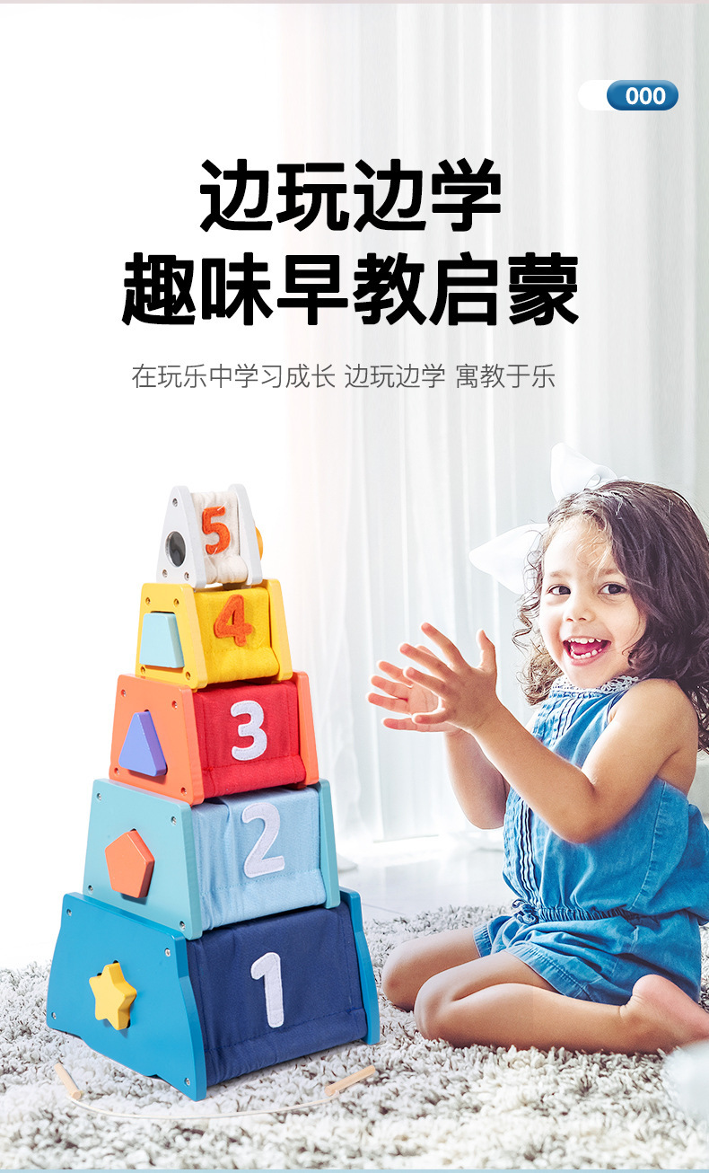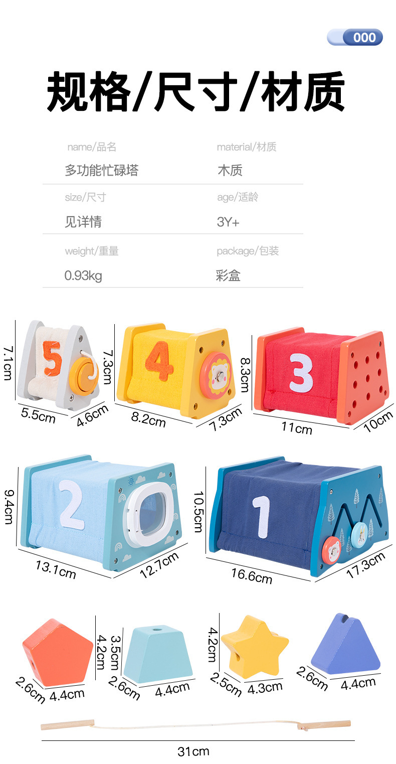 Weiweihu para niños, torre ocupada multifuncional de madera, apilamiento de cohetes, torre de apilamiento, juguete de tela multifuncional para rompecabezas