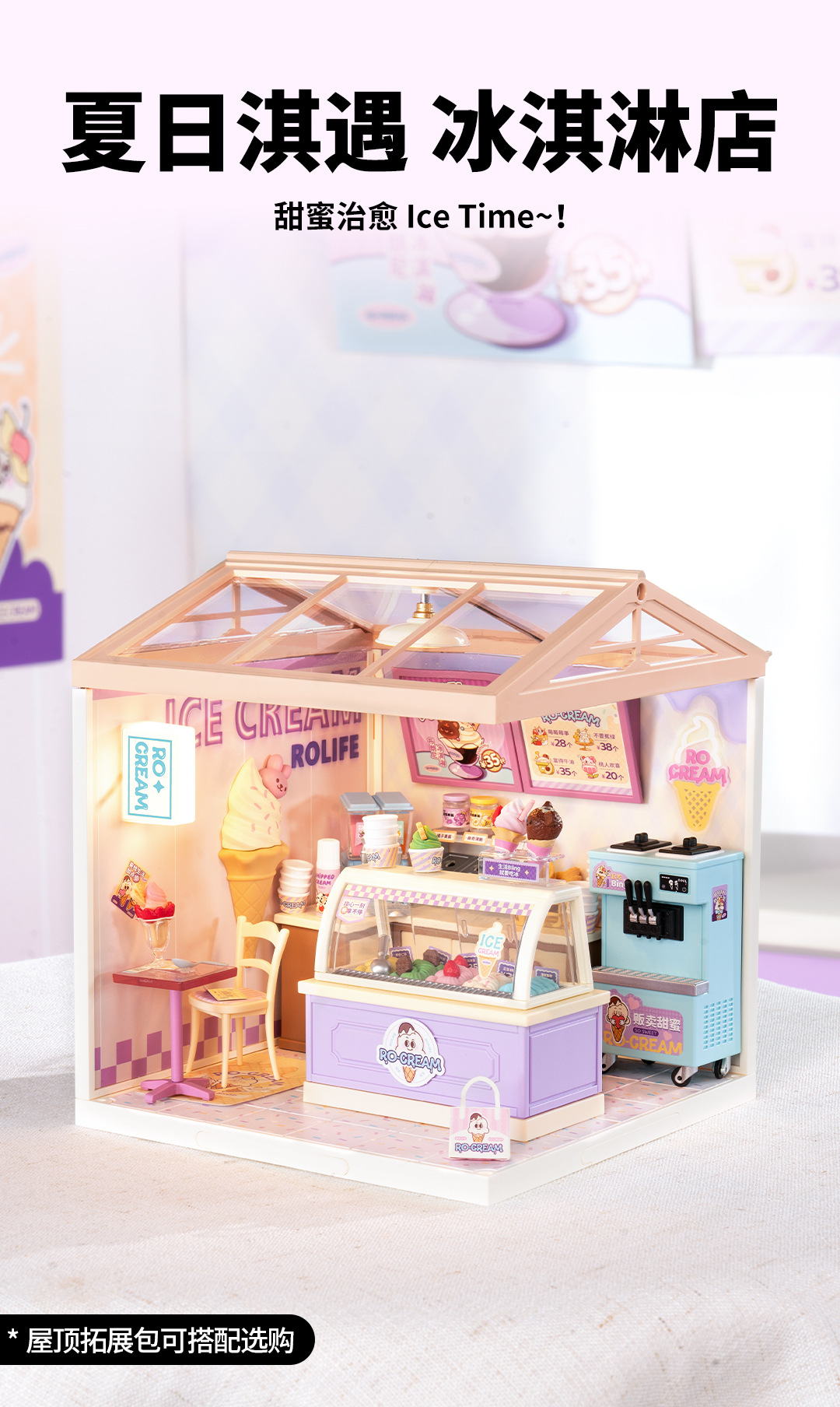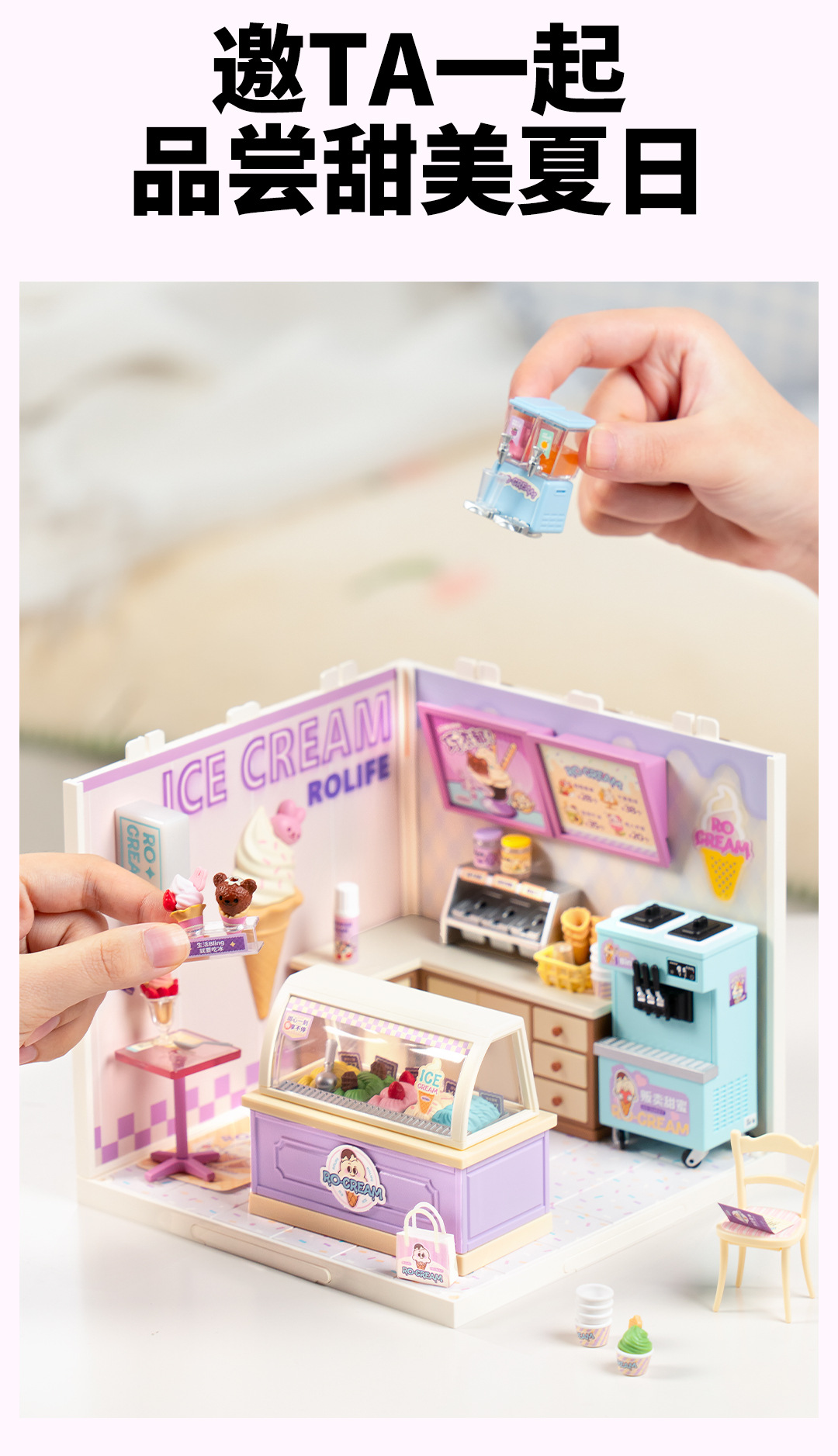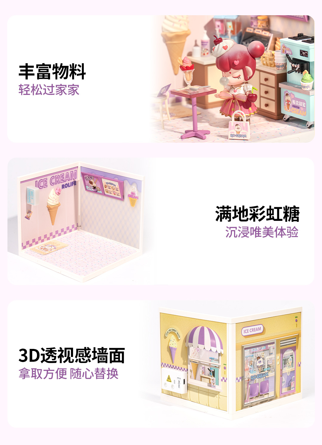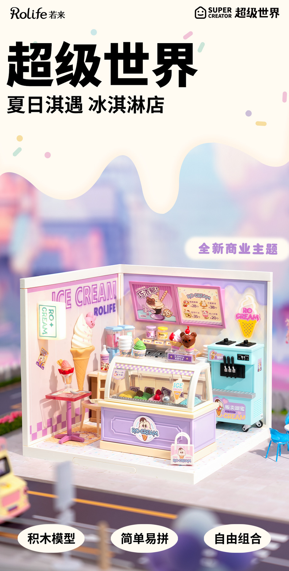 Rollife Ruo Lai Super World bloques de rompecabezas ensamblados modelo de juguete helado bricolaje cabaña regalo de cumpleaños