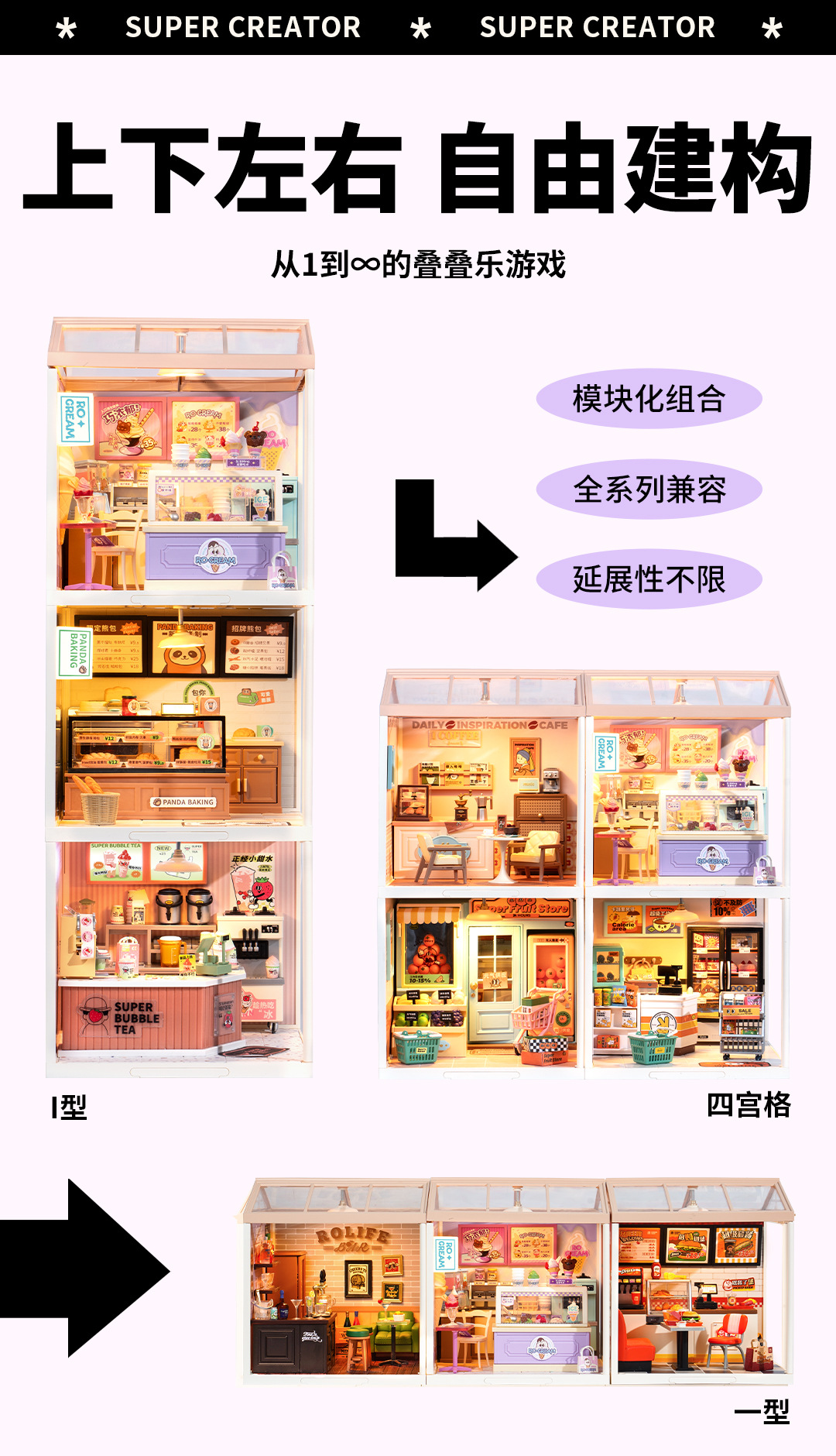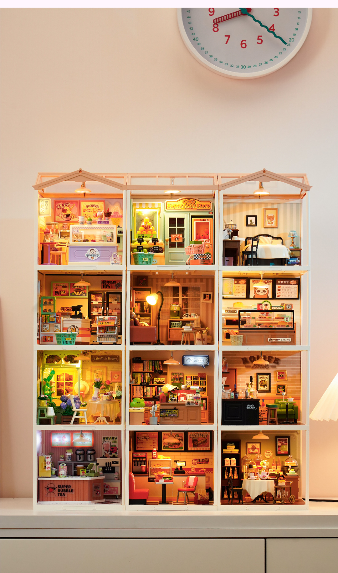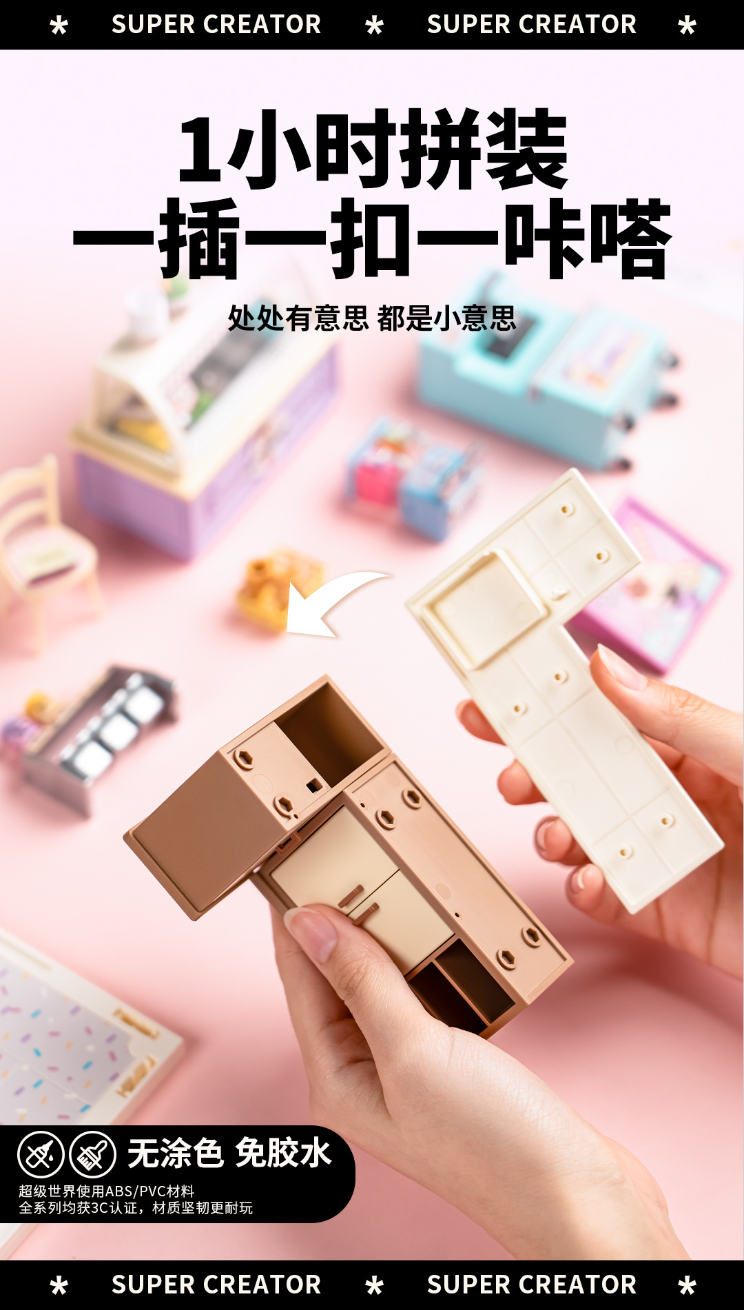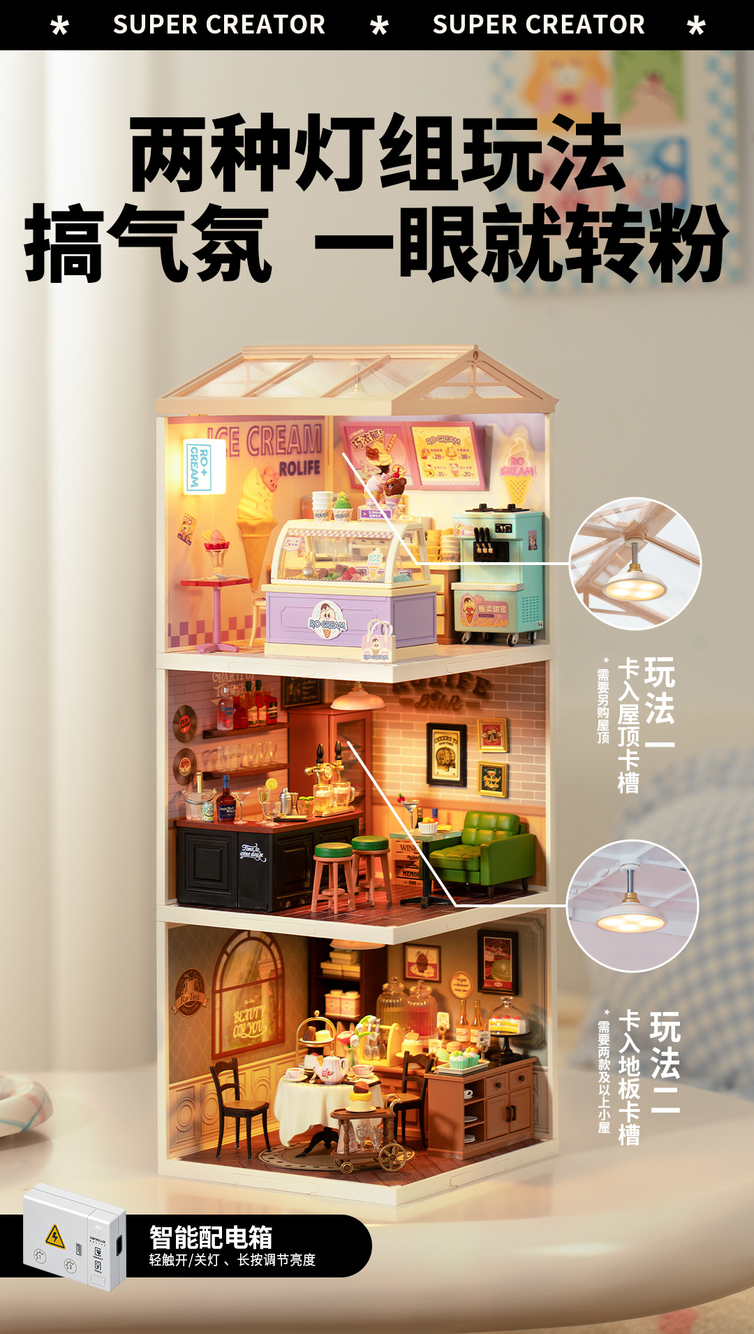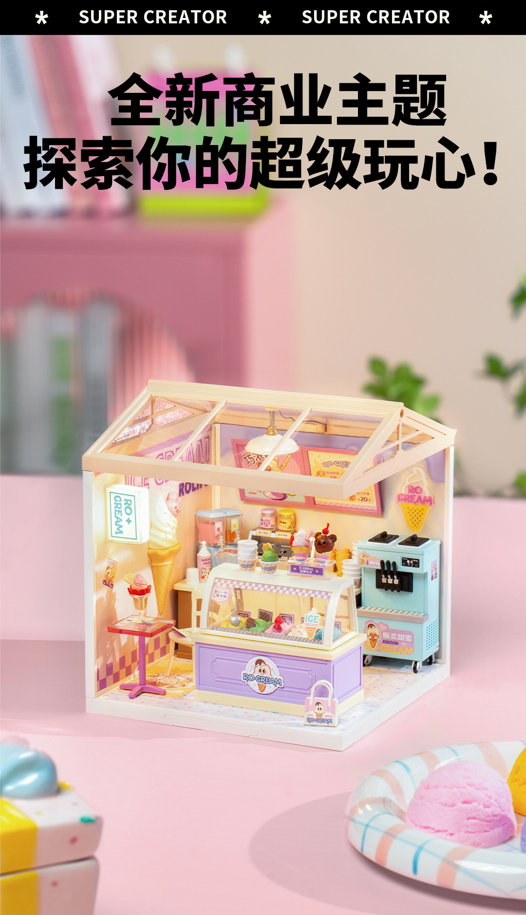 Rollife Ruo Lai Super World bloques de rompecabezas ensamblados modelo de juguete helado bricolaje cabaña regalo de cumpleaños
