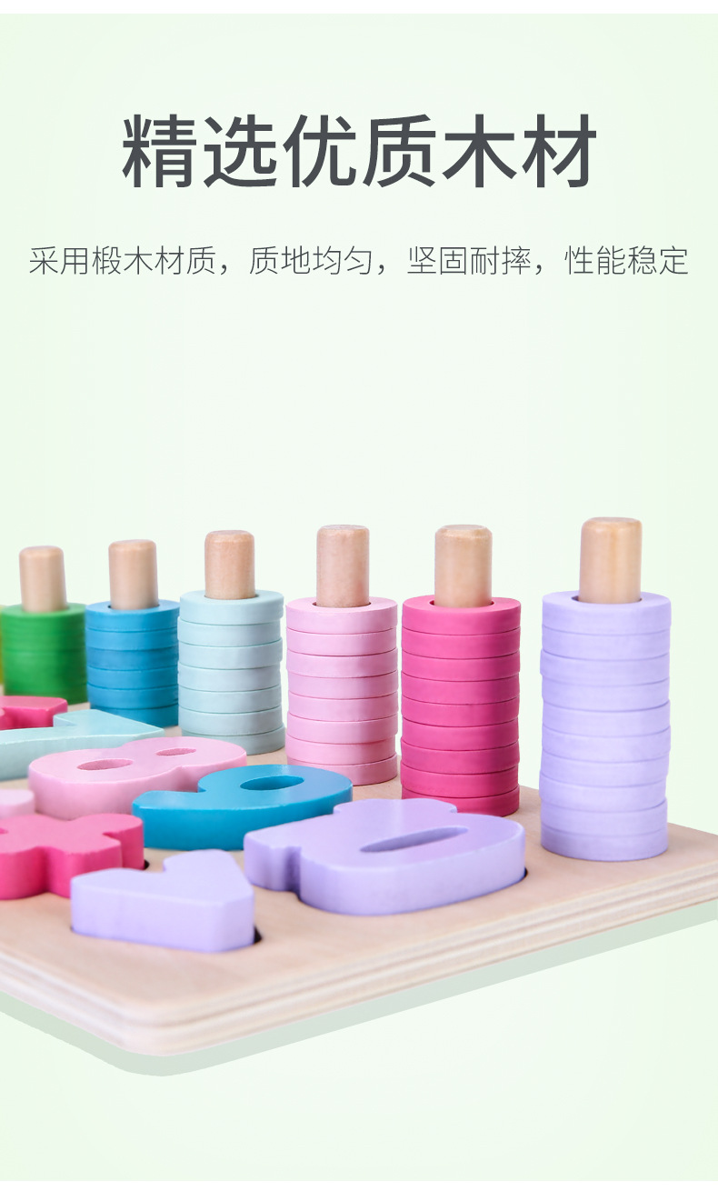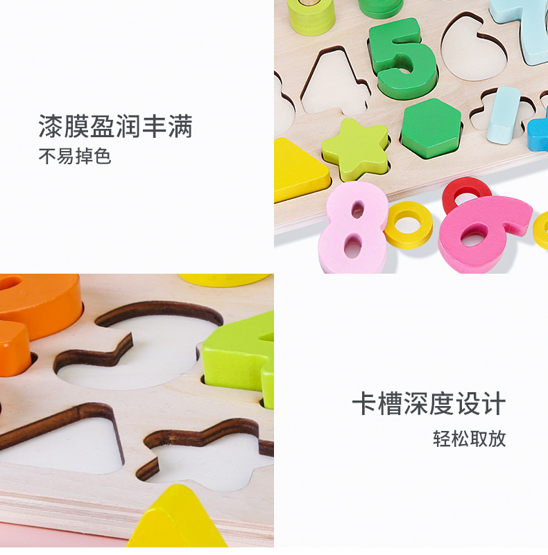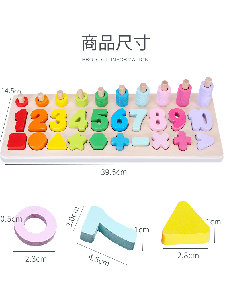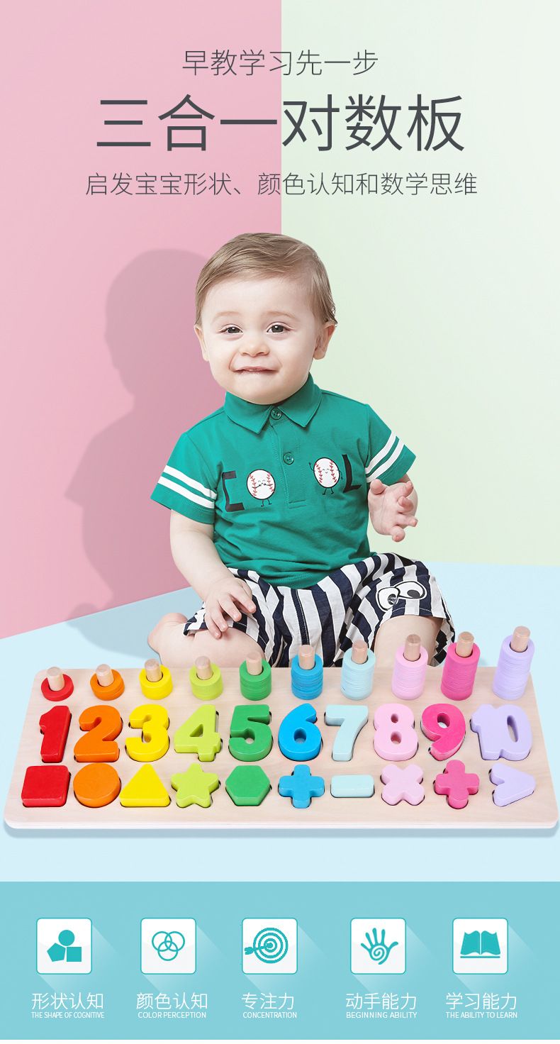 Personalizado tablero de logarítmicas de color de dos pasos, combinación de formas de números tres en uno, ventas directas de juguetes de madera de inteligencia para niños