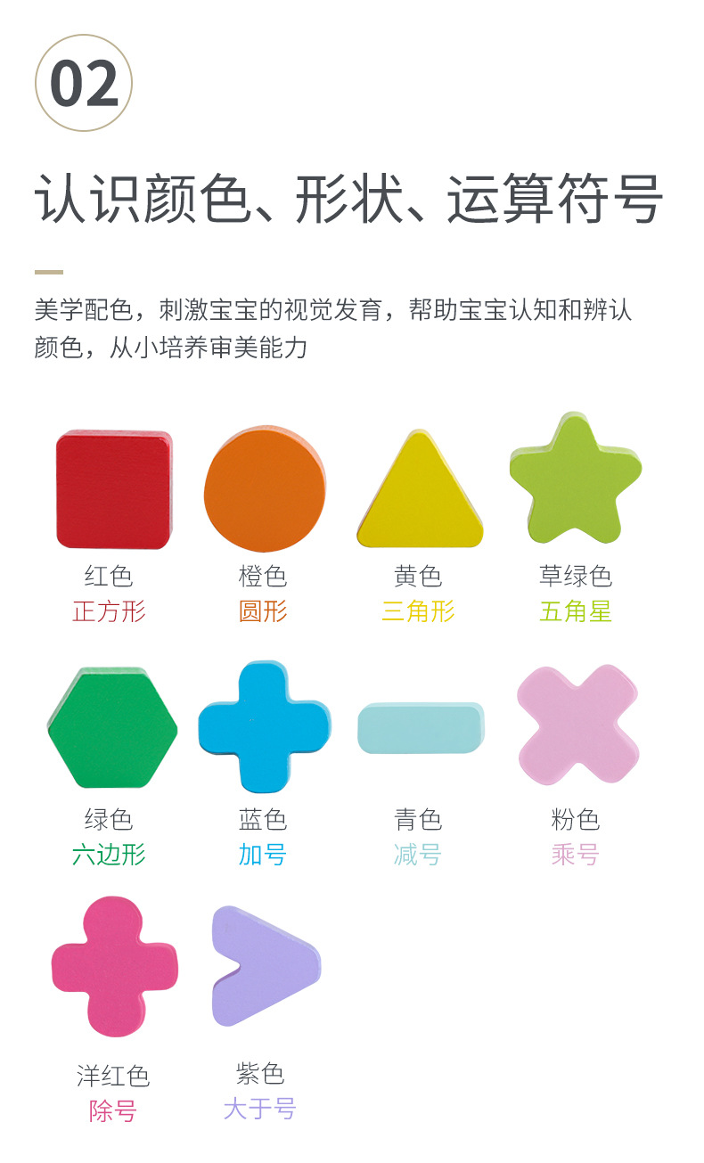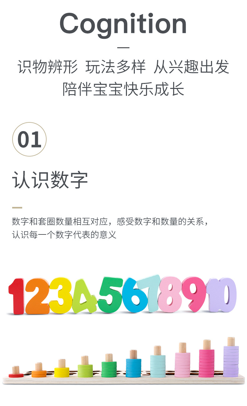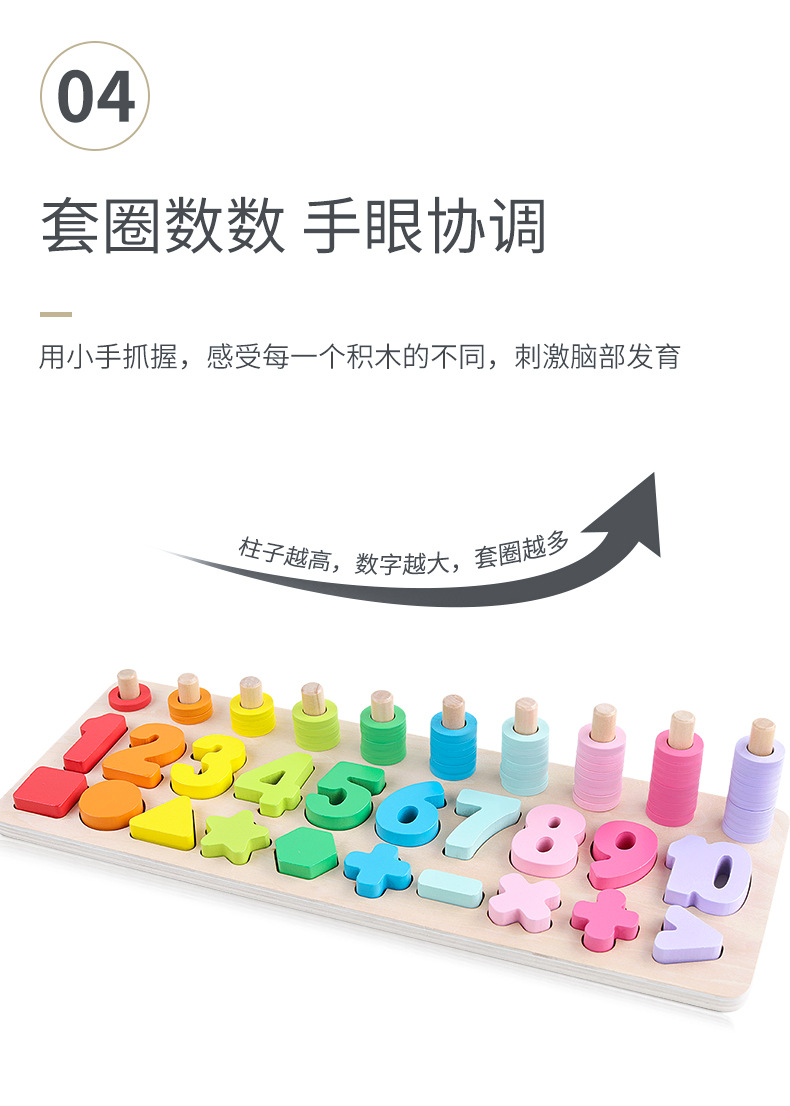 Personalizado tablero de logarítmicas de color de dos pasos, combinación de formas de números tres en uno, ventas directas de juguetes de madera de inteligencia para niños