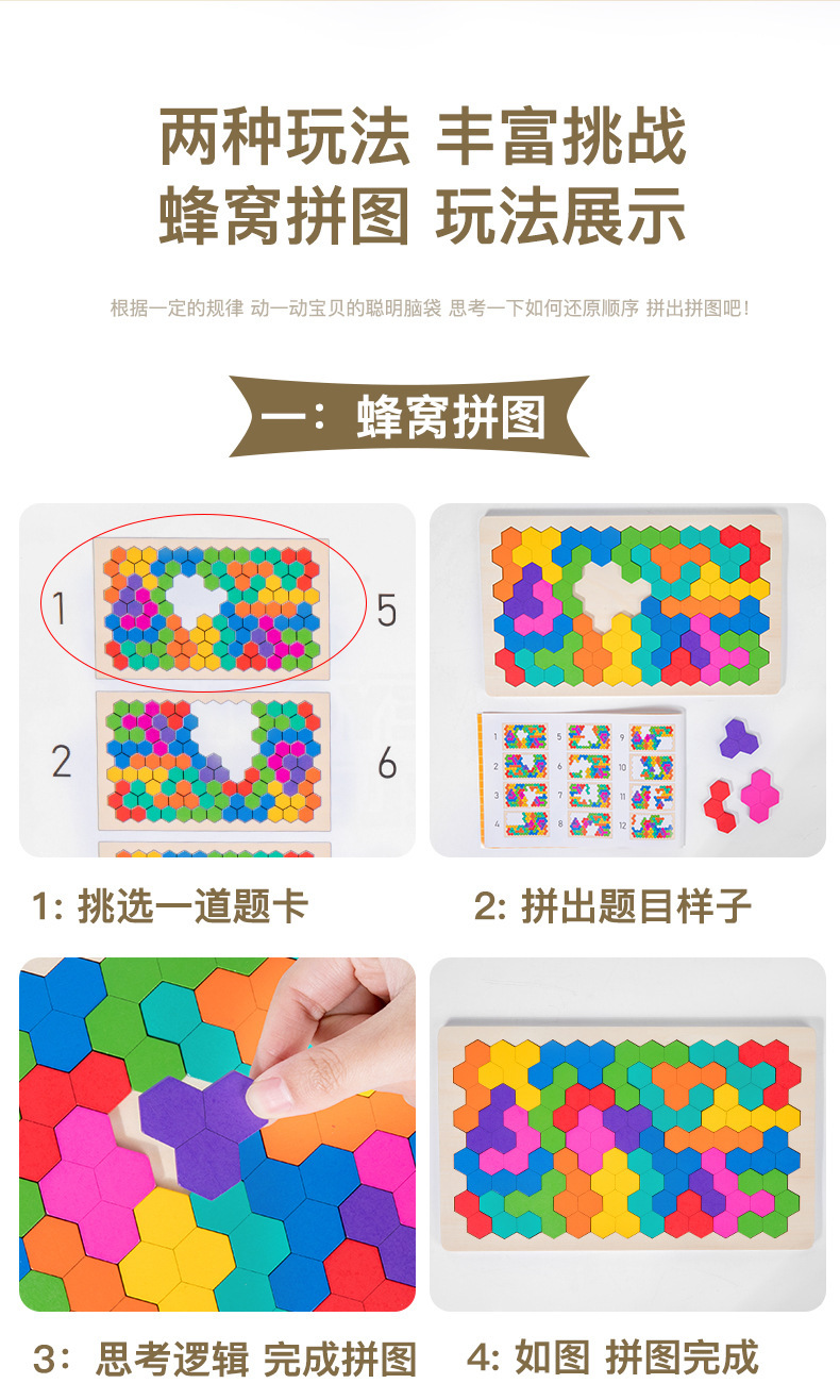 Weiweihu Children's Honeycomb Rompecabezas creativo Niños y niñas Entrenamiento de pensamiento lógico Montessori Educación temprana Juguetes educativos de madera