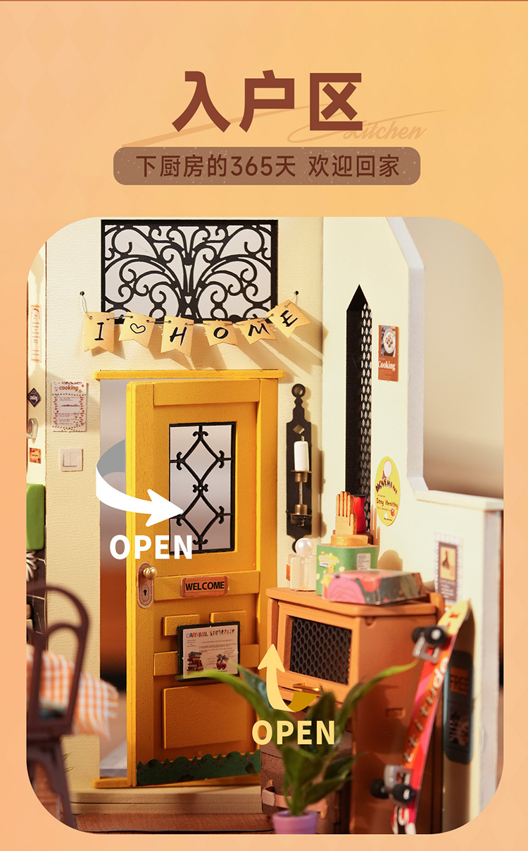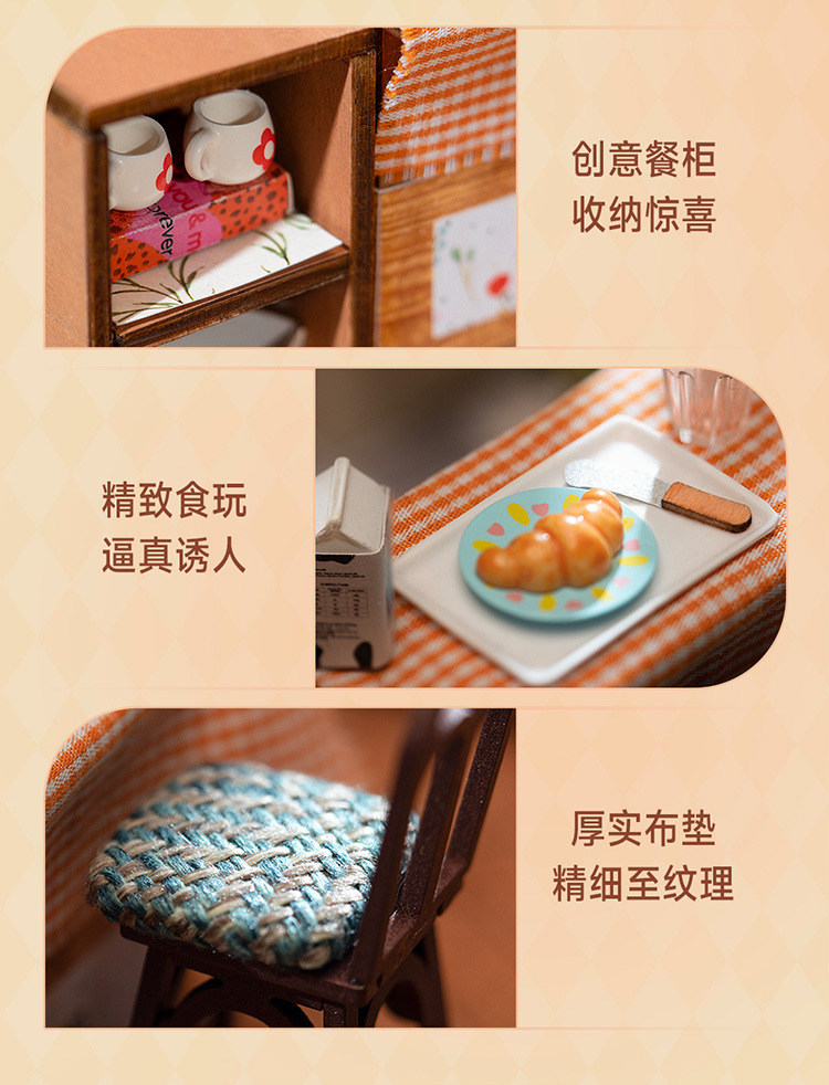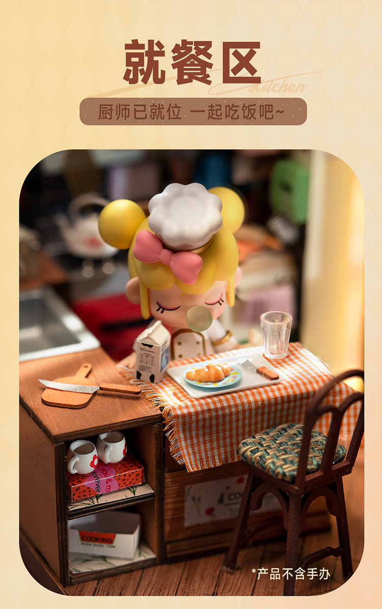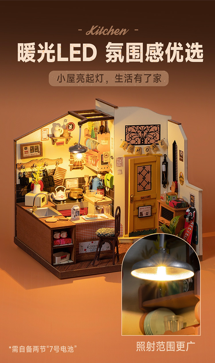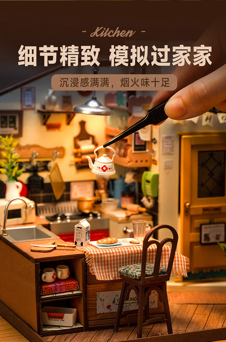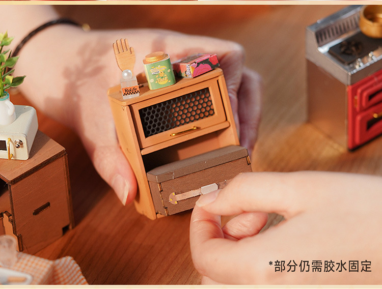 Ruolai DIY cabaña feliz cocina miniatura pequeña casa creativa ensamblada a mano modelo de casa de muñecas juguete niños