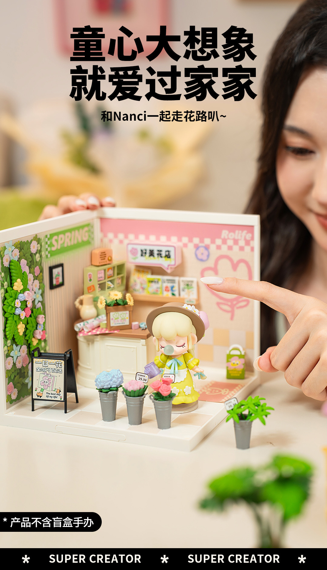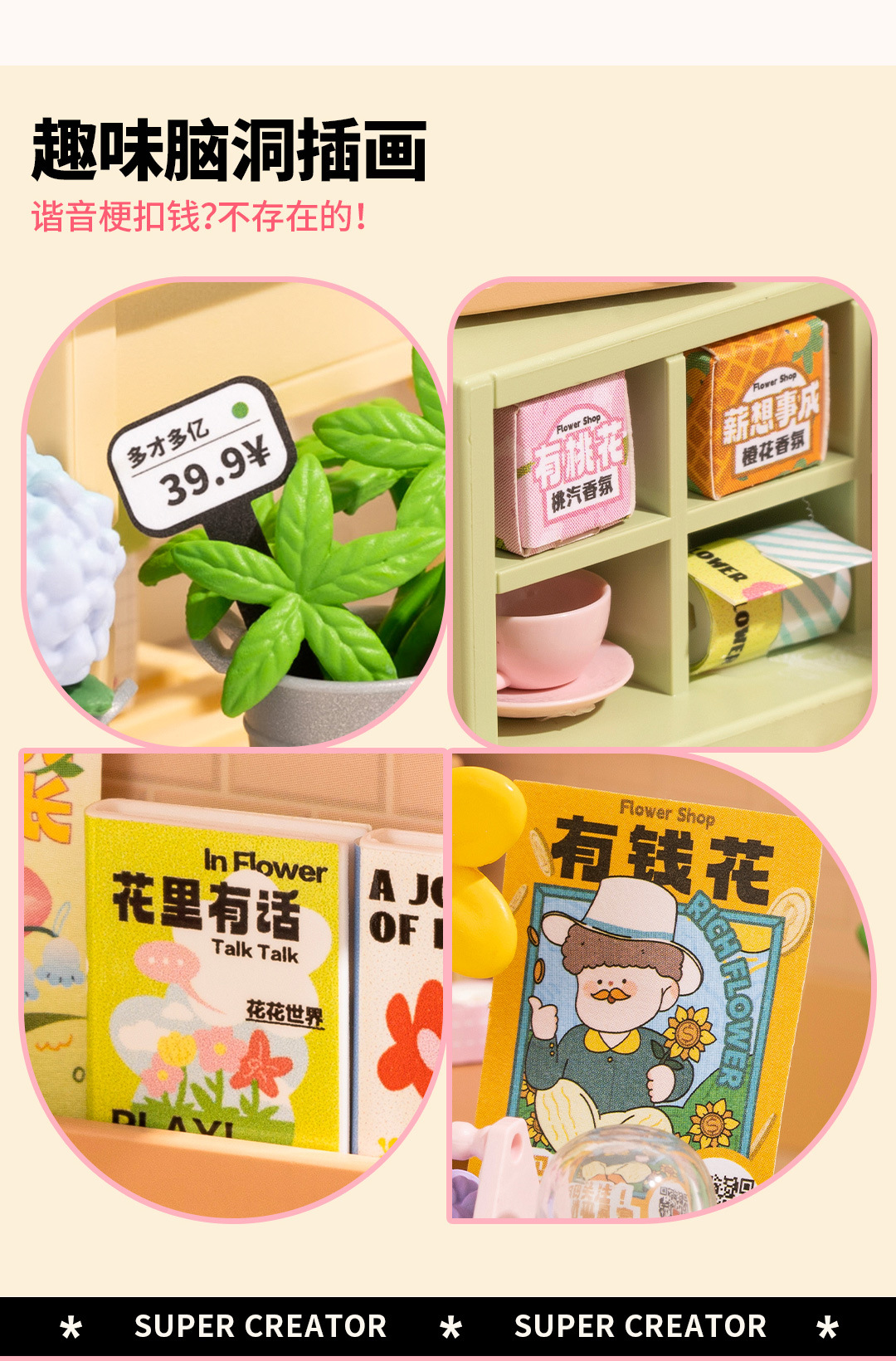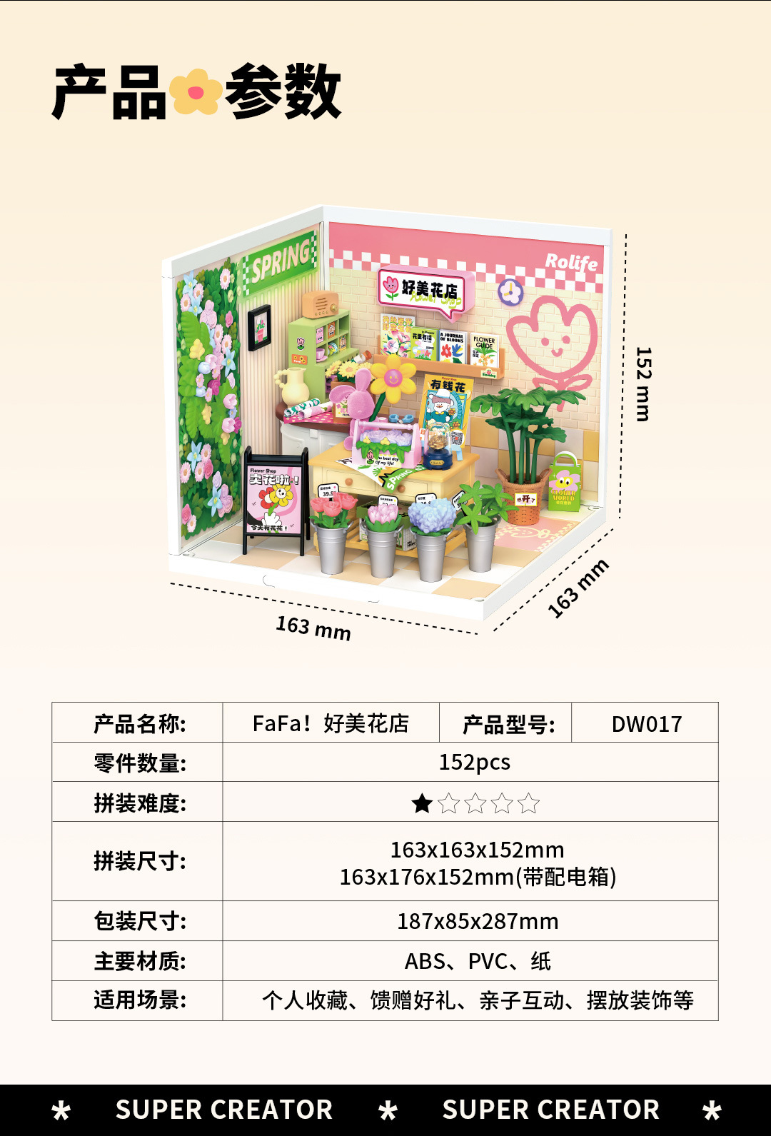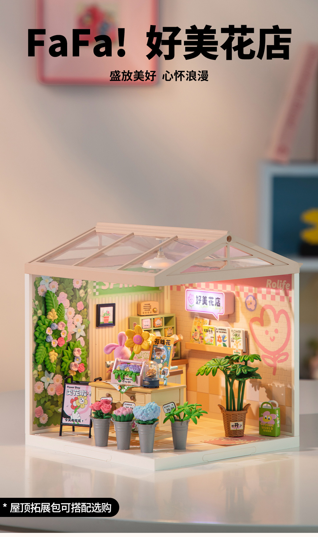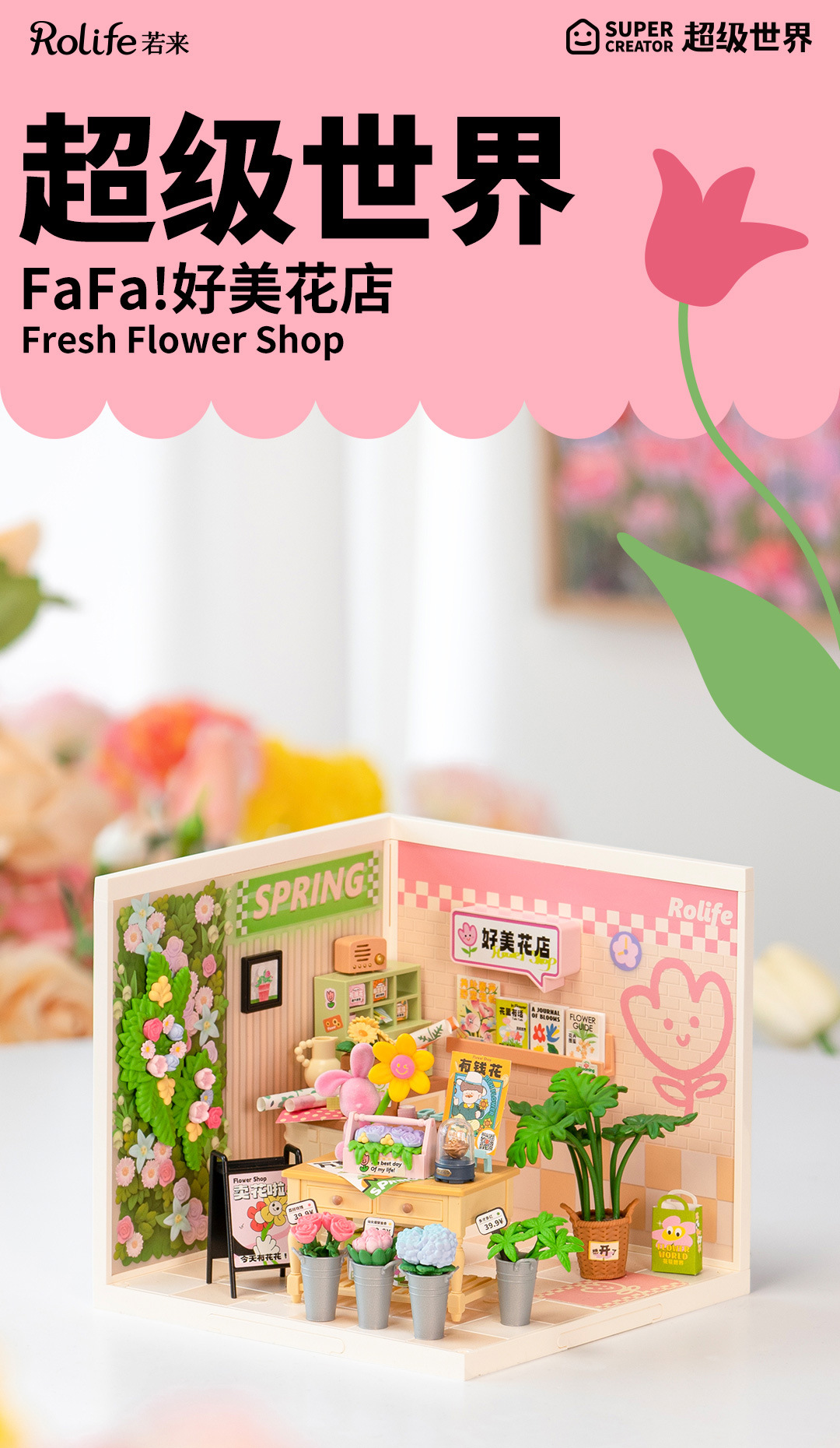 Rollife Ruo Lai Super World Flower Shop Bloques de rompecabezas ensamblados Modelo de juguete Cabaña de bricolaje Regalo para niños Mujer
