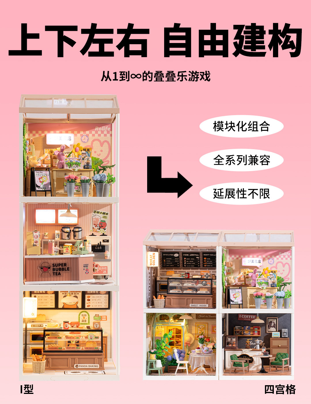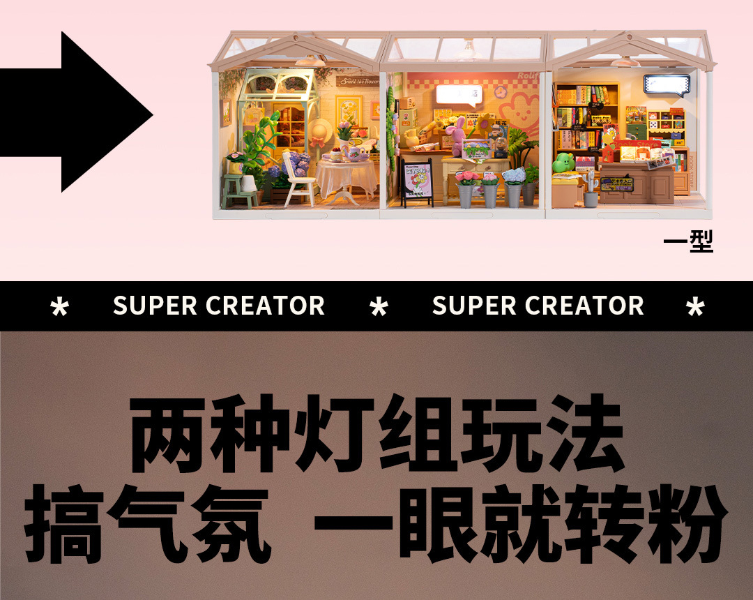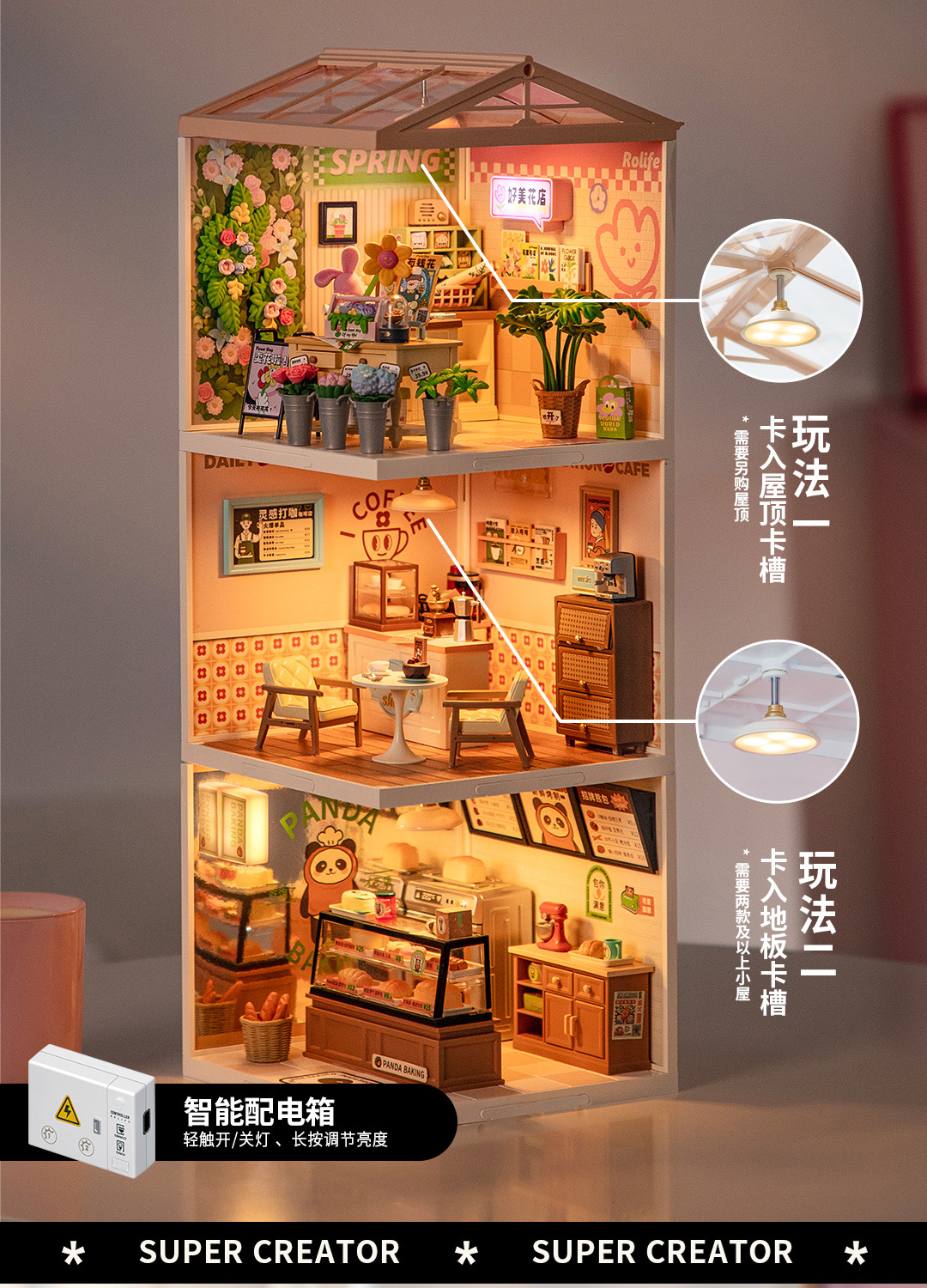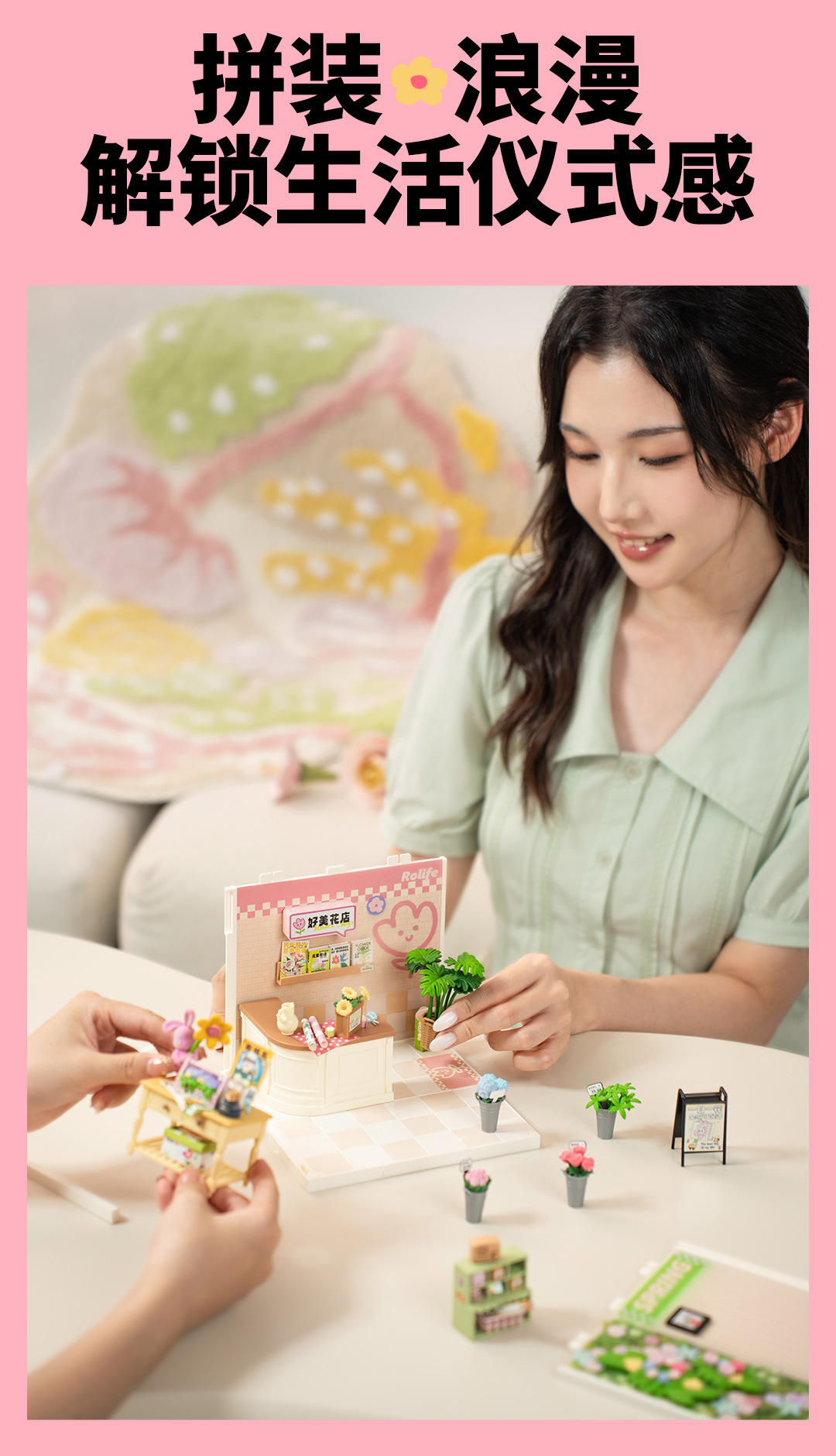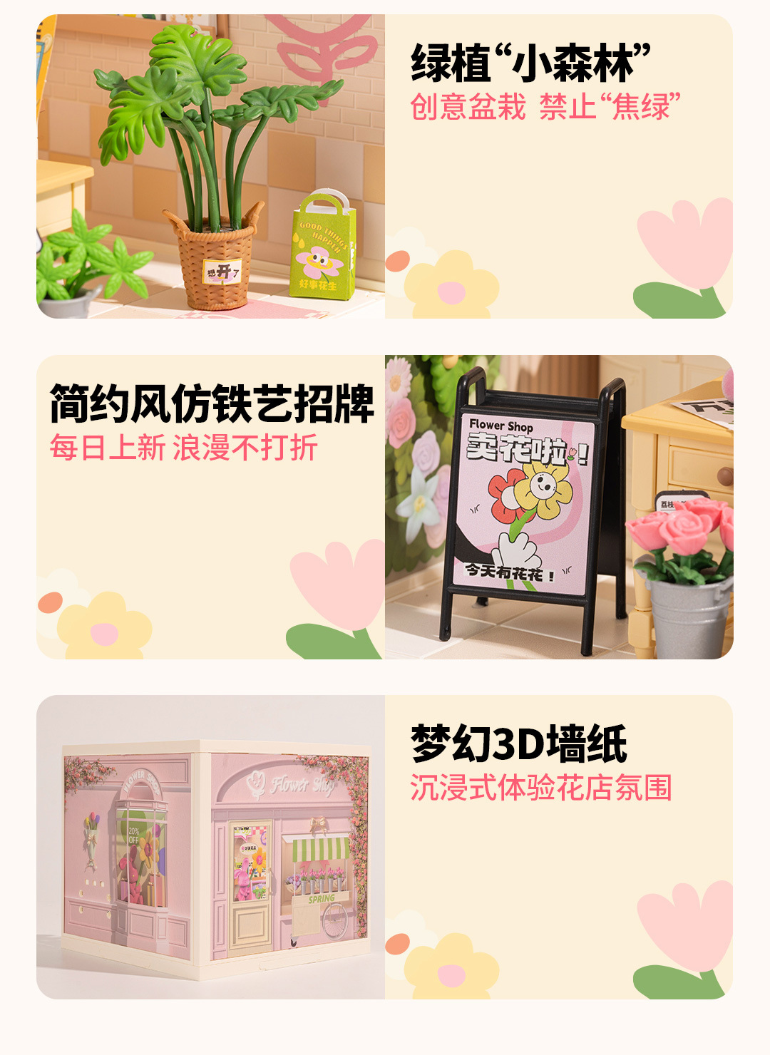 Rollife Ruo Lai Super World Flower Shop Bloques de rompecabezas ensamblados Modelo de juguete Cabaña de bricolaje Regalo para niños Mujer