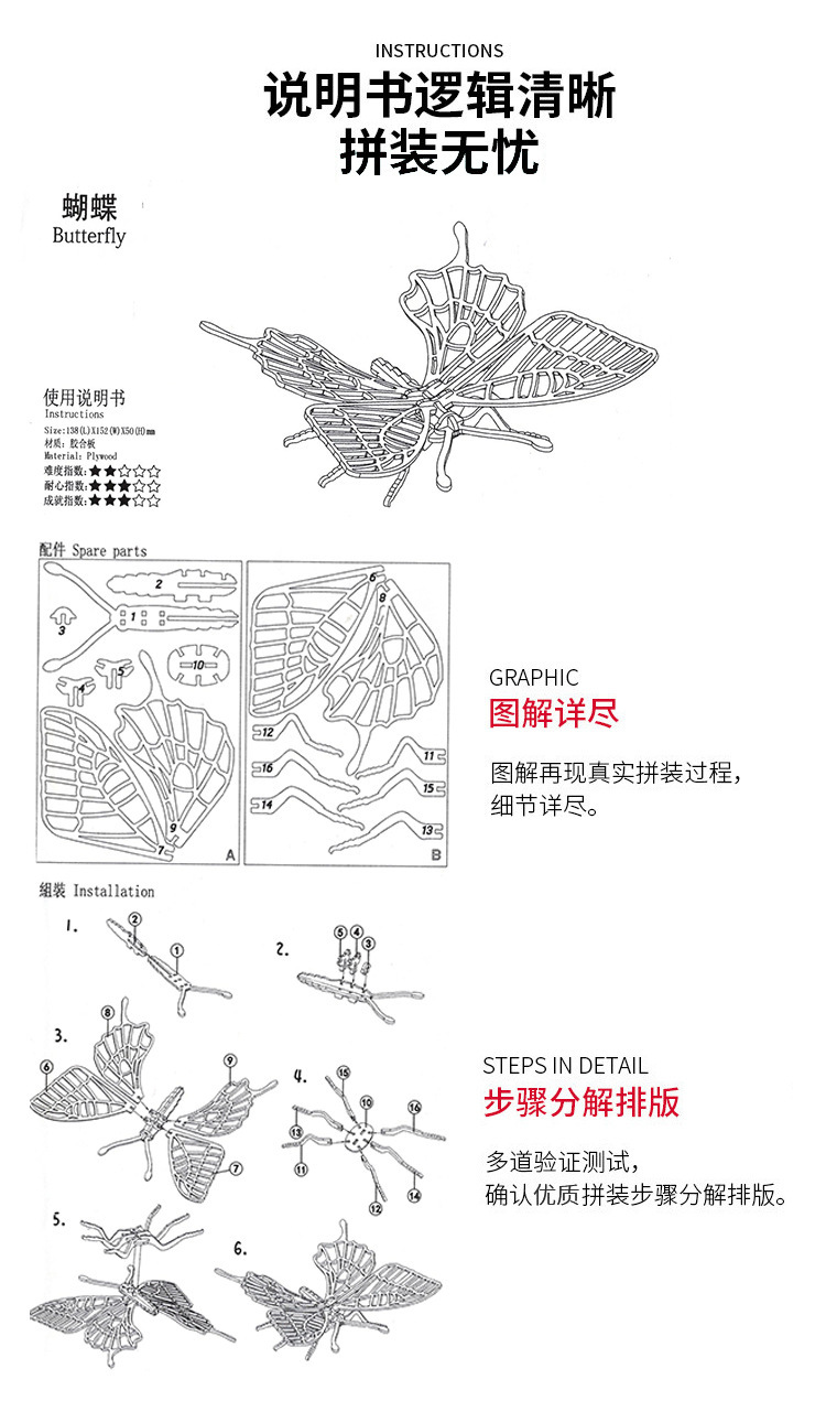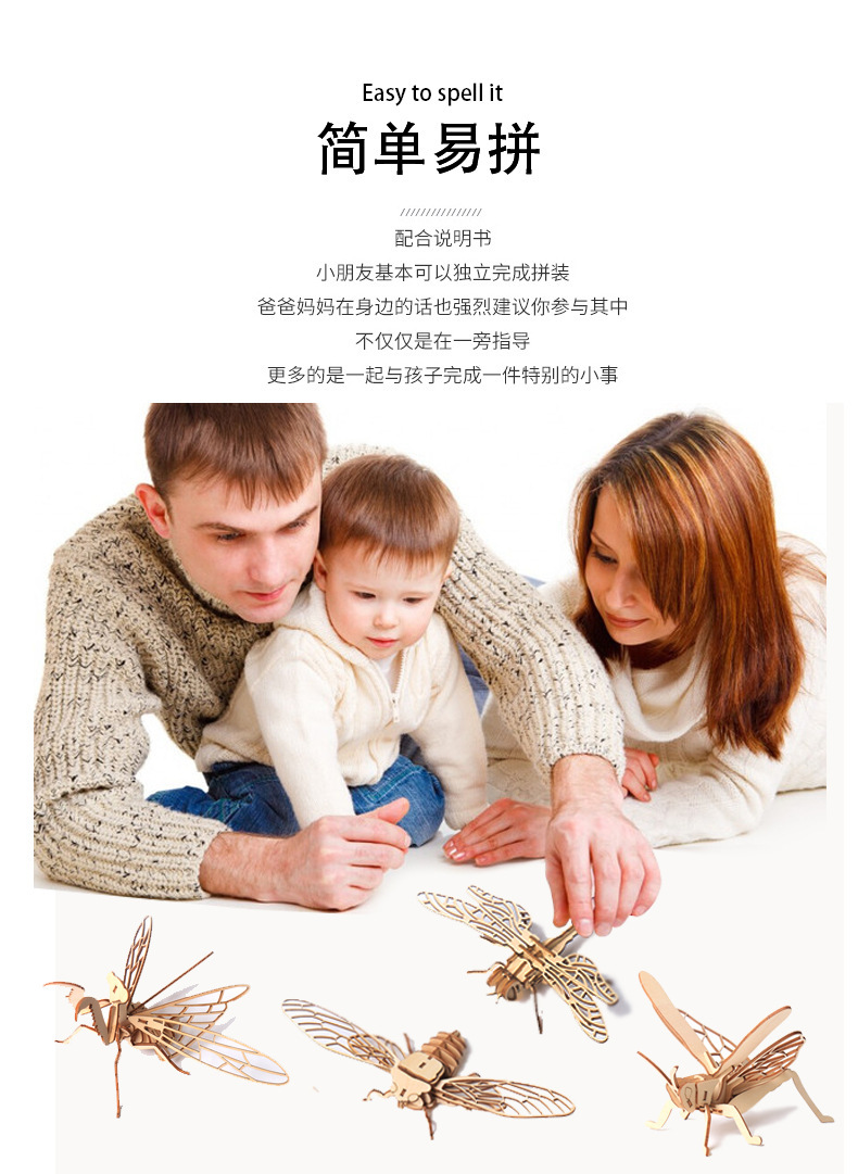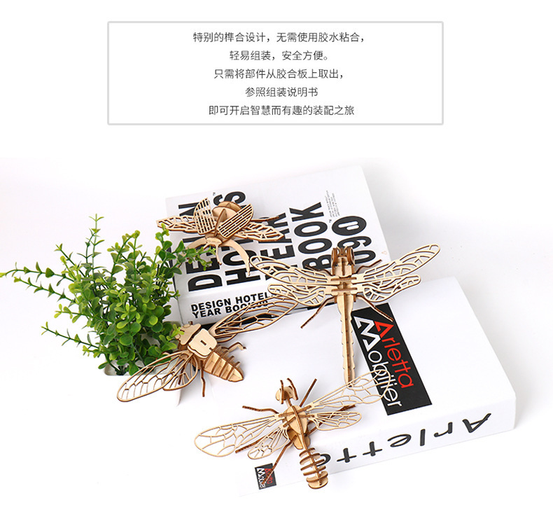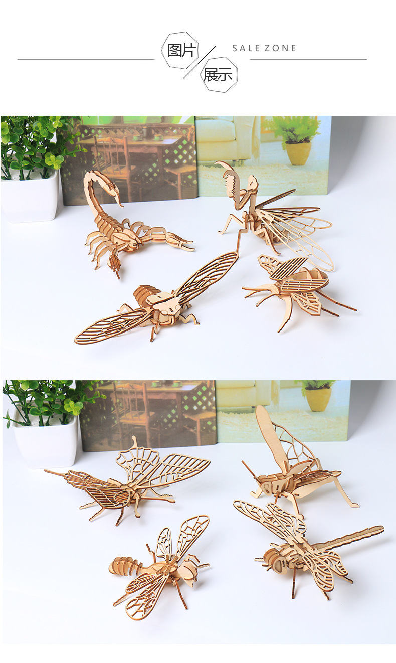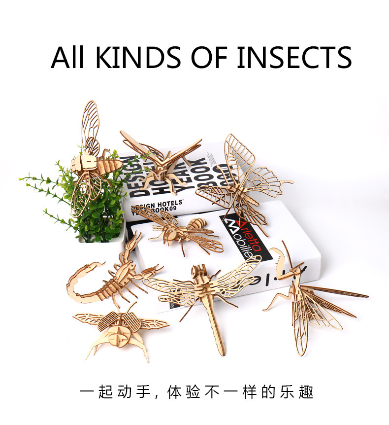 Madera, una variedad de insectos, rompecabezas 3D tridimensional, juguetes educativos avanzados para niños, modelo de ensamblaje creativo