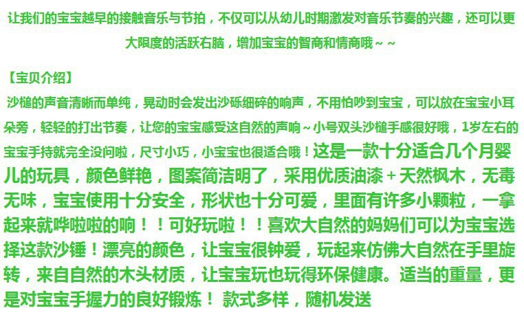 Venta al por mayor Orff instrumento musical tamaño pequeño martillo de arena de doble cabeza Bola de arena 15cm serie Juguetes Educativos de madera para niños