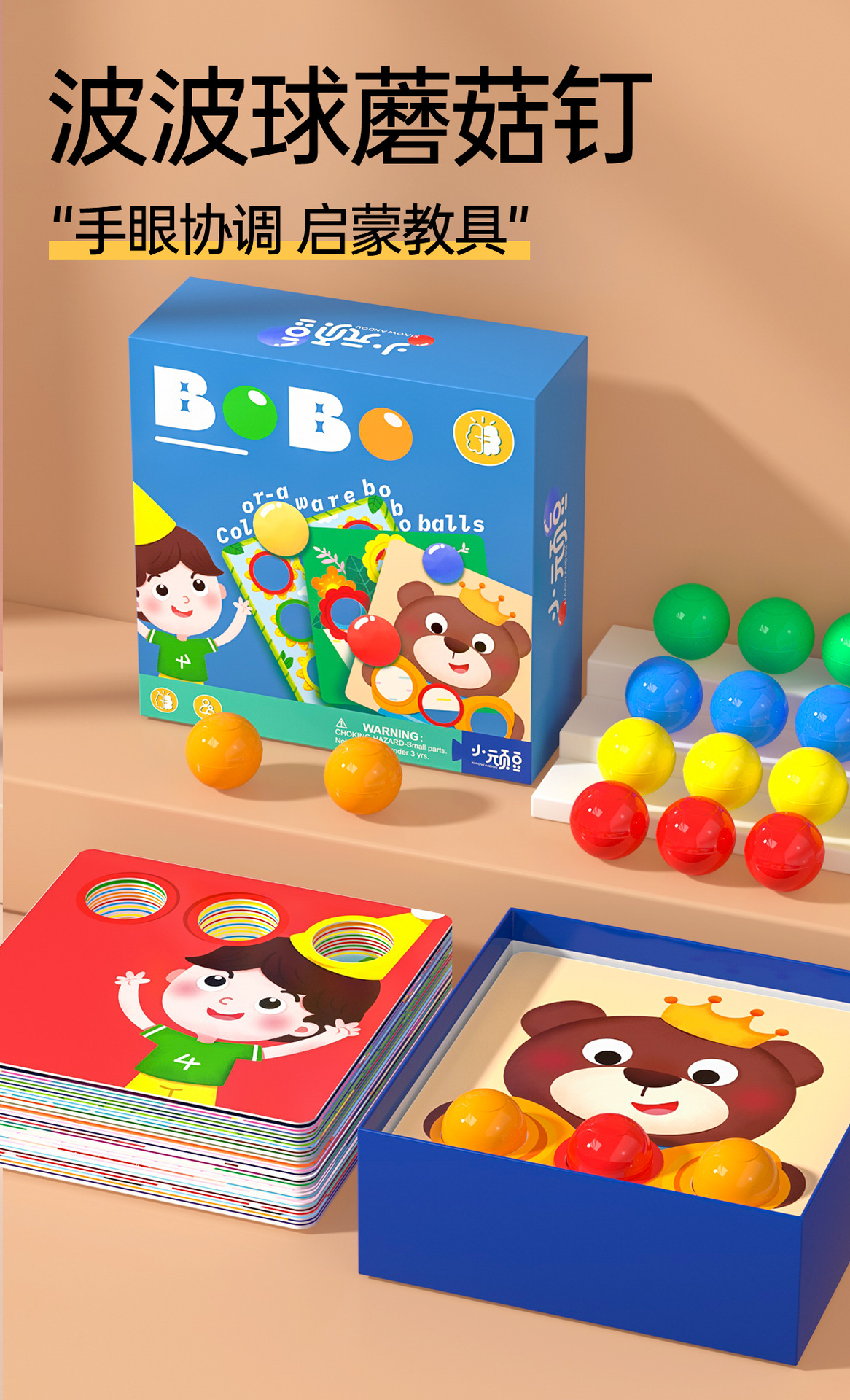 Dibujos animados de madera para niños, uñas de hongo, pinchazos de color, bola de onda, juego de entrenamiento de lógica, rompecabezas, rompecabezas, juguete