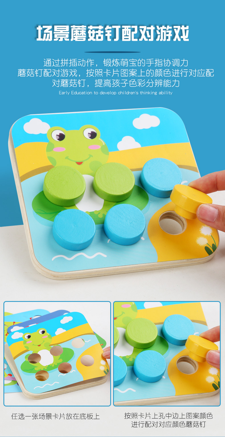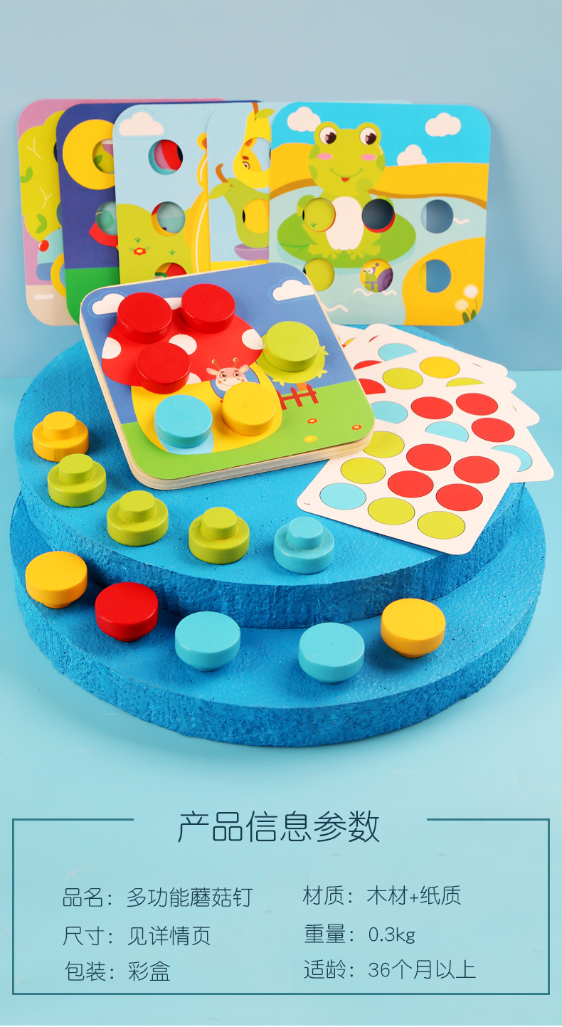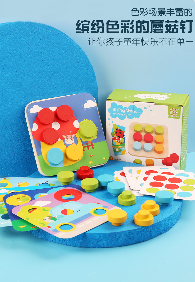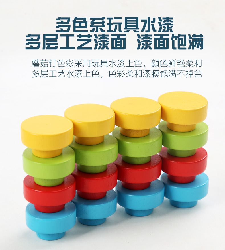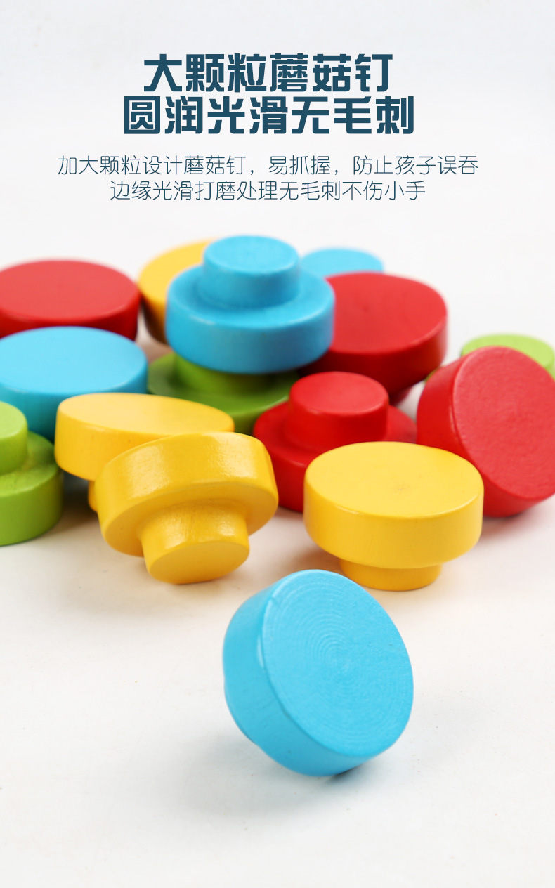 Gránulos grandes de madera transfronterizos rompecabezas creativo de clavos de hongos juguetes educativos inteligencia para niños rompecabezas grandes juguetes digitales