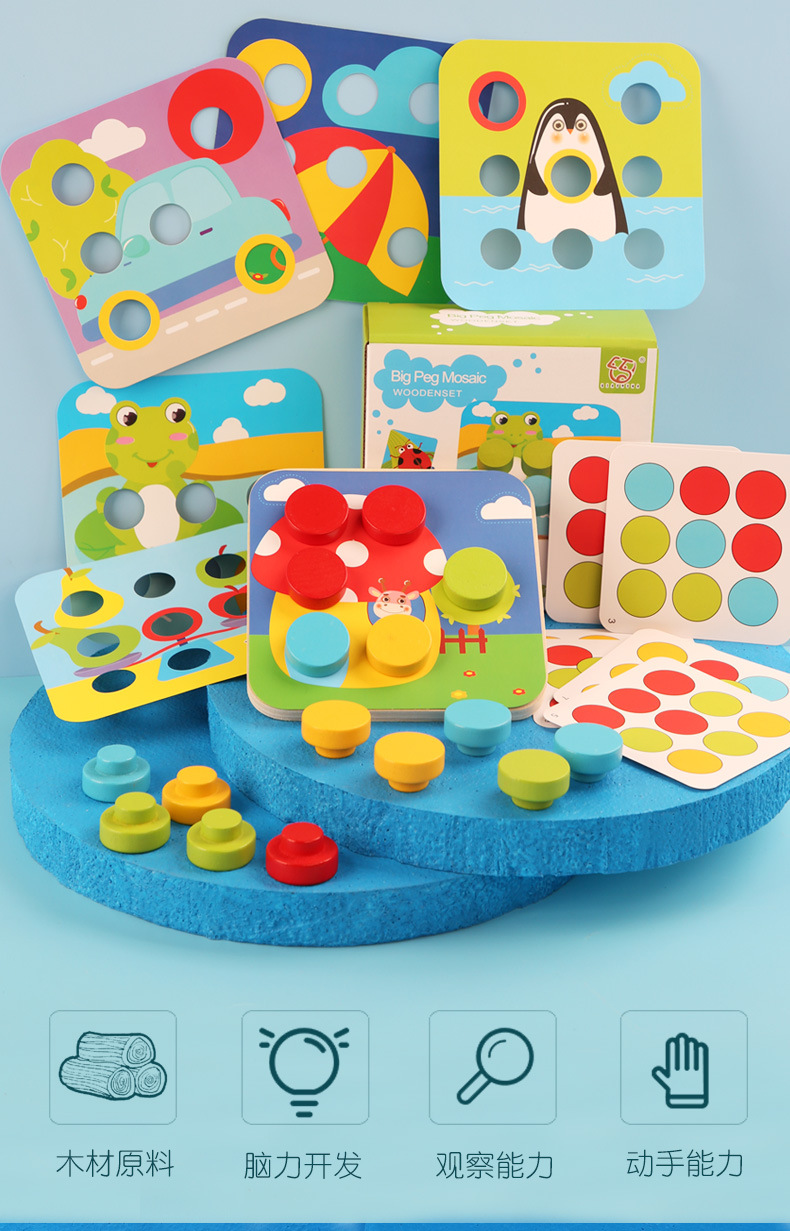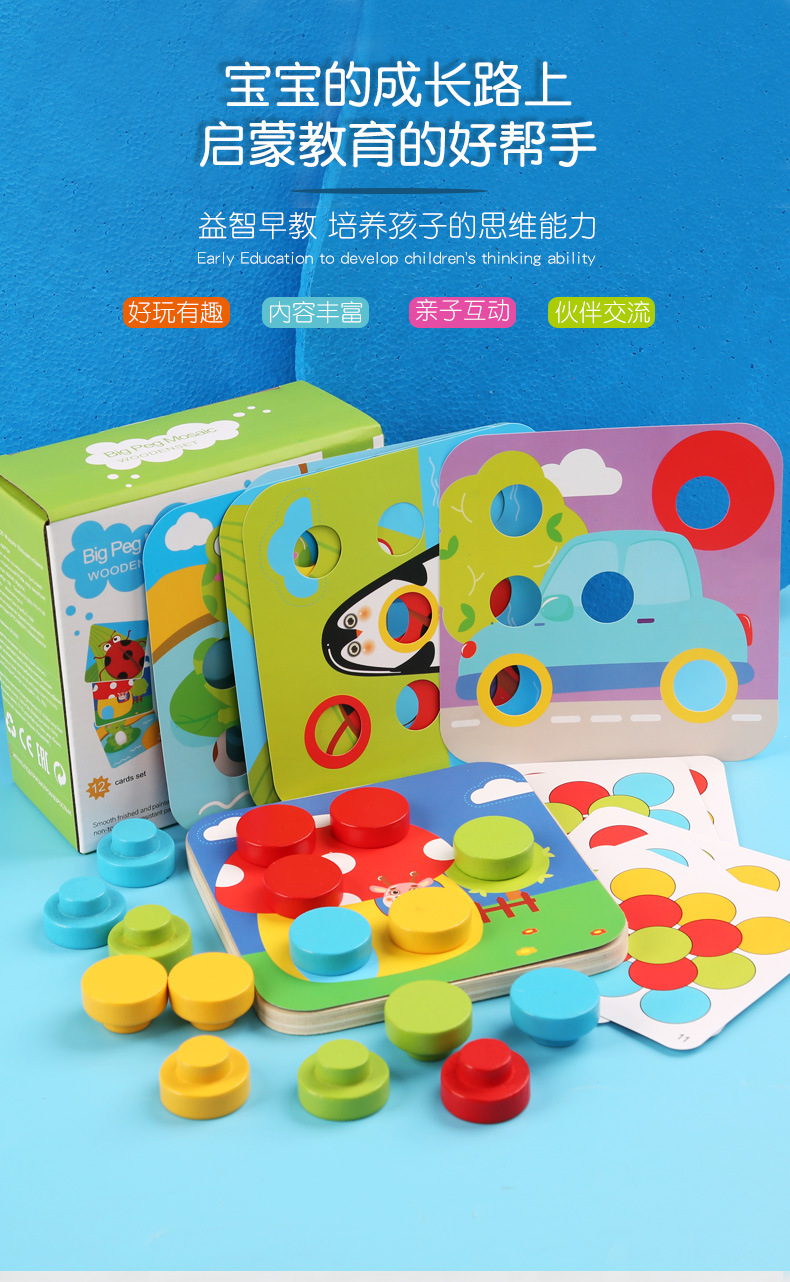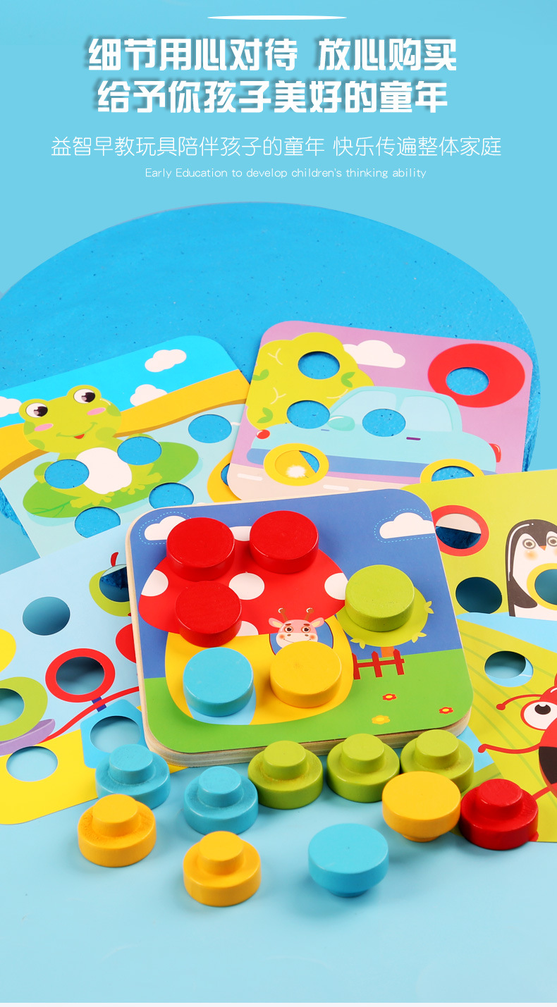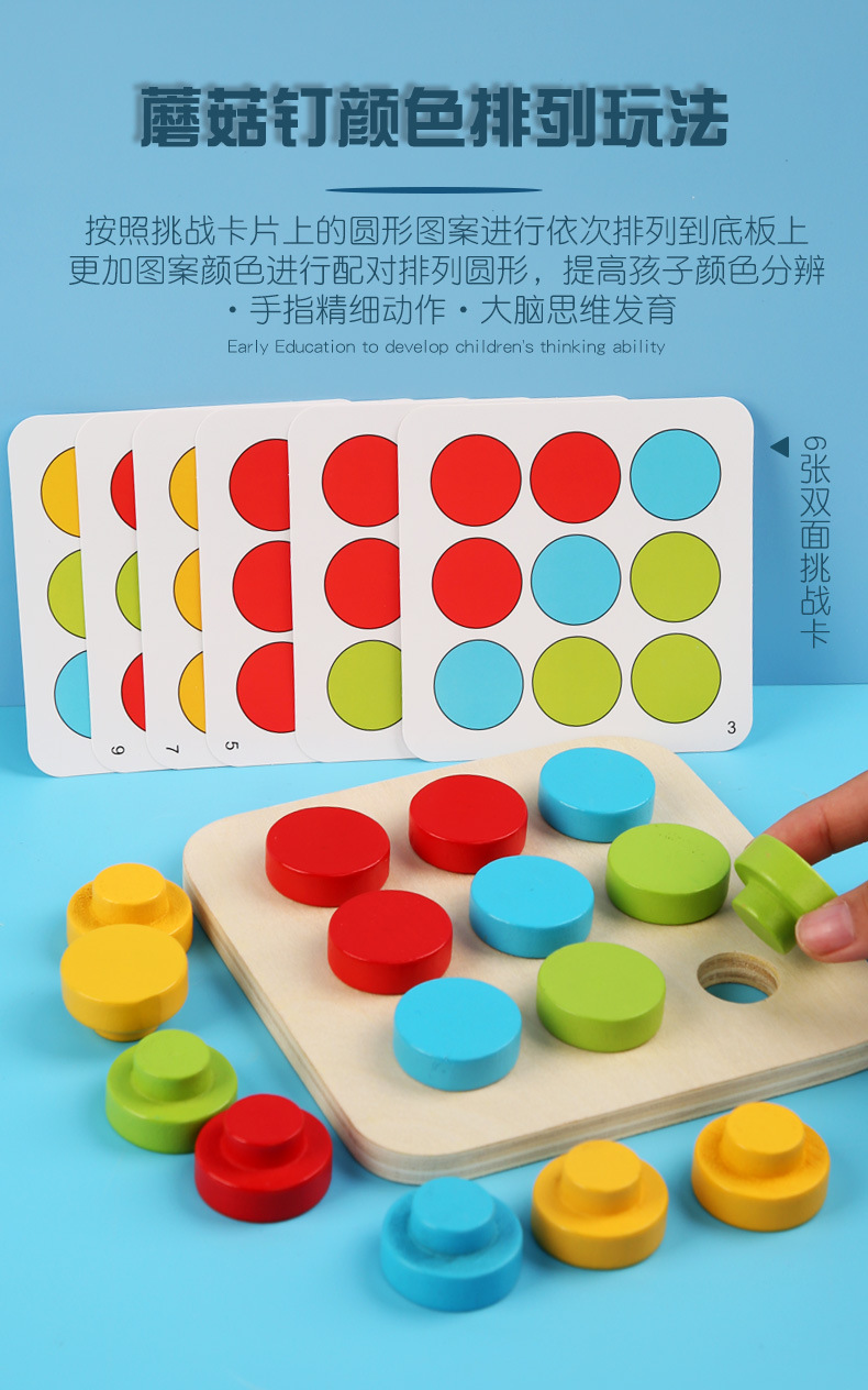 Gránulos grandes de madera transfronterizos rompecabezas creativo de clavos de hongos juguetes educativos inteligencia para niños rompecabezas grandes juguetes digitales