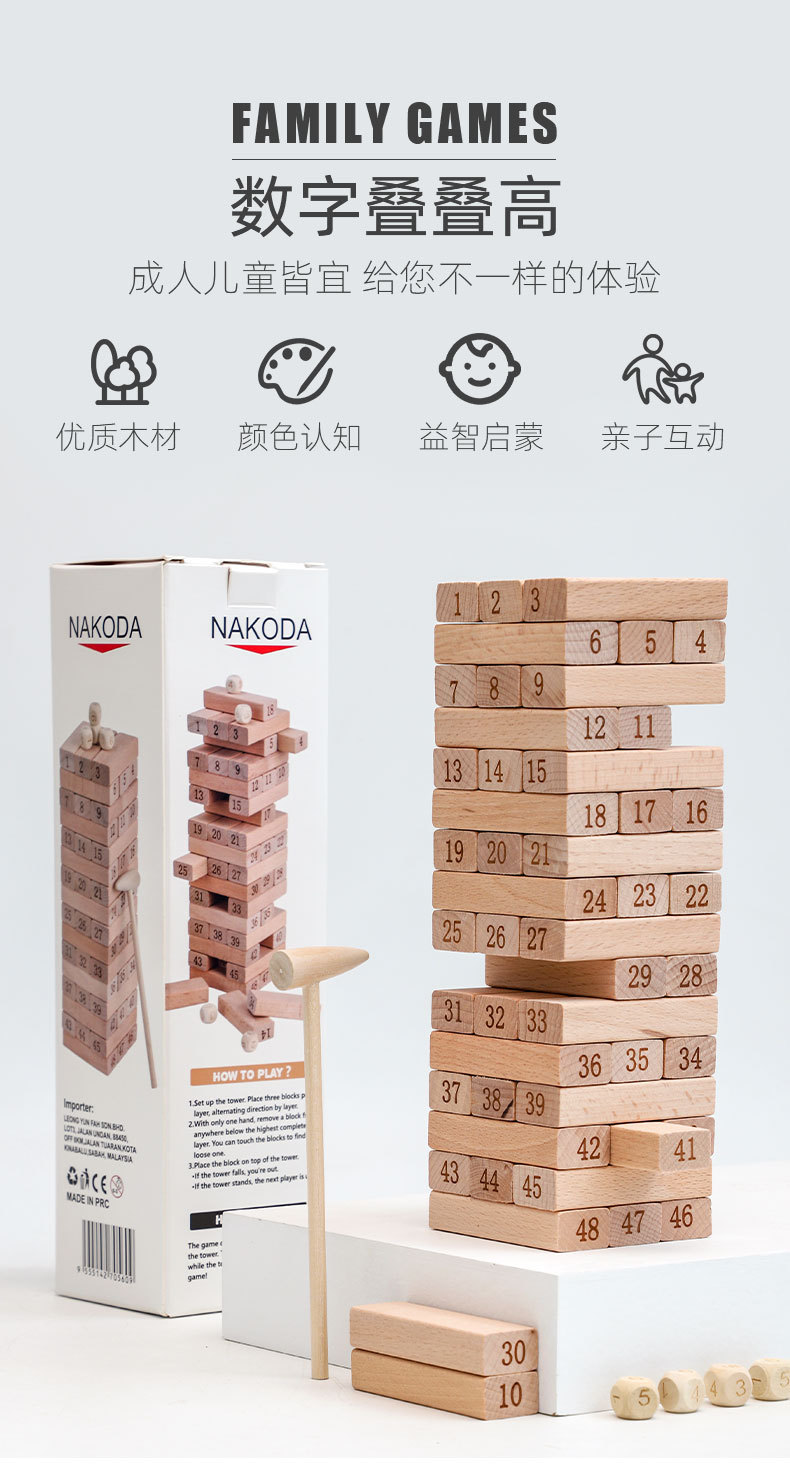 Bloques de construcción apilados digitales de haya juguetes educación temprana de los niños educativos de madera jengle escritorio casual juguetes entre padres e hijos