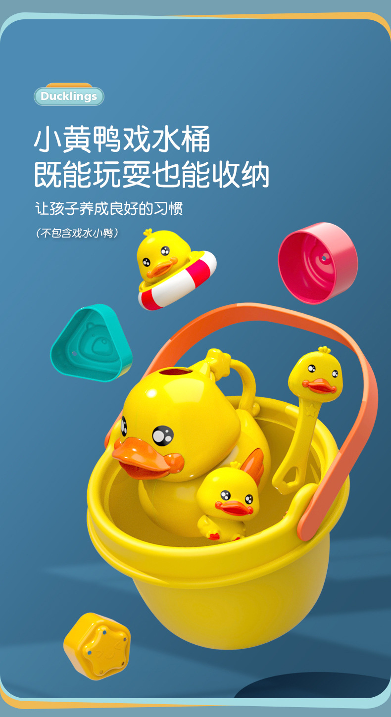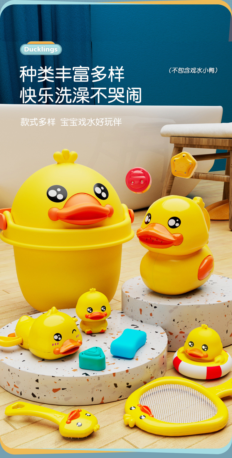 | Colores | Cubo de almacenamiento de pato amarillo (bolsa de red),Juego de ocho piezas de pato acuático (caja de color) |