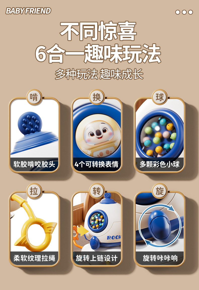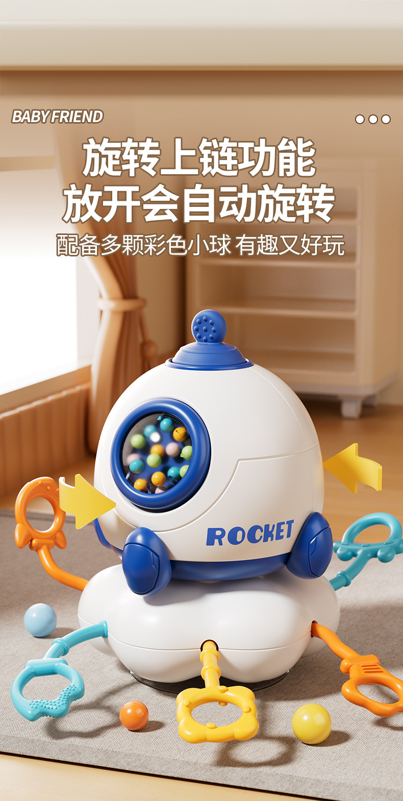 Cohete de bebé transfronterizo Lala Le Educación temprana Educación de la primera infancia Ejercicio de bola de extracción de dedo Juguete de música giratoria de ventosa