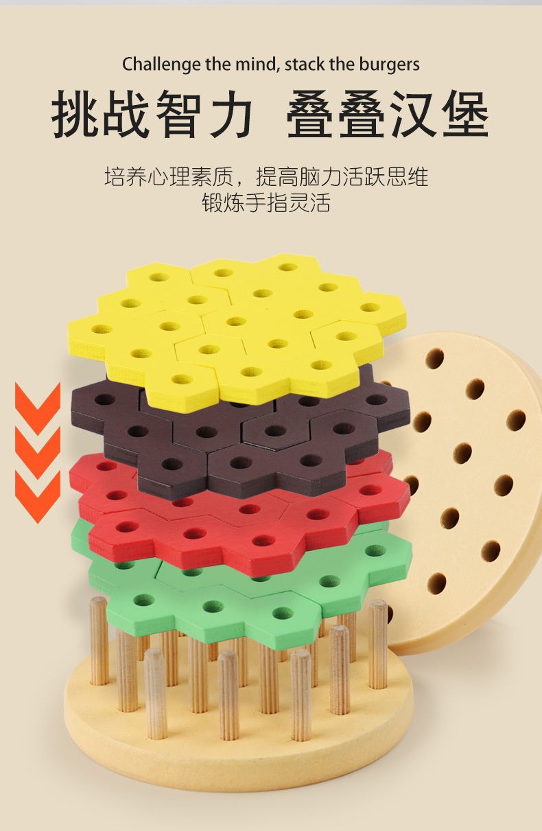 Interacción entre padres e hijos para niños Espacio de entrenamiento de pensamiento lógico Inteligencia Burger Puzzle Brain Bloques de construcción tridimensionales Puzzle Juguetes