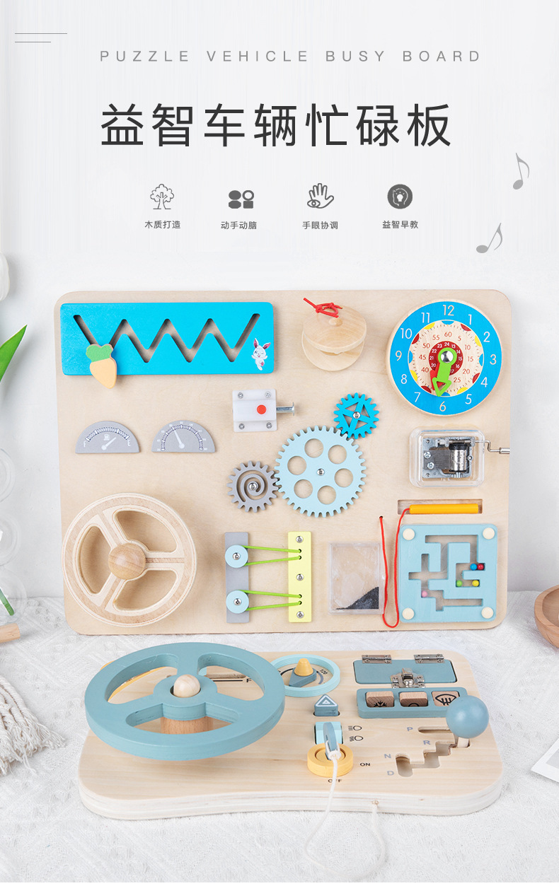 Weiweihu Cross-border car volante música tablero ocupado material didáctico Montessori desbloqueo de madera iluminación rompecabezas juguetes