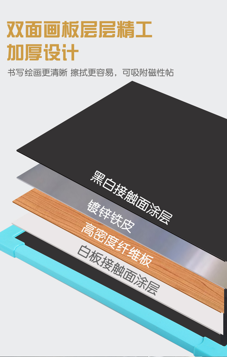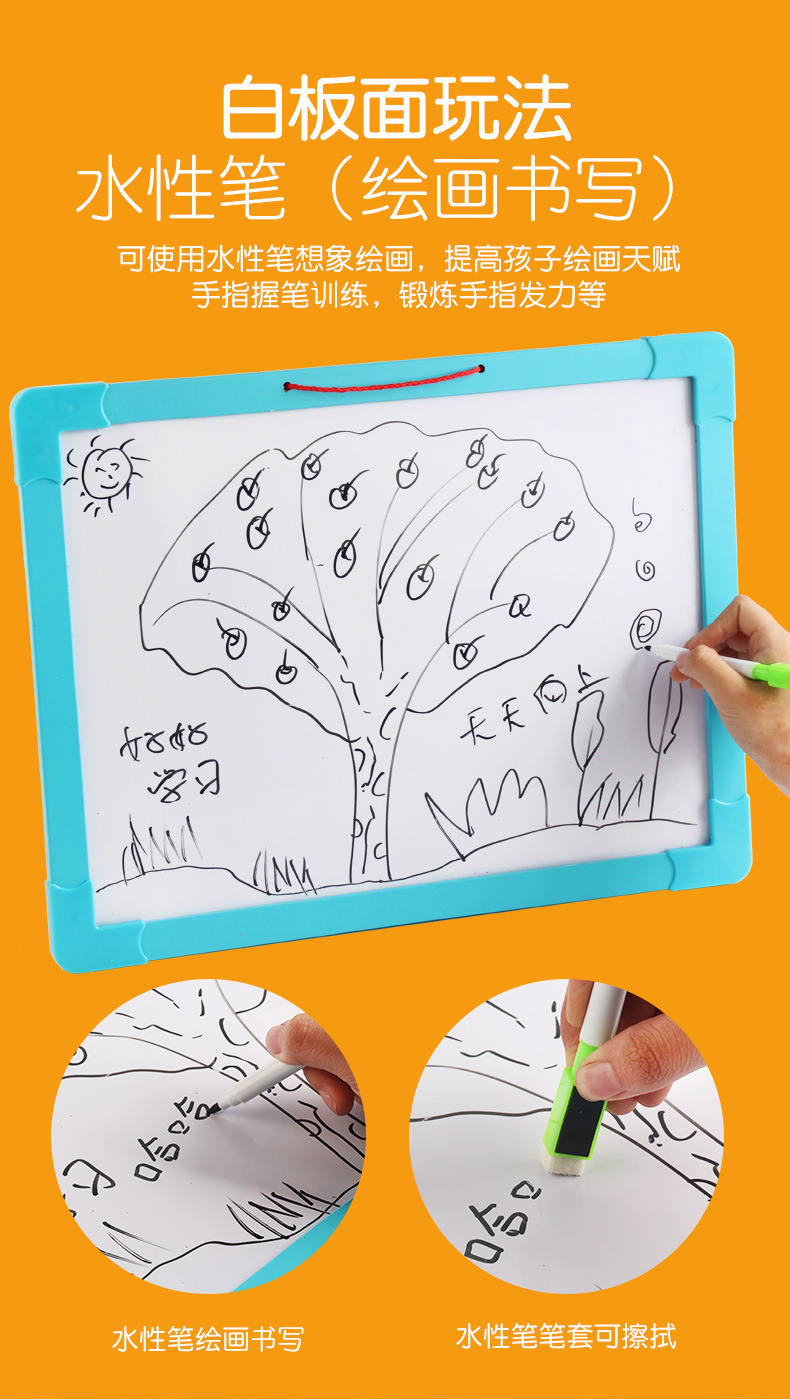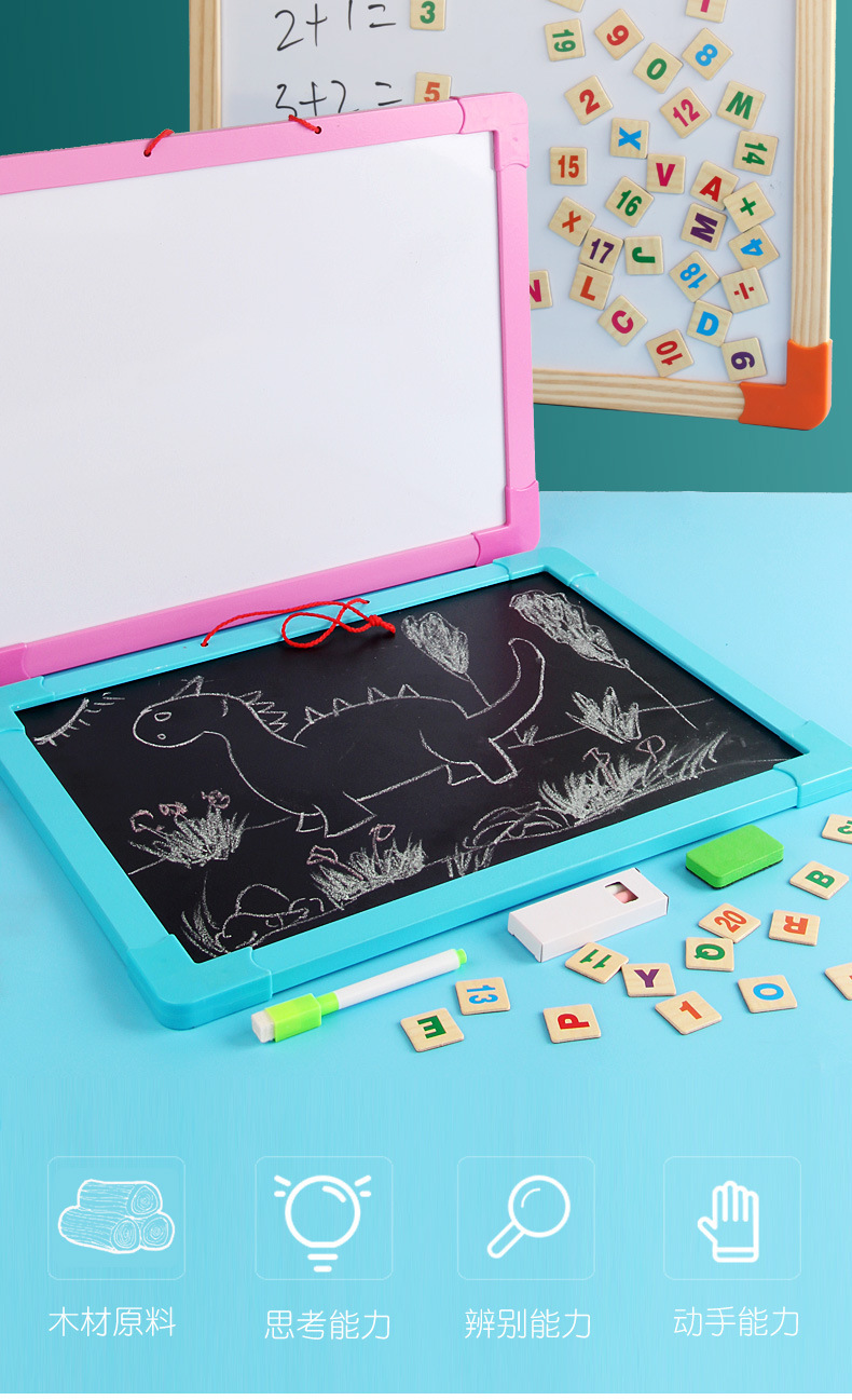 Weiweihu Children's Educación temprana de madera Tablero de graffiti de doble cara Tipo de esquina Tablero de dibujo en blanco y negro de almacenamiento portátil magnético de doble cara