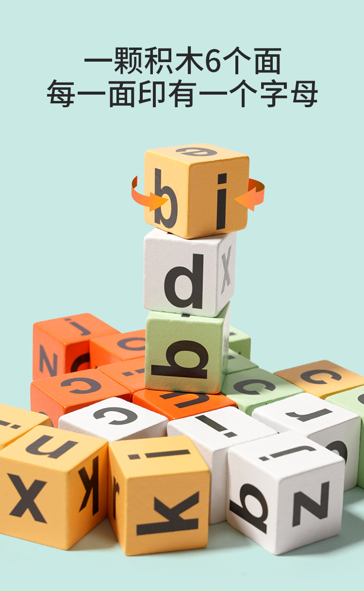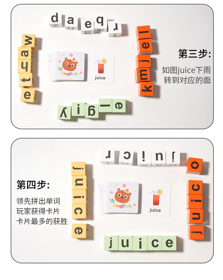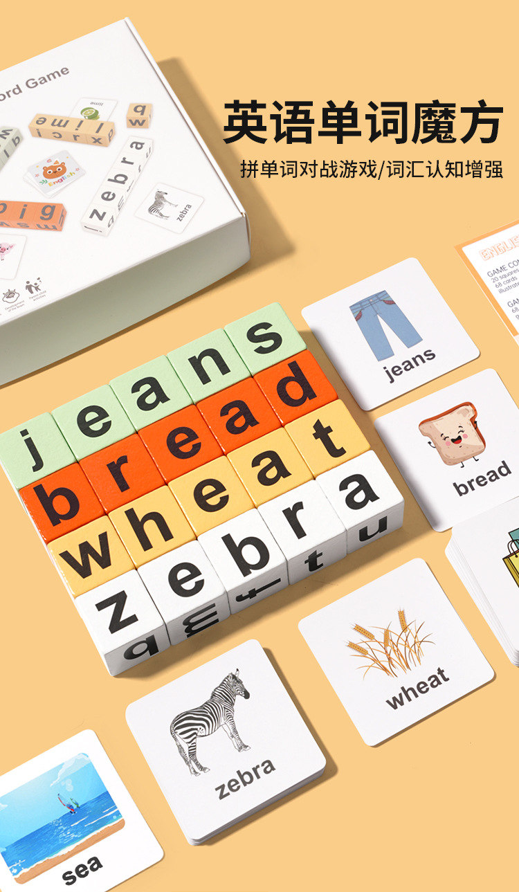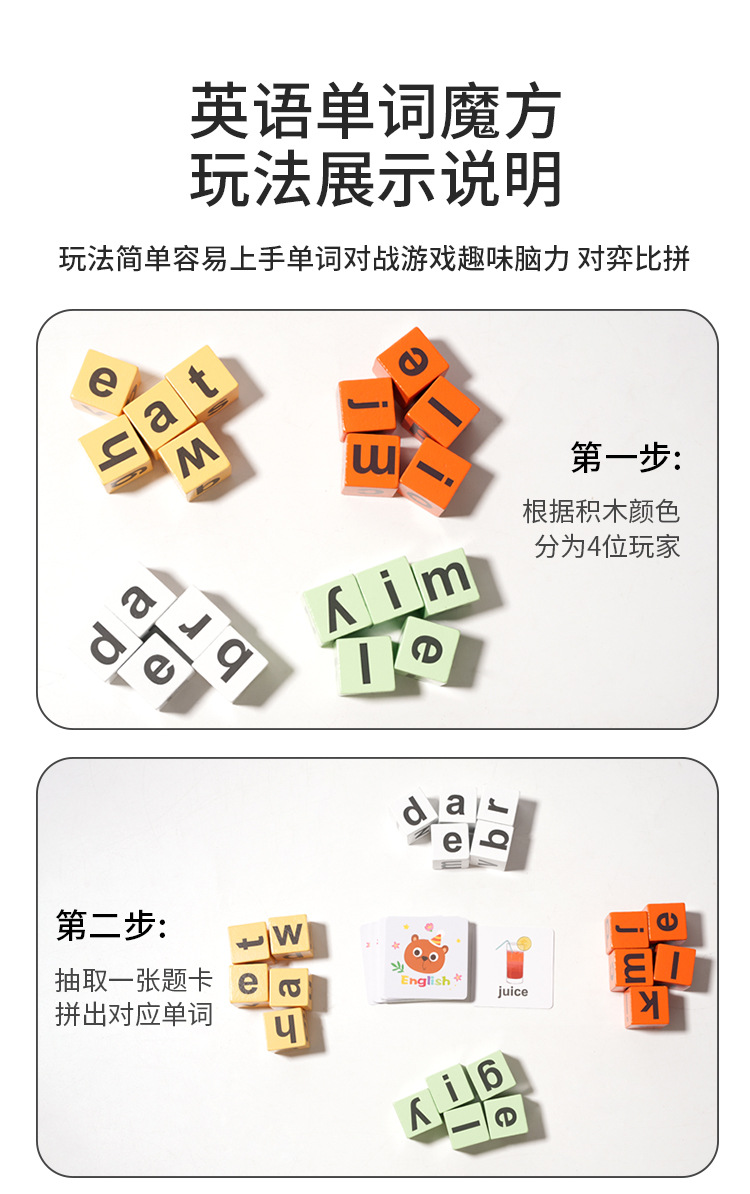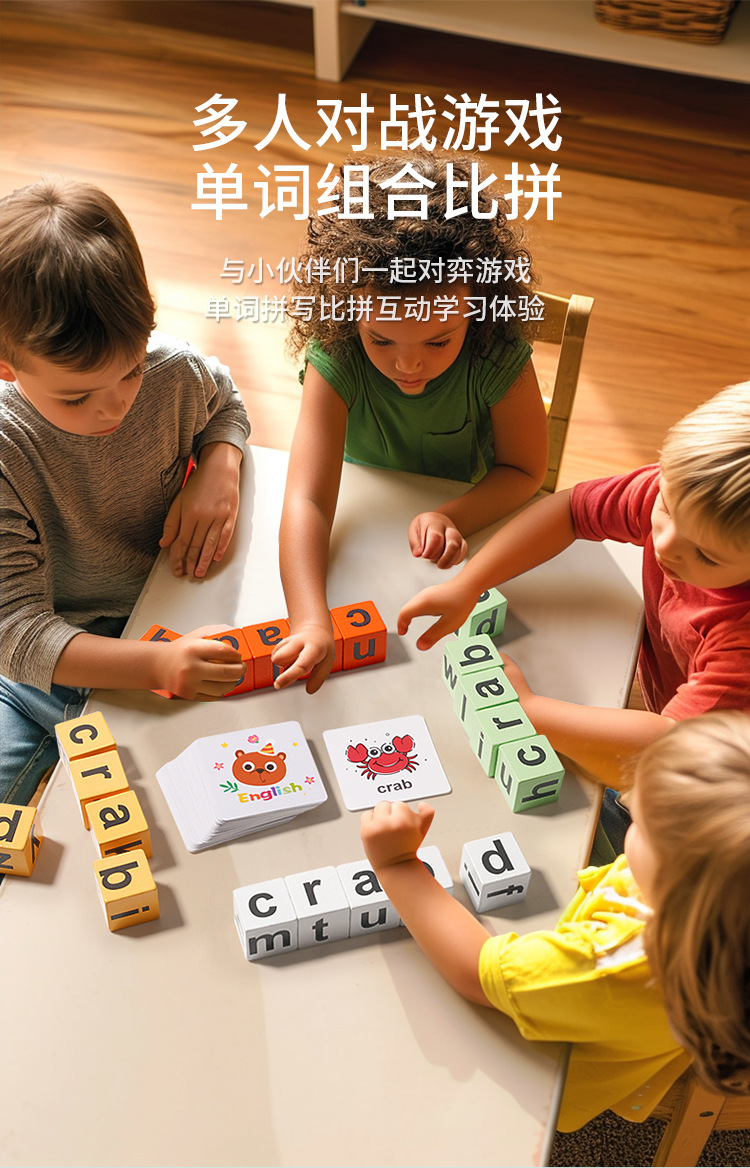 Tarjeta de palabra en inglés para niños juguete de palabra de madera Montessori Educación temprana carta cubo batalla de varias personas Juego de mesa