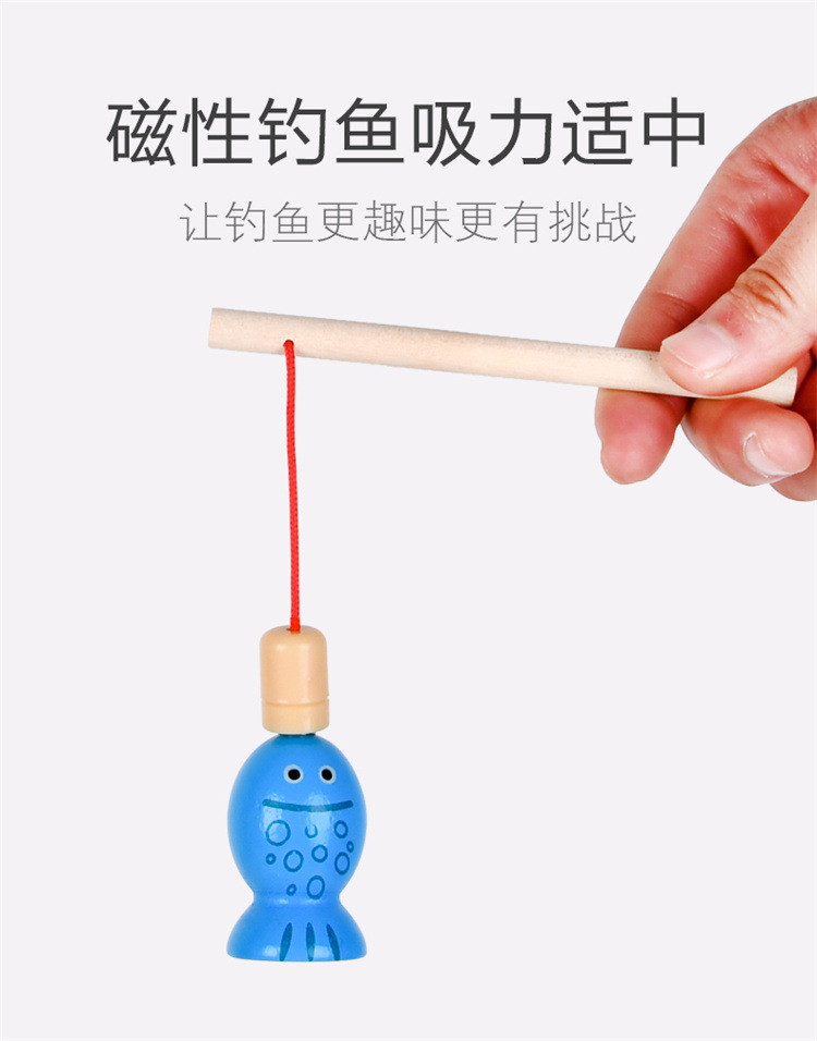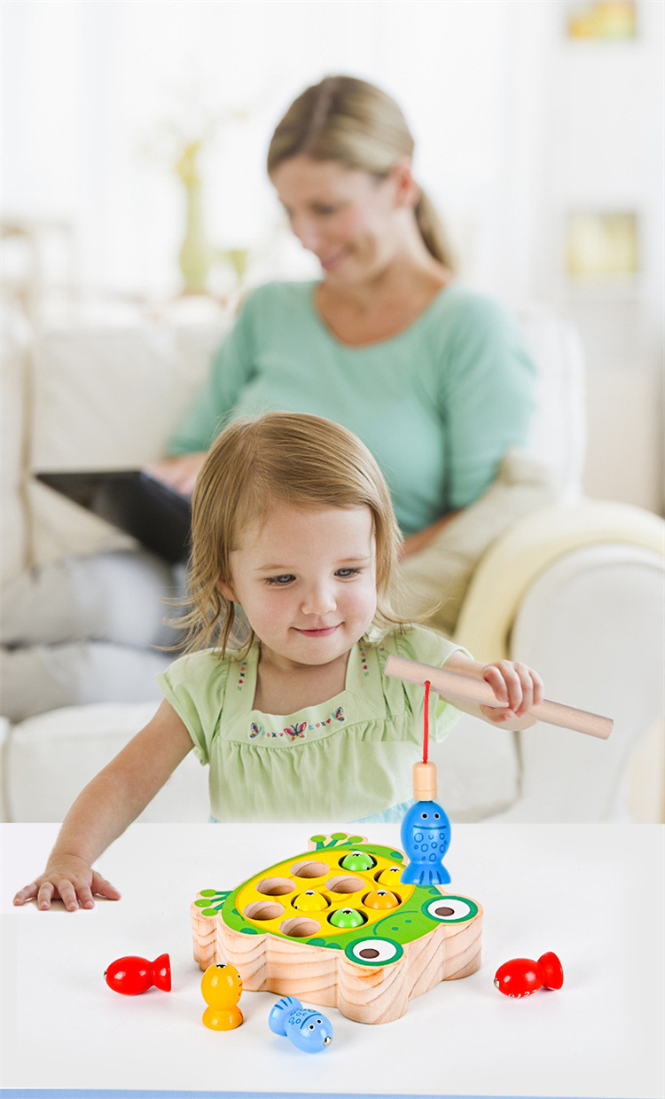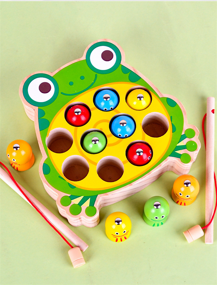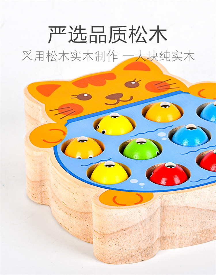 Educación temprana de madera para niños transfronterizos desarrollo de inteligencia Rana gatito pesca varilla de pesca magnética entrenamiento de escritorio juguetes educativos