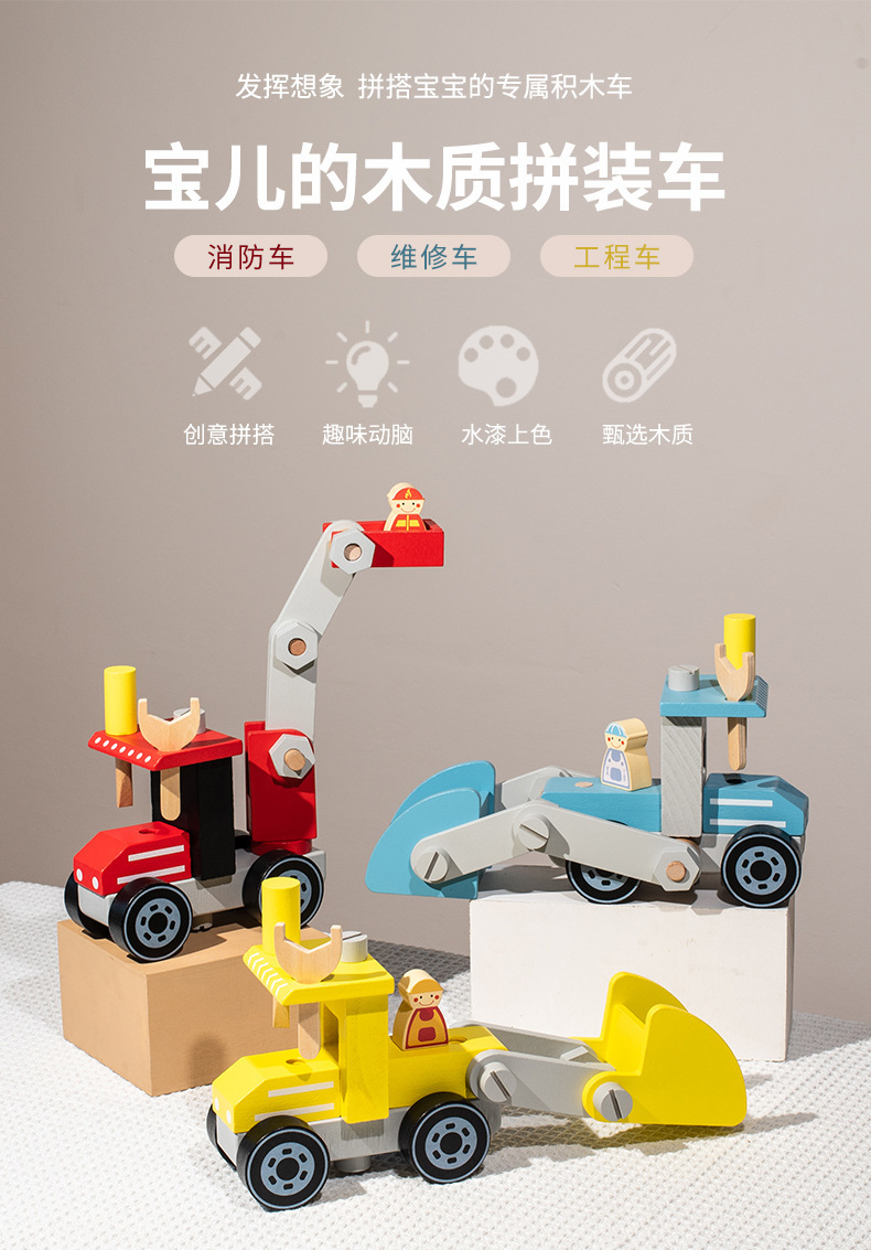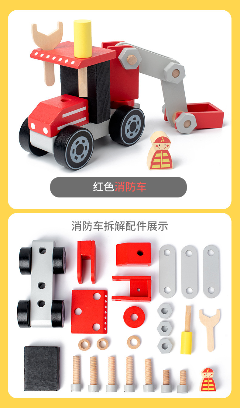 Simulación de madera para niños montaje coche bulldozer mantenimiento coche camión de bomberos Educativo Educación Temprana jardín de infantes jugar casa Juguetes