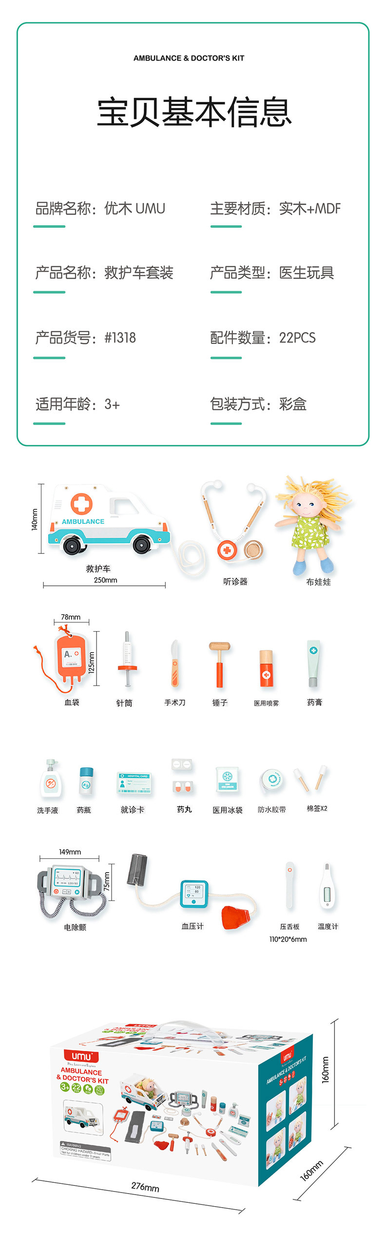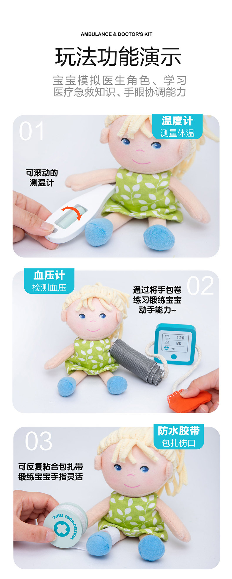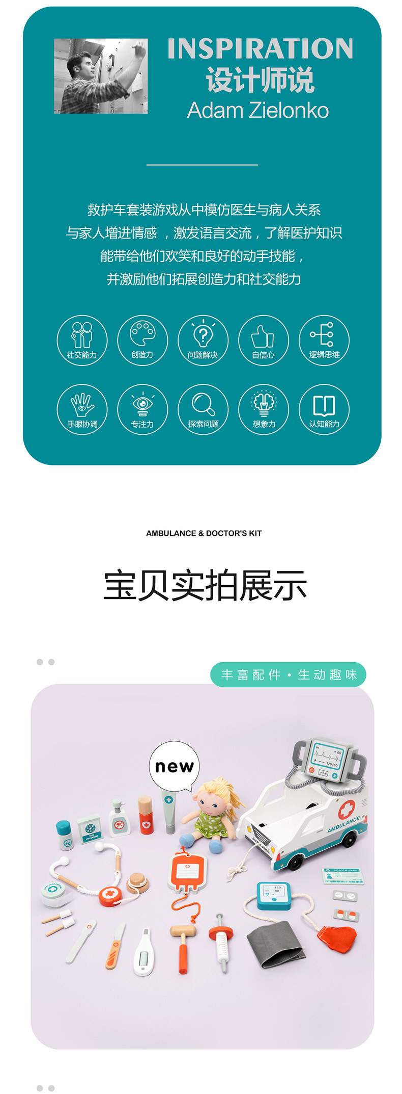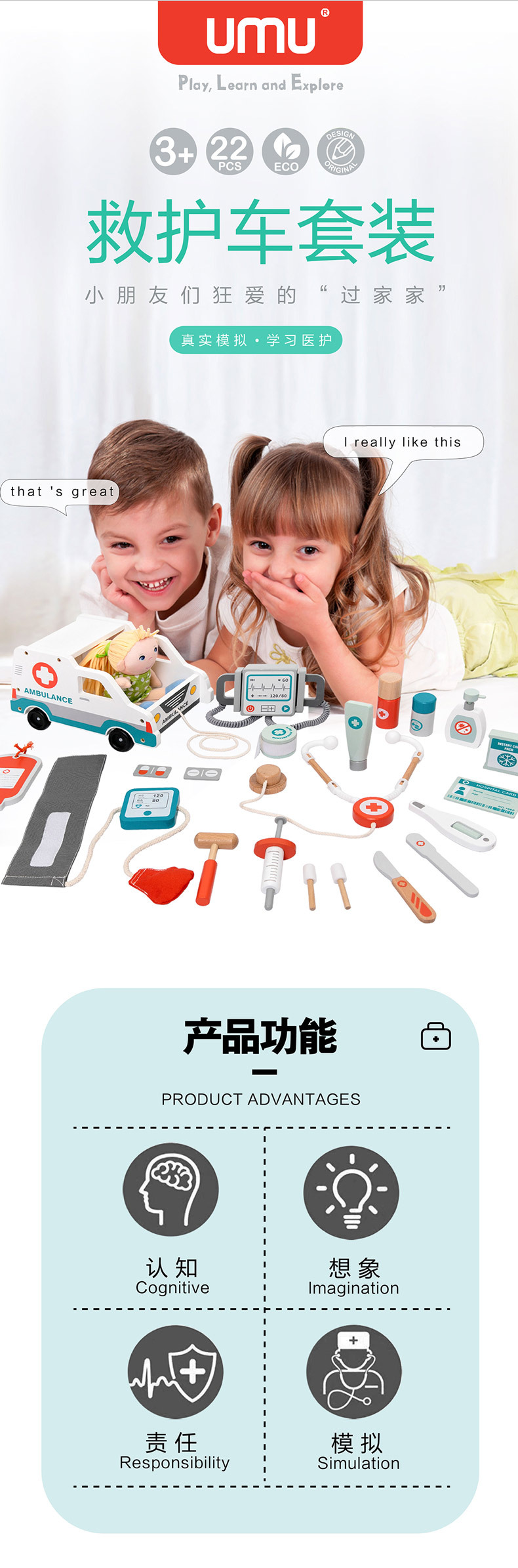 Simulación de madera transfronteriza ambulancia médico juguete ingeniero simulación profesional juego de la casa niños rompecabezas interacción
