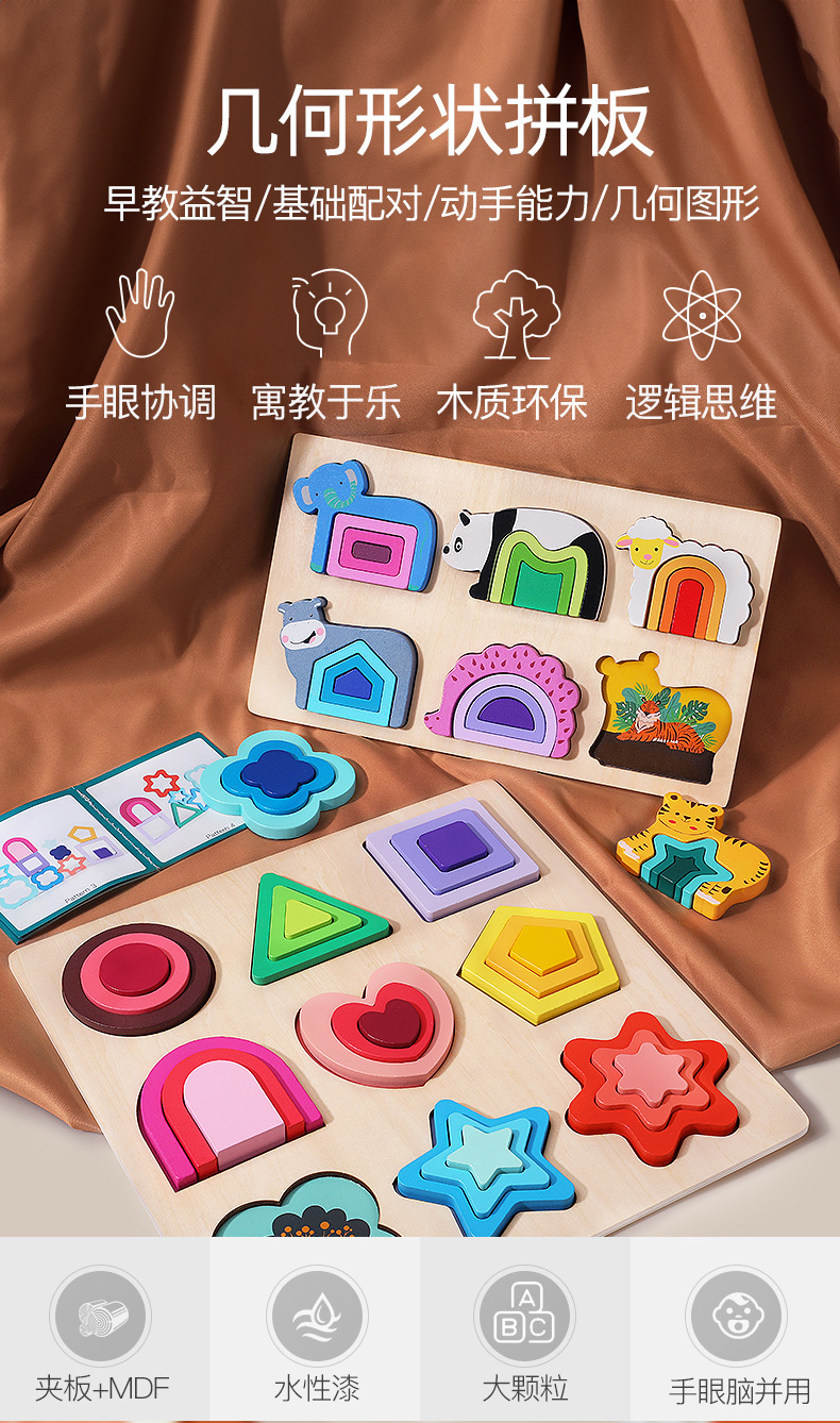 Juguetes de educación temprana rompecabezas convexo forma geométrica cognitiva a juego bebé 1-3 años juguetes de madera