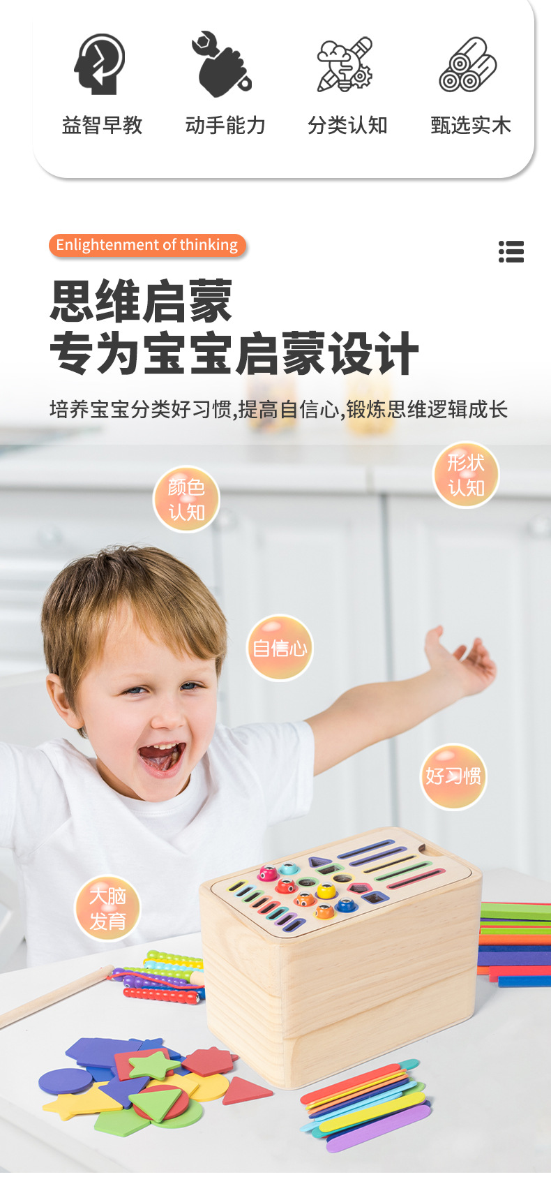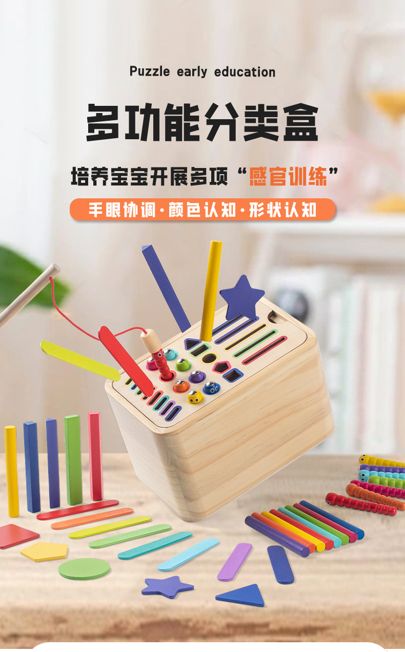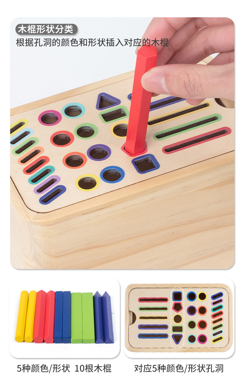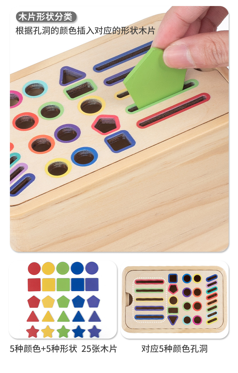 Weiweihu Children's Puzzle Caja de clasificación multifuncional Montessori Educación temprana Palillo de madera Forma Color Caja de monedas Juguetes de madera