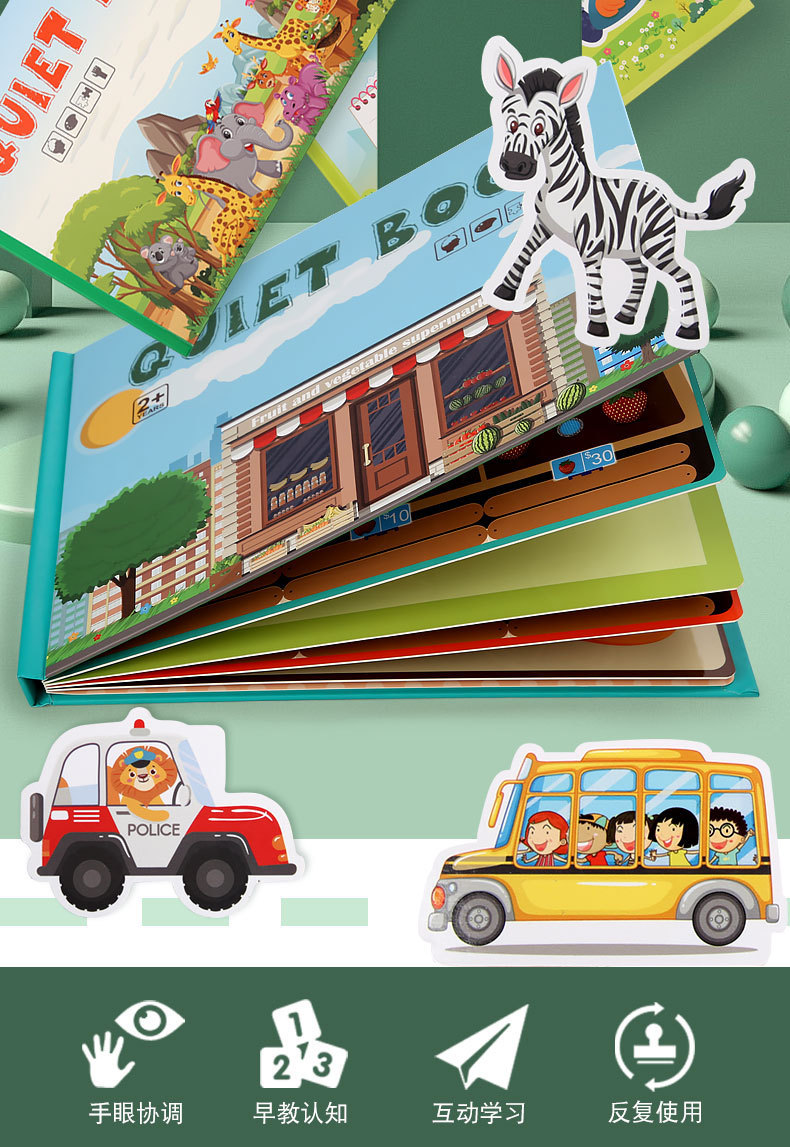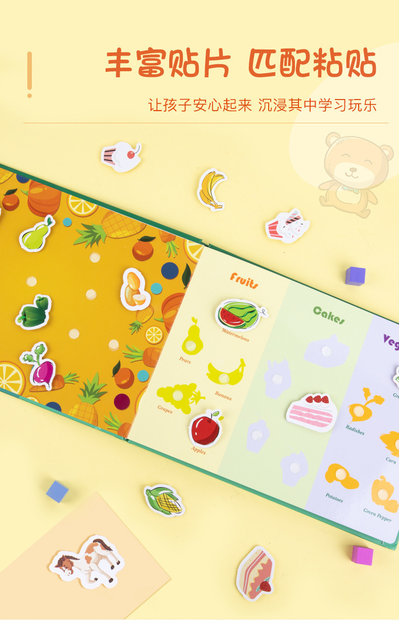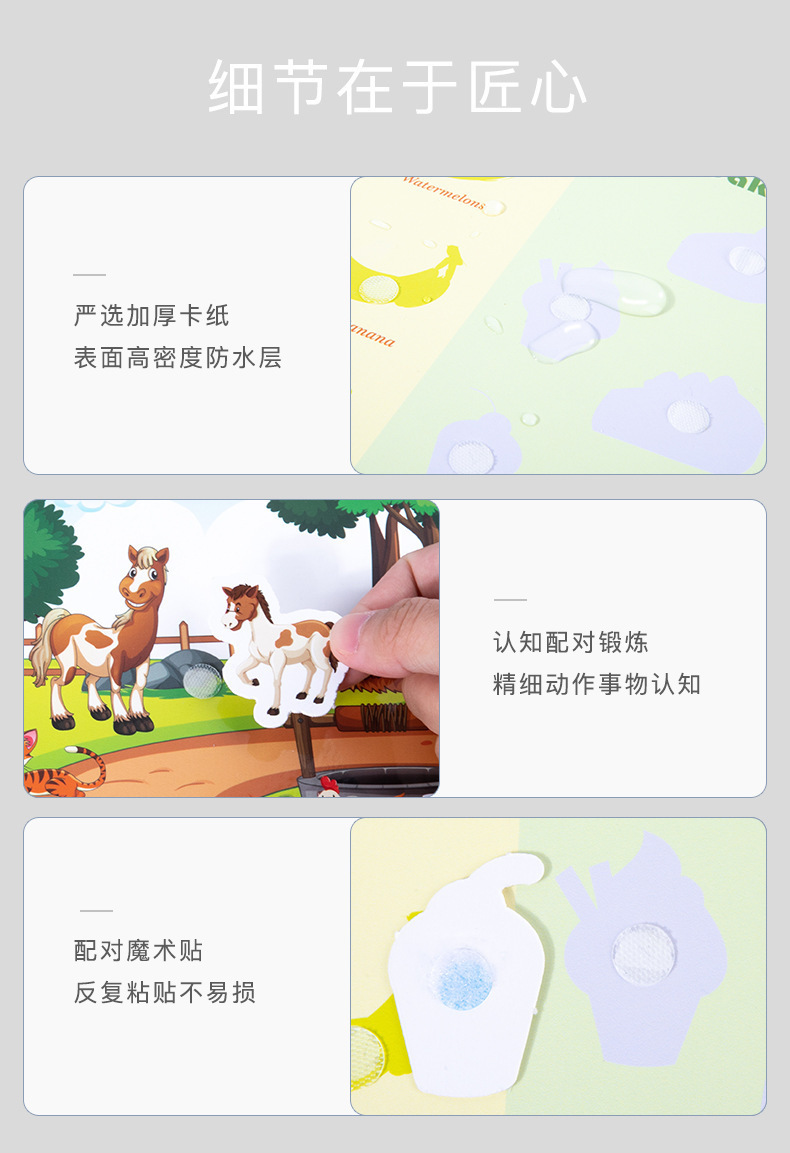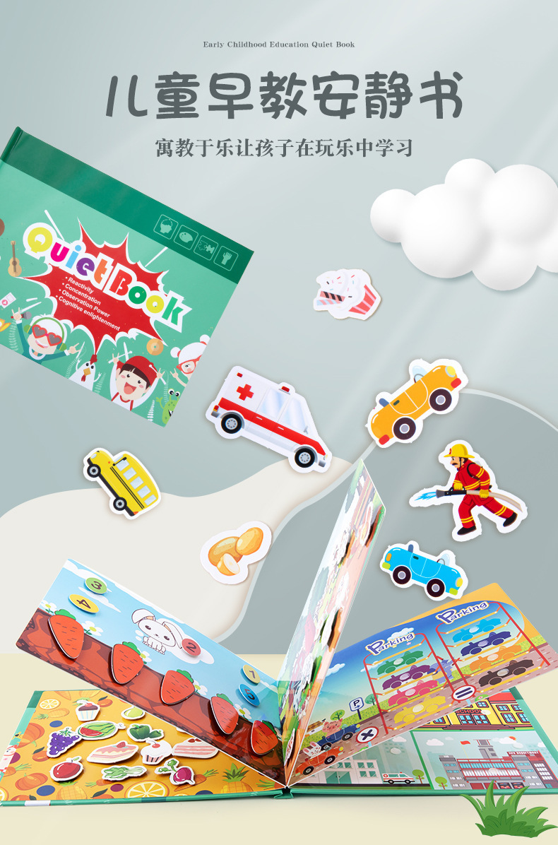 Libro de calcomanías transfronterizo Libro tranquilo 0,43 libro ocupado juguetes educativos para niños repetidamente pegar libro alfabetización 3-6 años