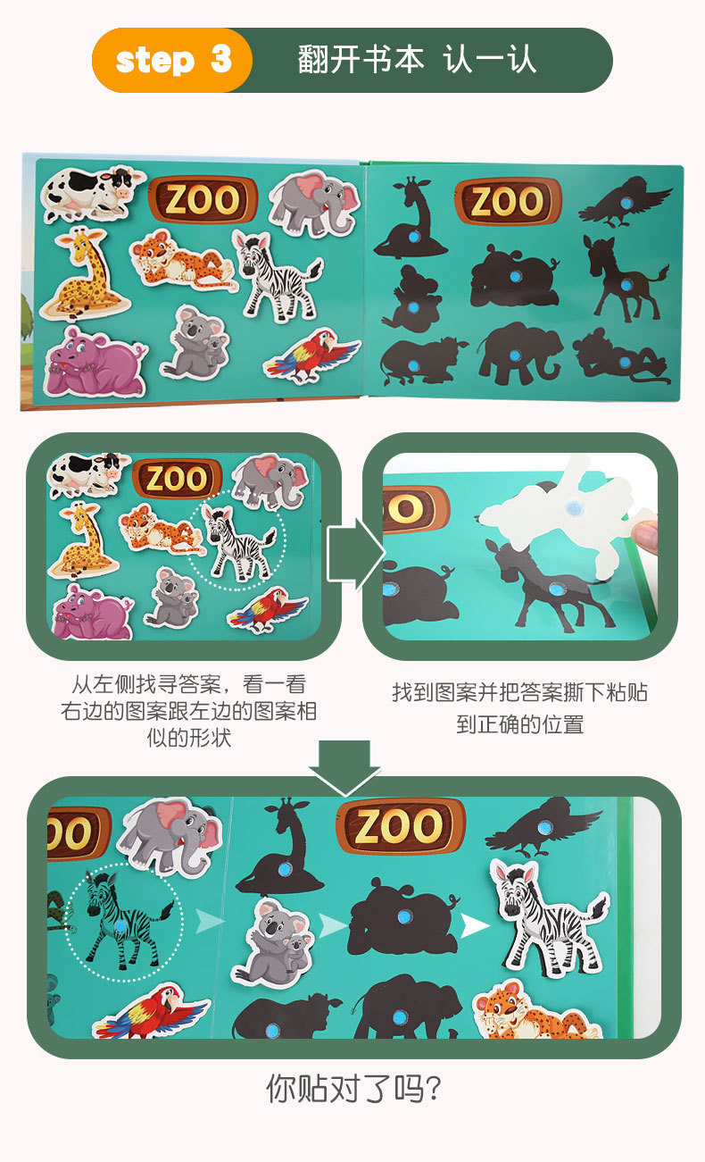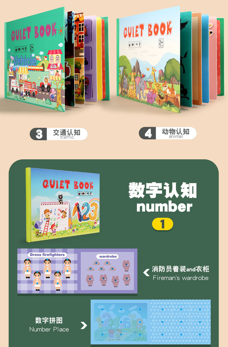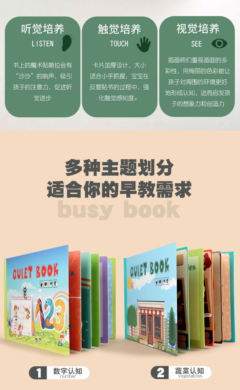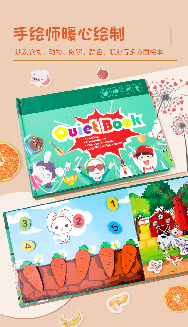 Libro de calcomanías transfronterizo Libro tranquilo 0,43 libro ocupado juguetes educativos para niños repetidamente pegar libro alfabetización 3-6 años