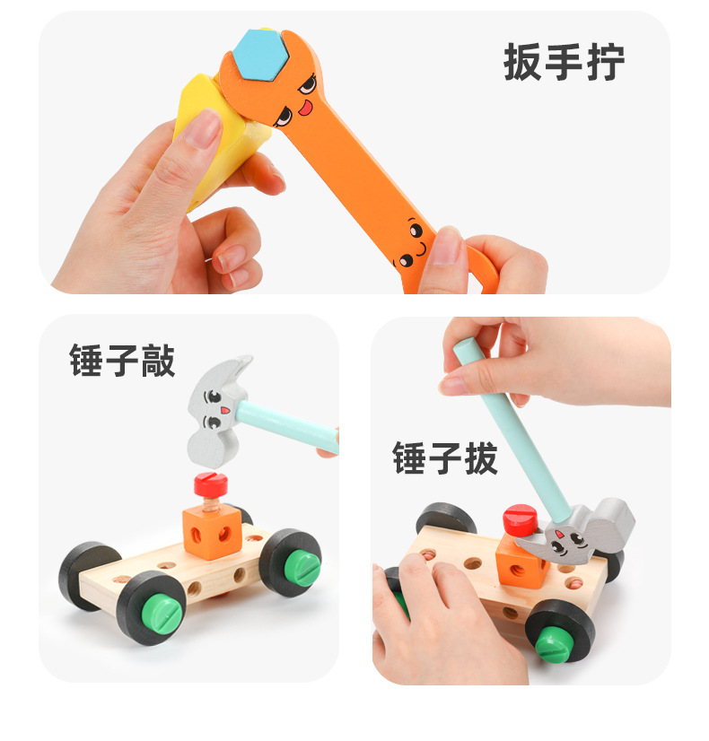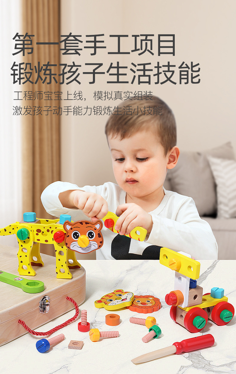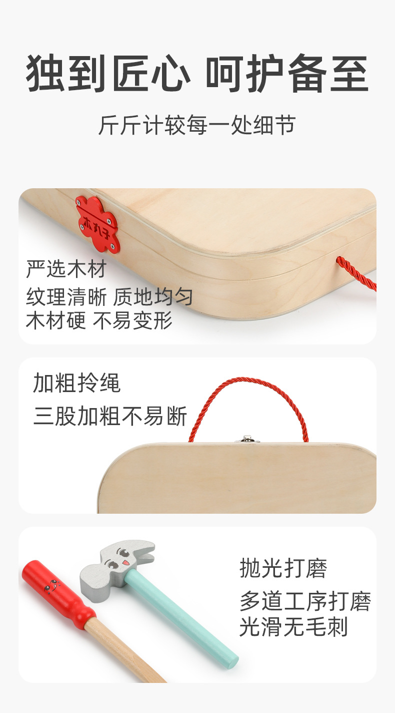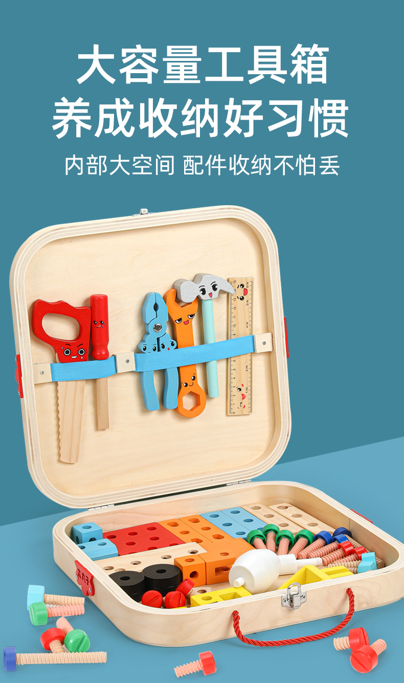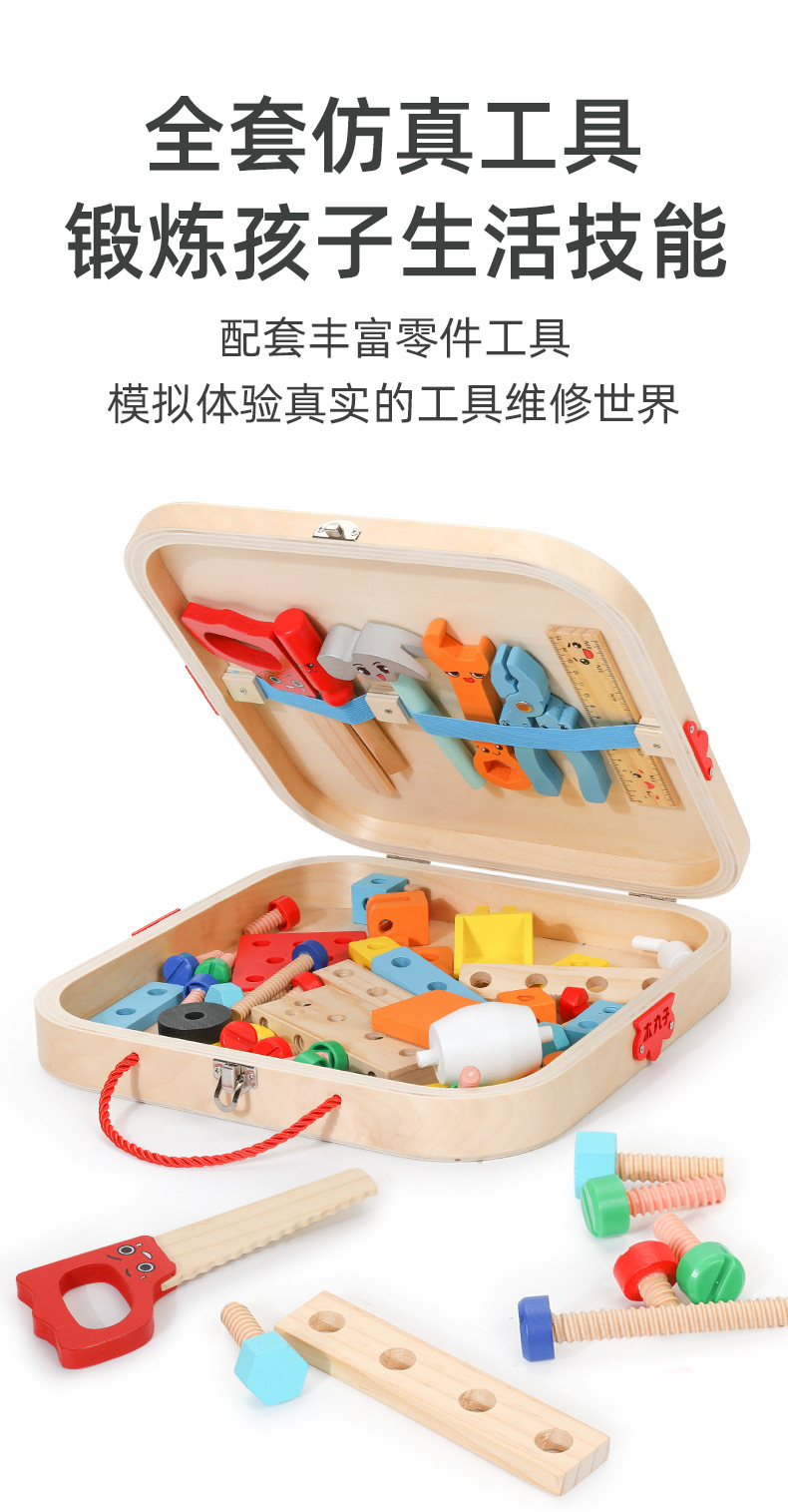Caja de madera portátil para niños de madera, caja de herramientas, tornillo, desmontaje y reparación, juguete multifuncional de bricolaje para niños