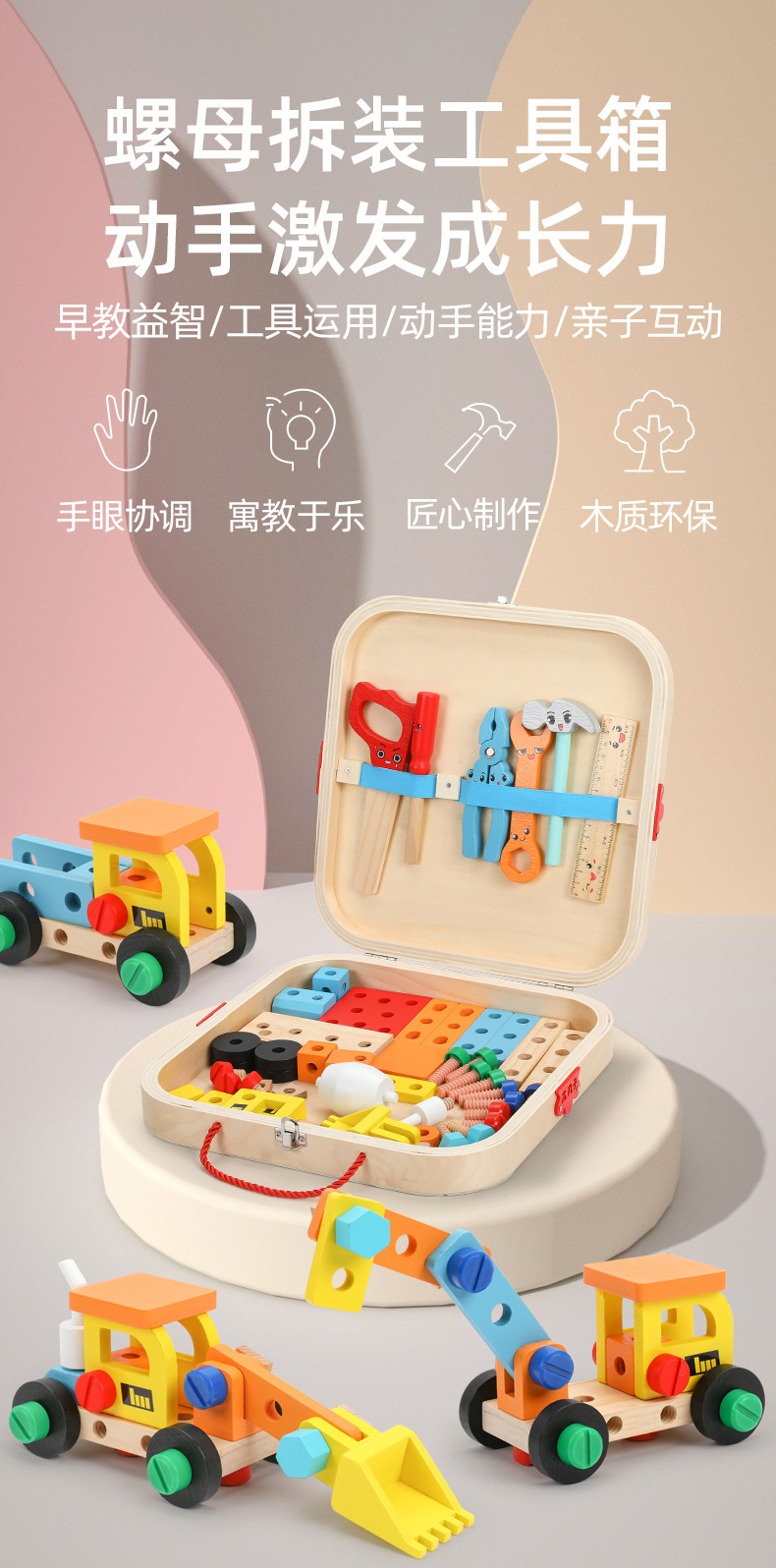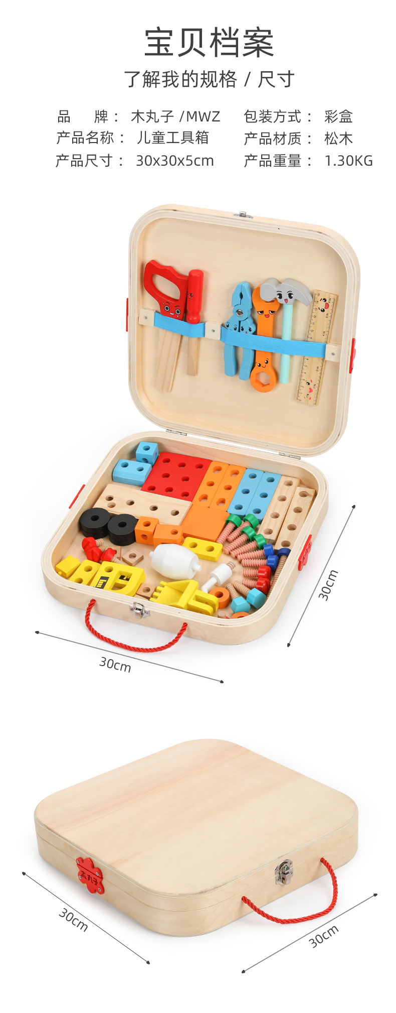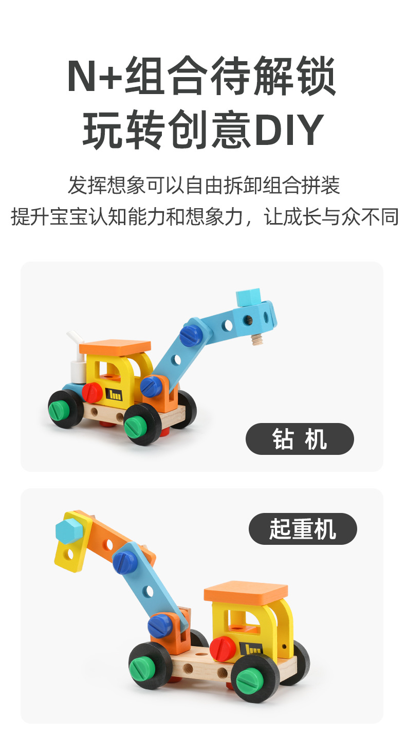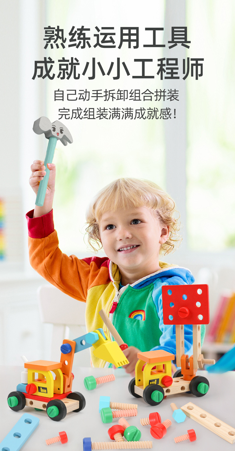 Caja de madera portátil para niños de madera, caja de herramientas, tornillo, desmontaje y reparación, juguete multifuncional de bricolaje para niños