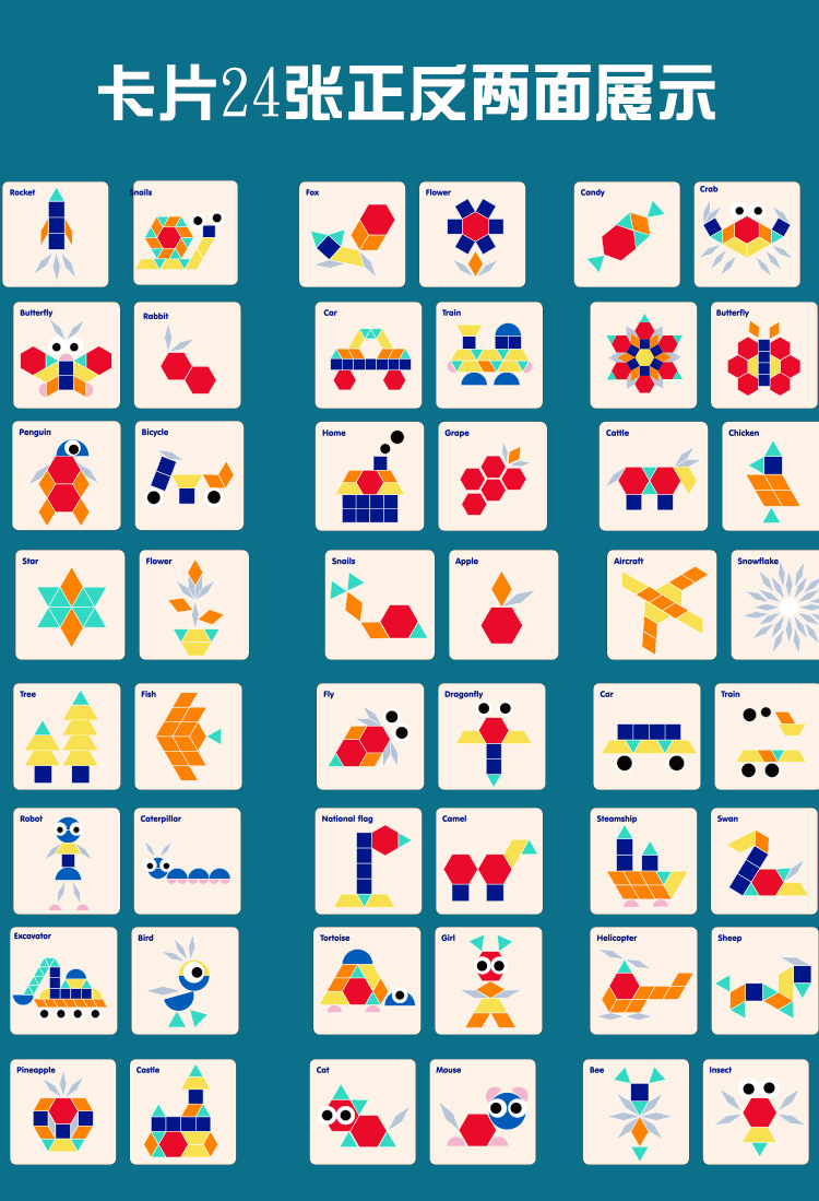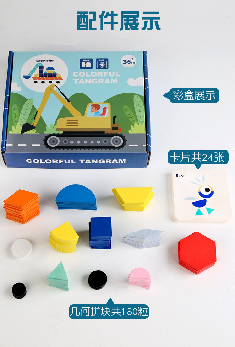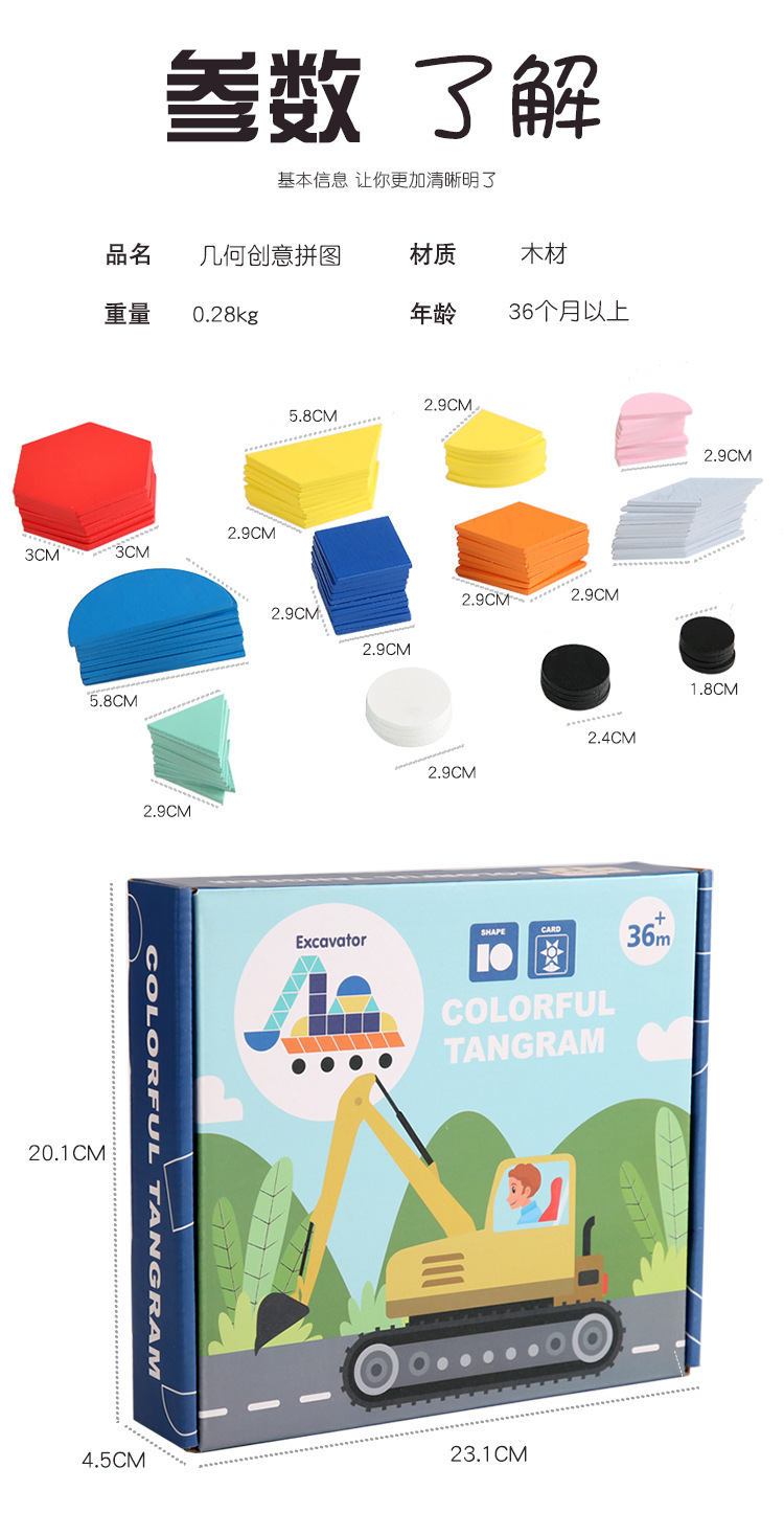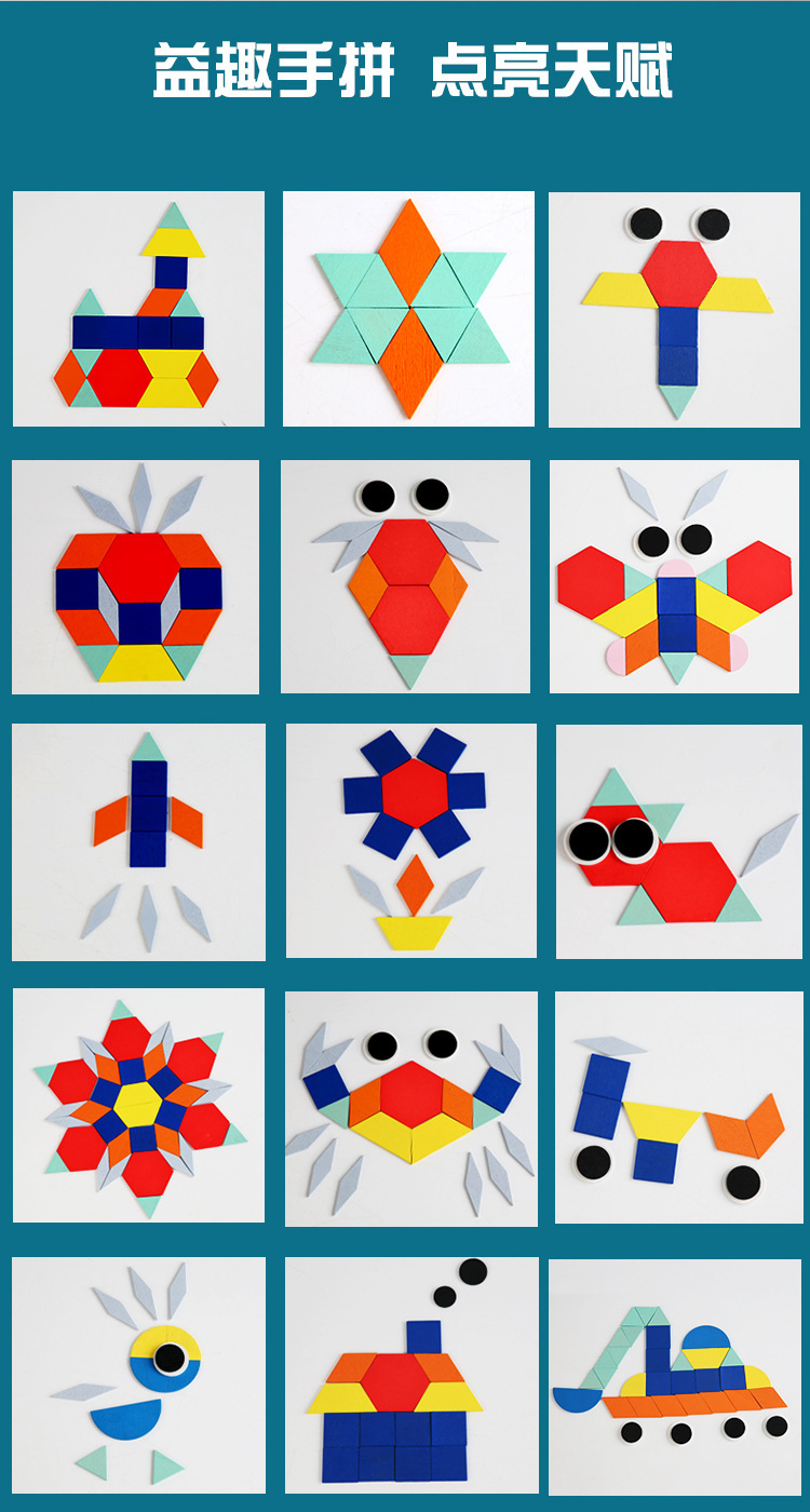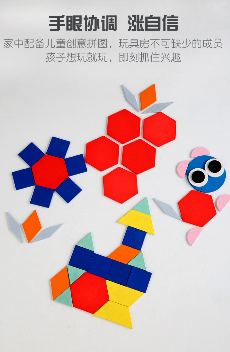 Weiwei Tiger Wood Play Rompecabezas creativo para niños Kindergarten Formas geométricas Tangram Amazon Venta caliente Juguetes educativos