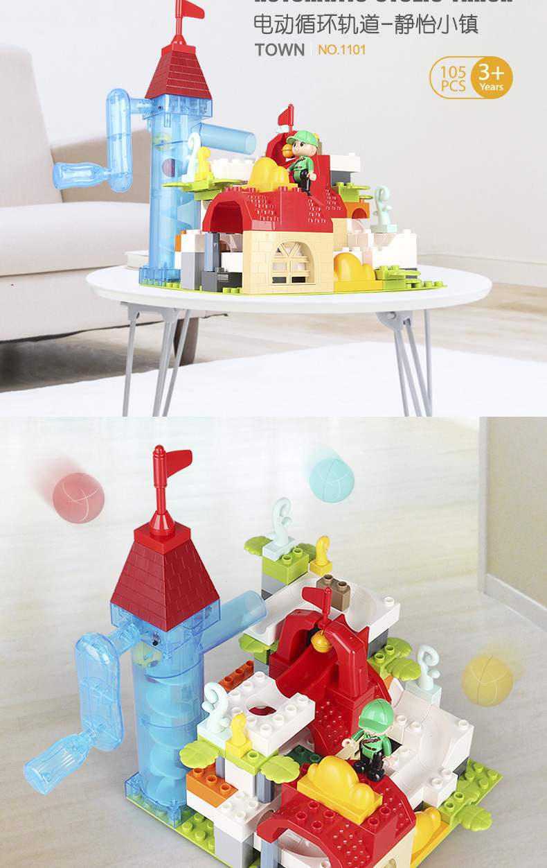 Juego de bloques de construcción de partículas grandes para niños mesa de bloques de construcción ensamblados bebé pista eléctrica bloques de construcción de Castillo caja de regalo rompecabezas
