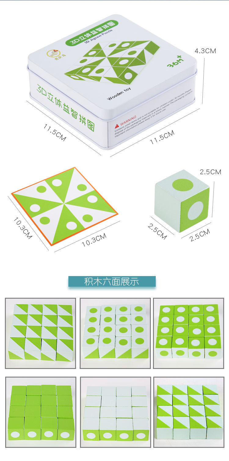 Rompecabezas rompecabezas de madera para niños dibujo de seis lados 16 rompecabezas de pensamiento 3D tridimensional forma de dibujos animados educación temprana juego de mesa para bebés