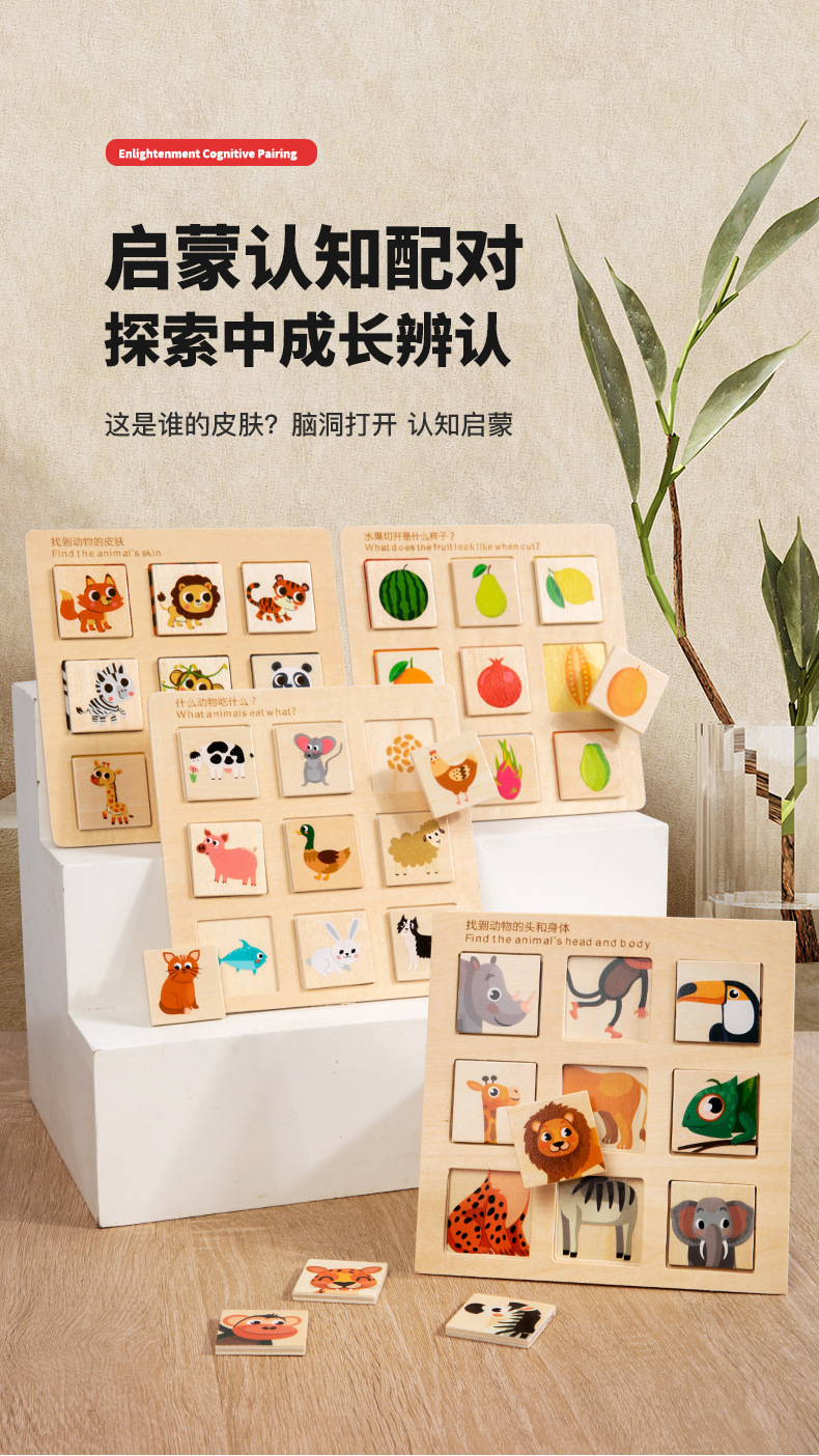 Niños de madera Montessori enseñanza pensamiento lógico rompecabezas a juego tablero fruta cognición animal kindergarten juguetes educativos