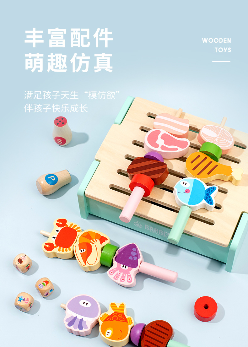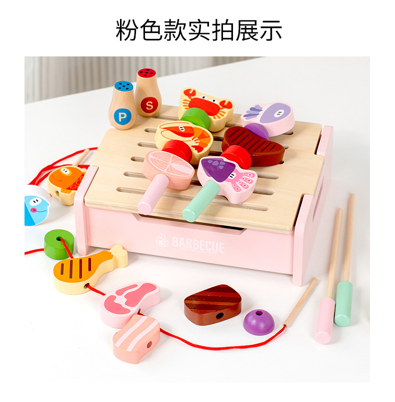 Casa de juegos para niños juguete de simulación de cocina de madera multifuncional con cuentas conjunto de herramientas de barbacoa Niños y niñas de 3 a 6 años de edad 2