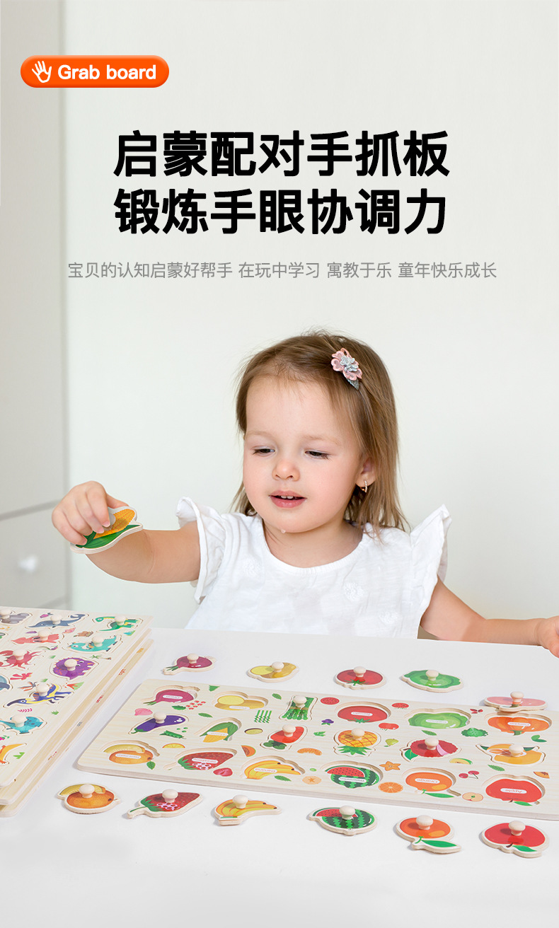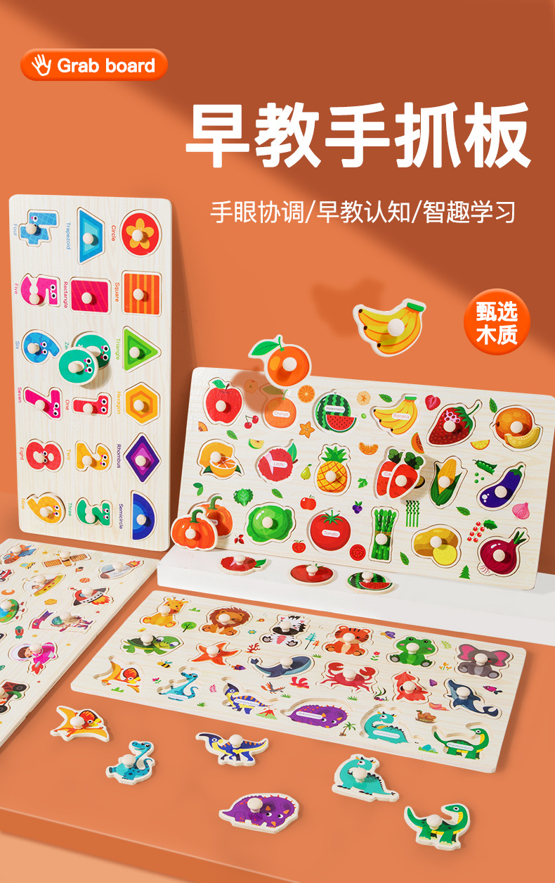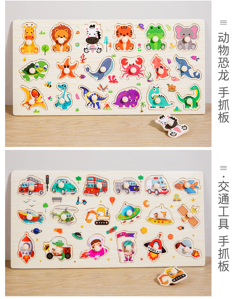 Grandes incrustados de madera de los niños tablero de la mano del rompecabezas bloques de construcción rompecabezas de desarrollo de inteligencia bebé juguetes de educación temprana cognitiva