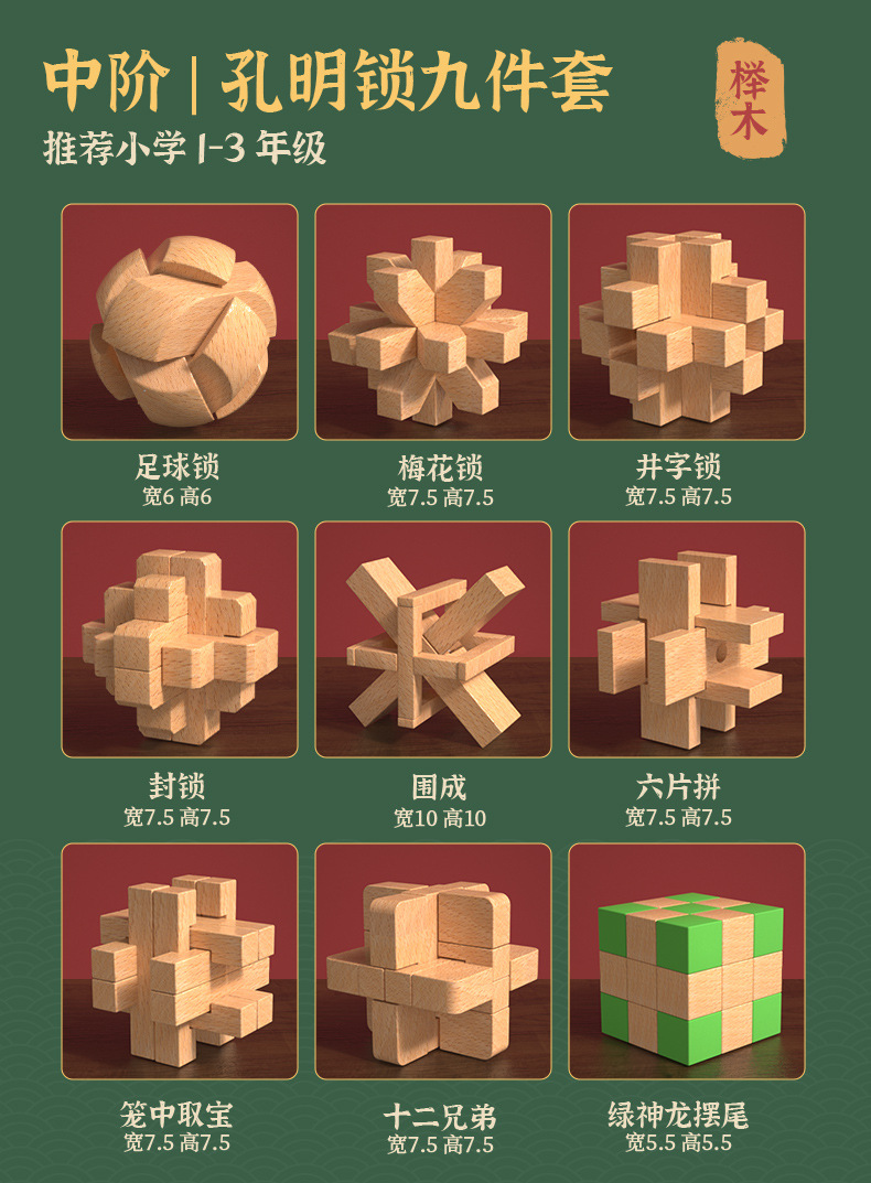 | Color | Conjunto de 9 piezas de dificultad inicial (Caja de regalo Jiugongge) principiante,Juego de 9 piezas de dificultad de grado medio (Caja de regalo Jiugongge) recomienda estudiantes de primaria,Conjunto de 9 piezas de alto grado de dificultad (Caja de regalo de Jiugongge) estudiantes de escuela primaria y superior |